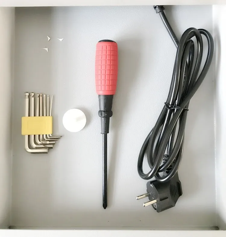 Big waste bin to collect paper and stock toold. Every machine with standard tools and consumables.