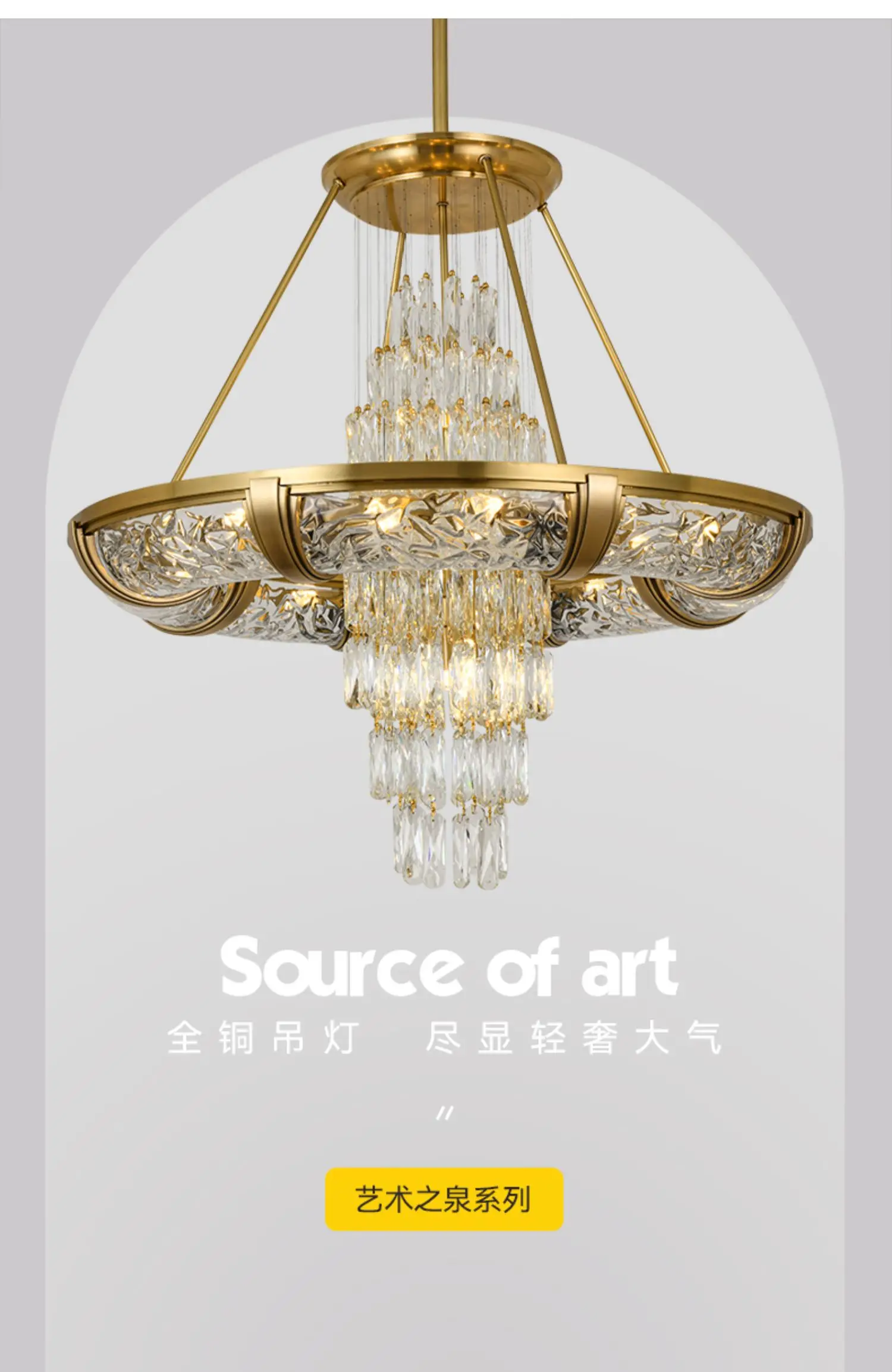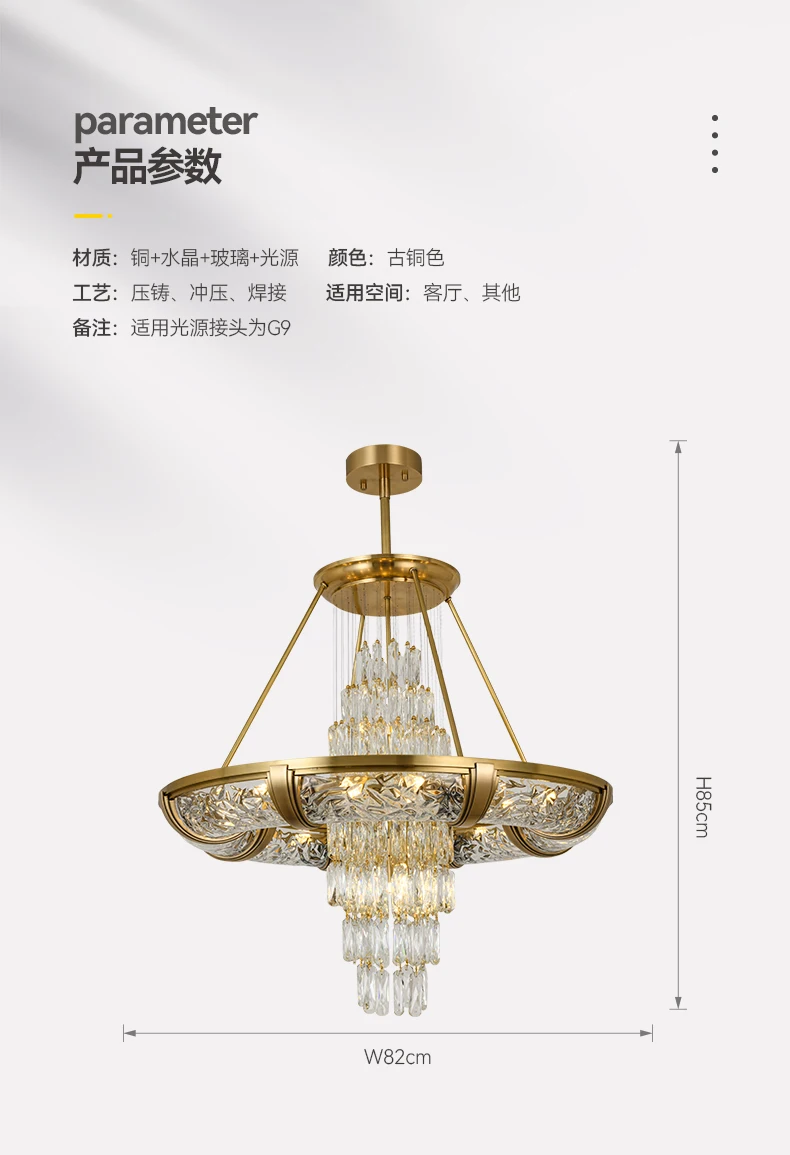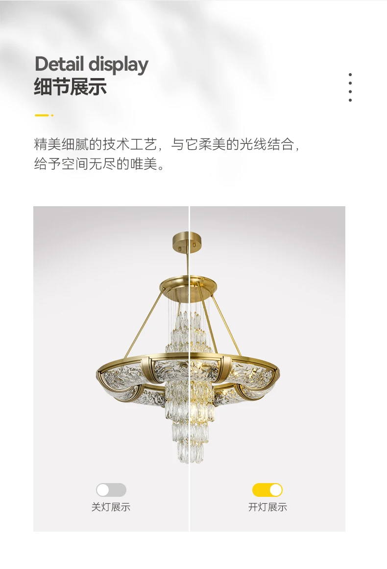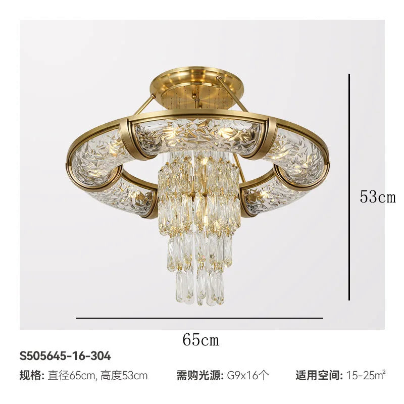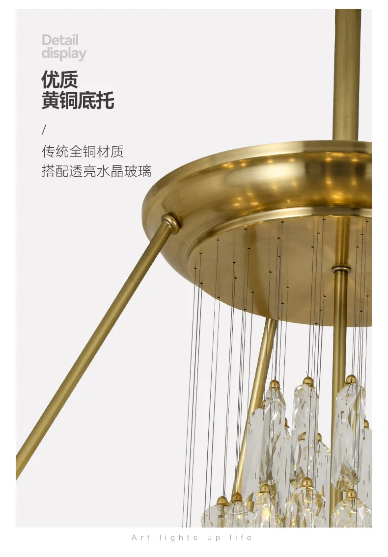 Simple post-modern crystal chandelier luxury atmospheric living room copper lamp high-end exquisite dining room villa lighting
