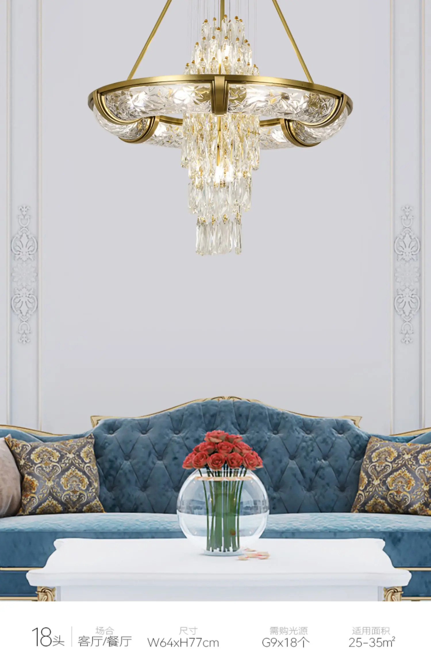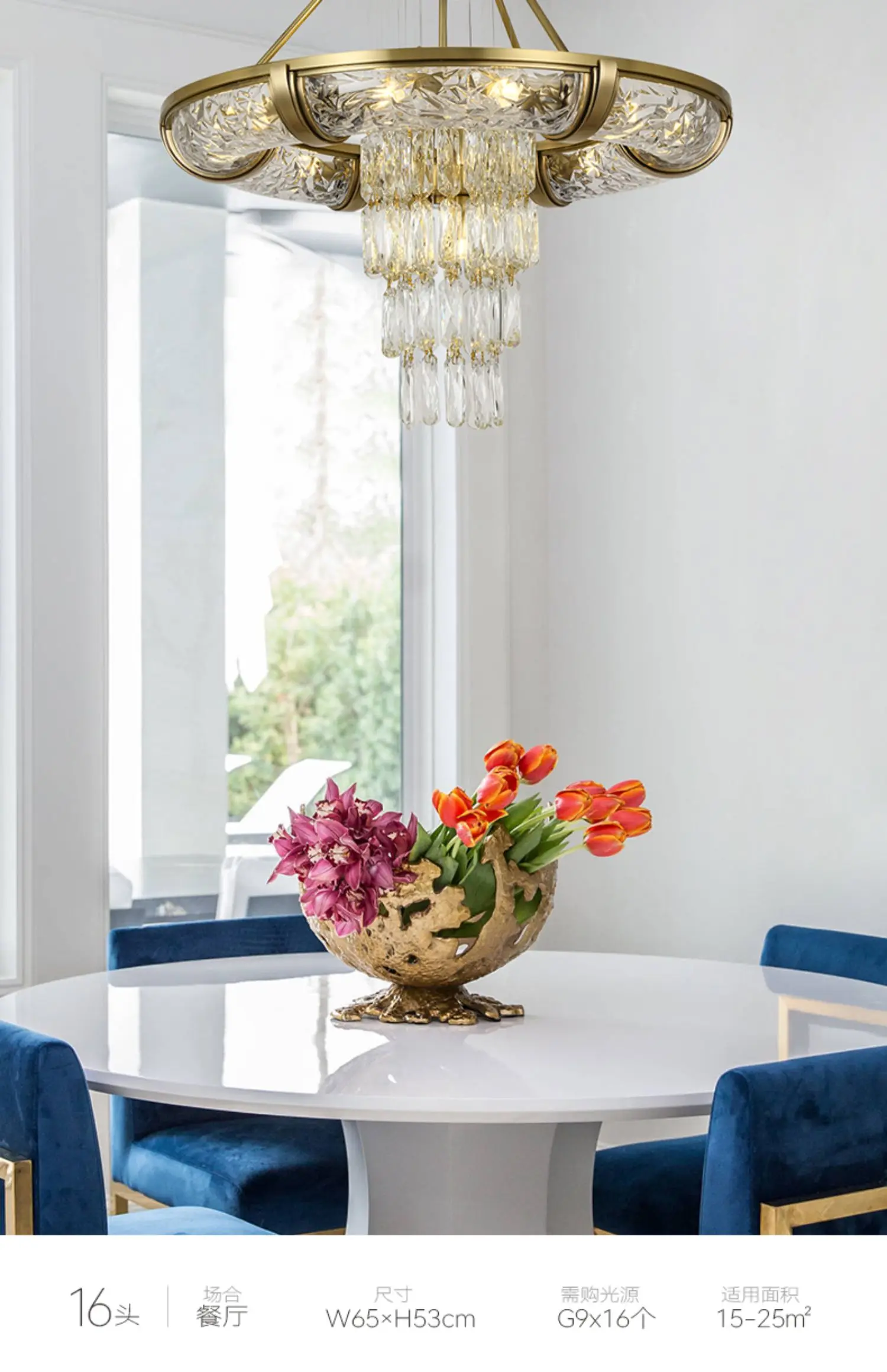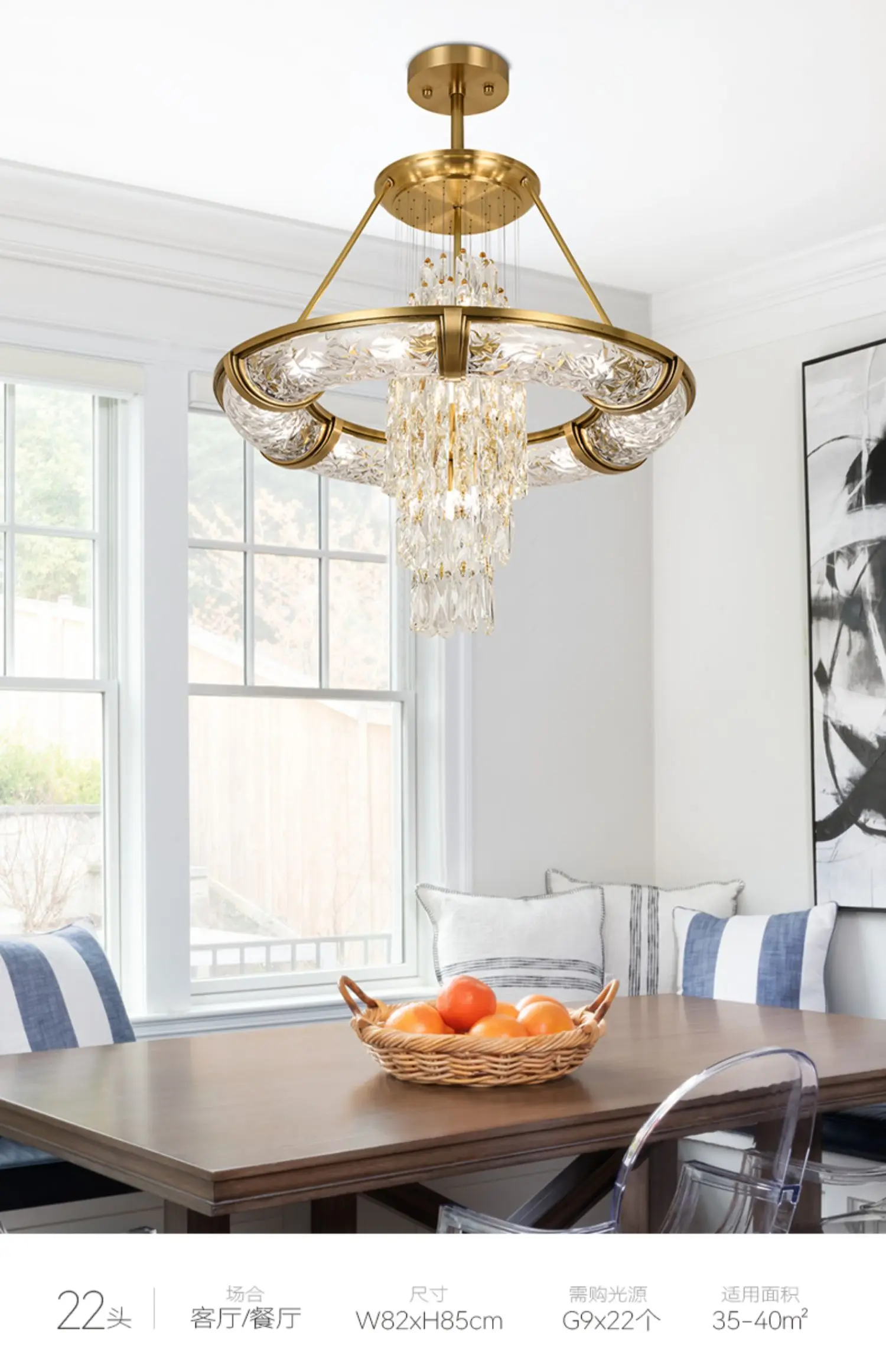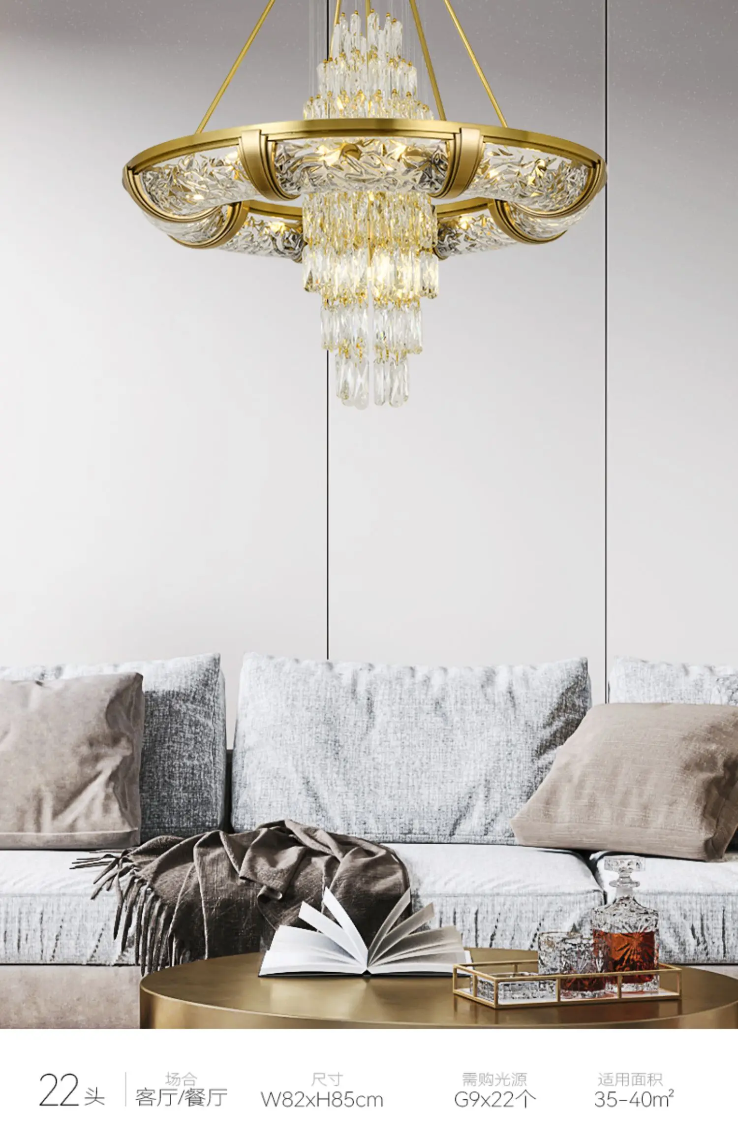 Simple post-modern crystal chandelier luxury atmospheric living room copper lamp high-end exquisite dining room villa lighting