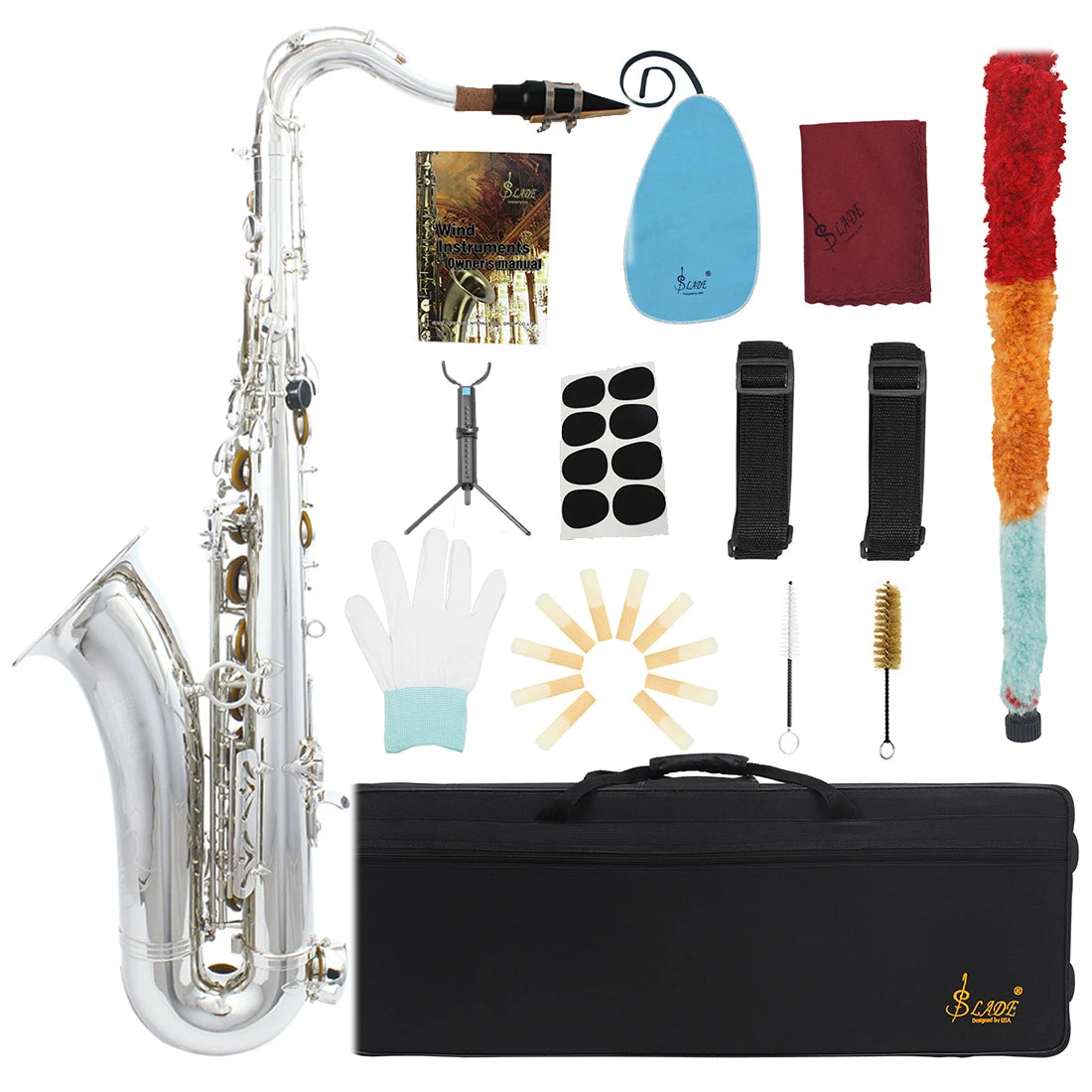 SLADE Bb Tenor Saxophone Silver Tenor Sax Jazz Instrument With Case Stand Cleaning Cloth Woodwind Musical Instrument Accessories