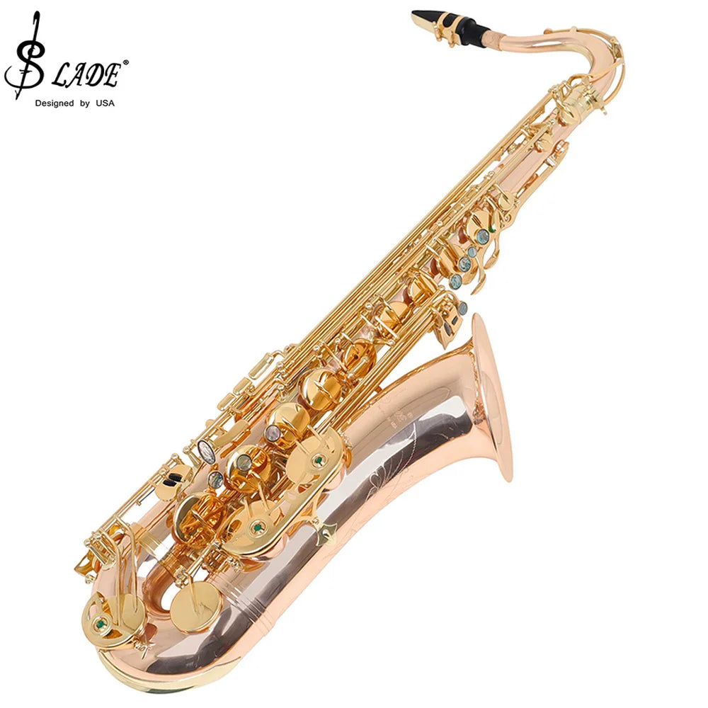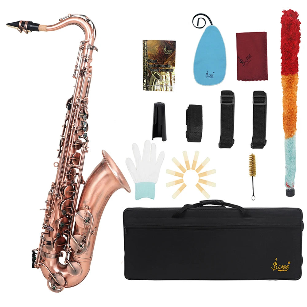 SLADE Brass Tenor Saxophone Instrument Professional Bb Saxophone with Cleaning Cloth Glove Reed Back Mouthpiece Accessories