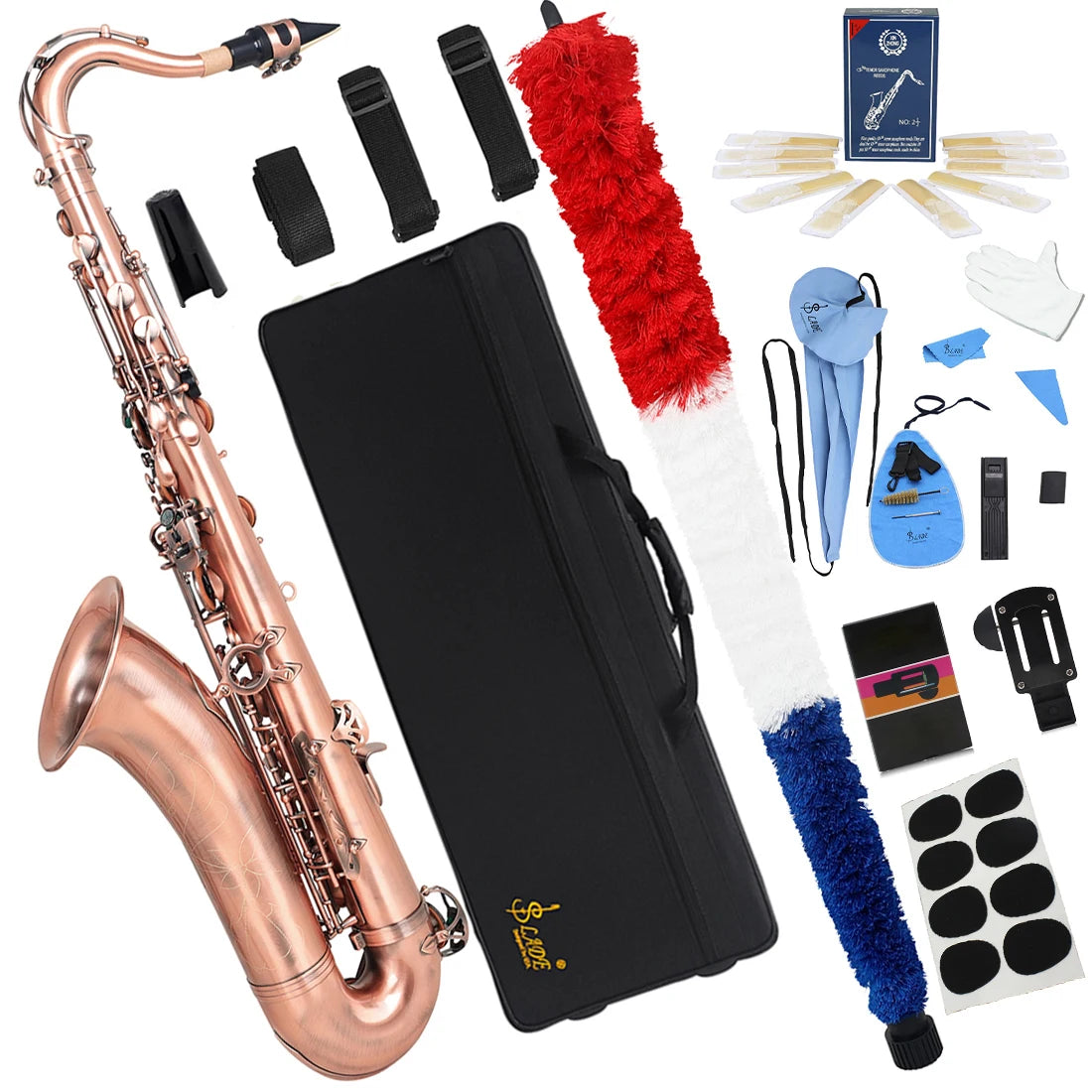 SLADE Tenor Saxophone Professiona Brass Gold Silver Nickel Plating Classic Tenor Saxophone Bb Adjustment Sax with Accessories