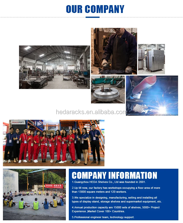 We are manufacture. Our factory has been specializing in supermarket shelves, warehouse racks and different,kinds of display stands since 2001. -