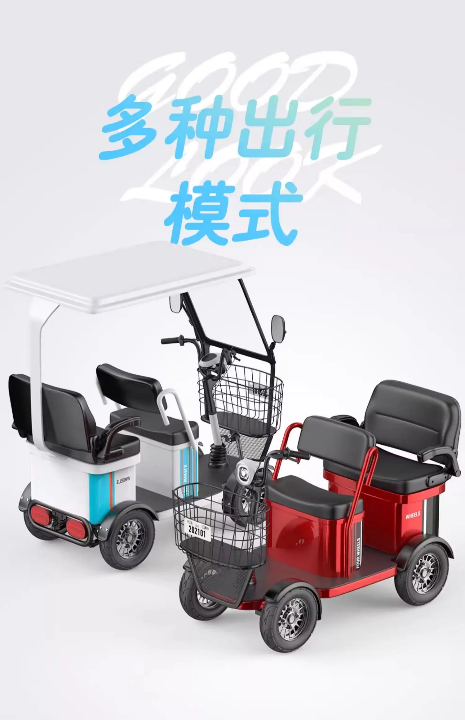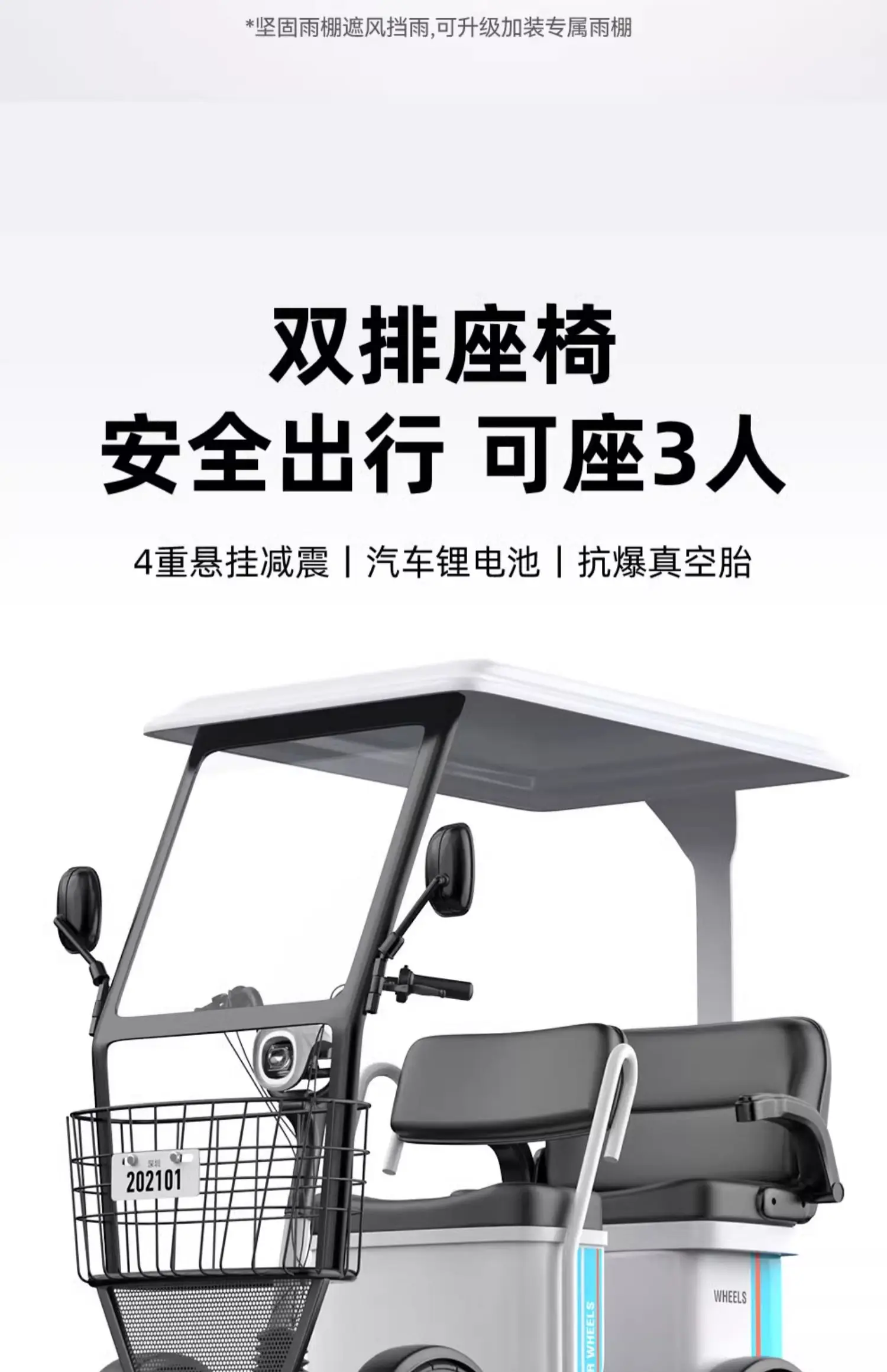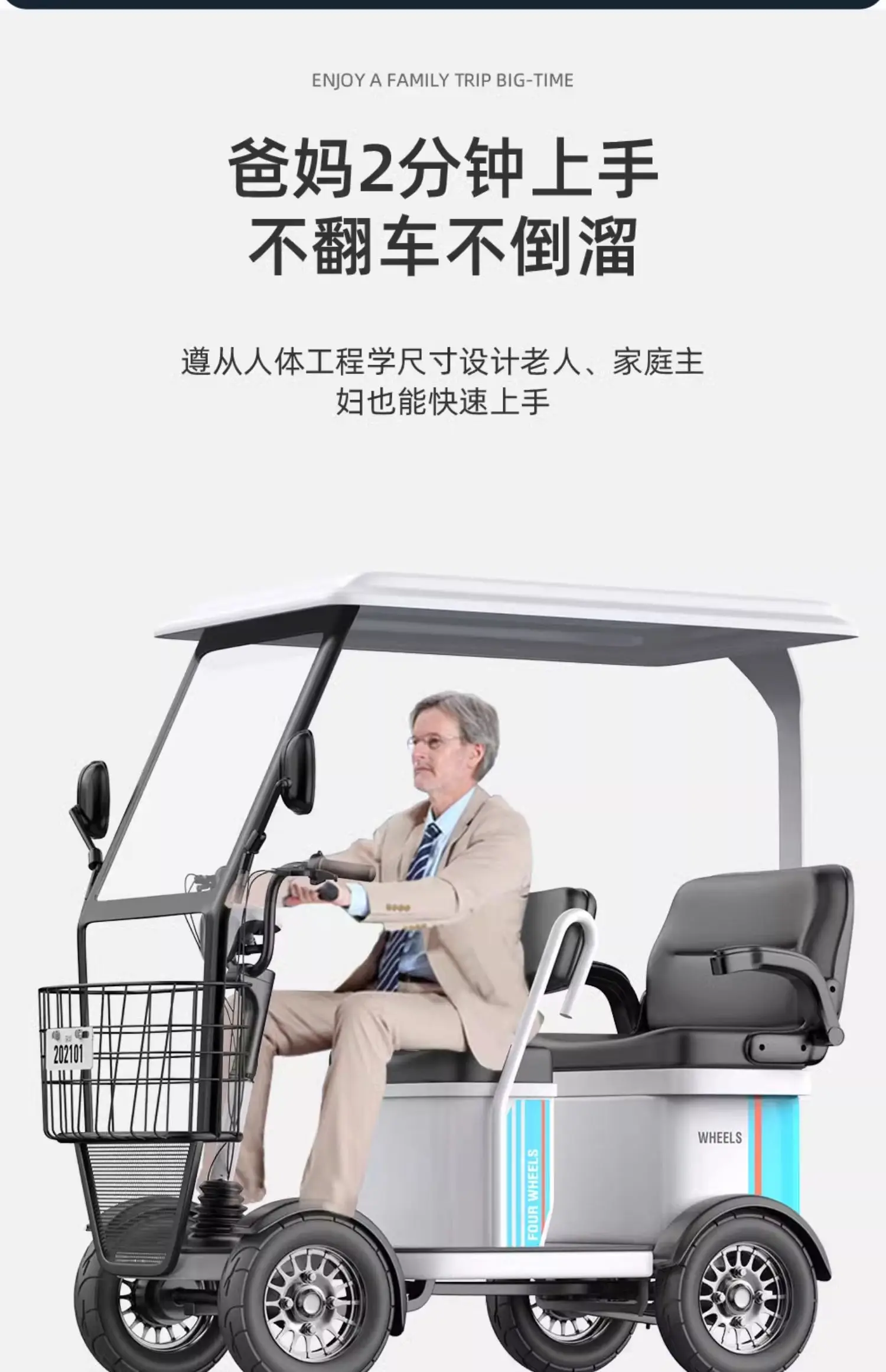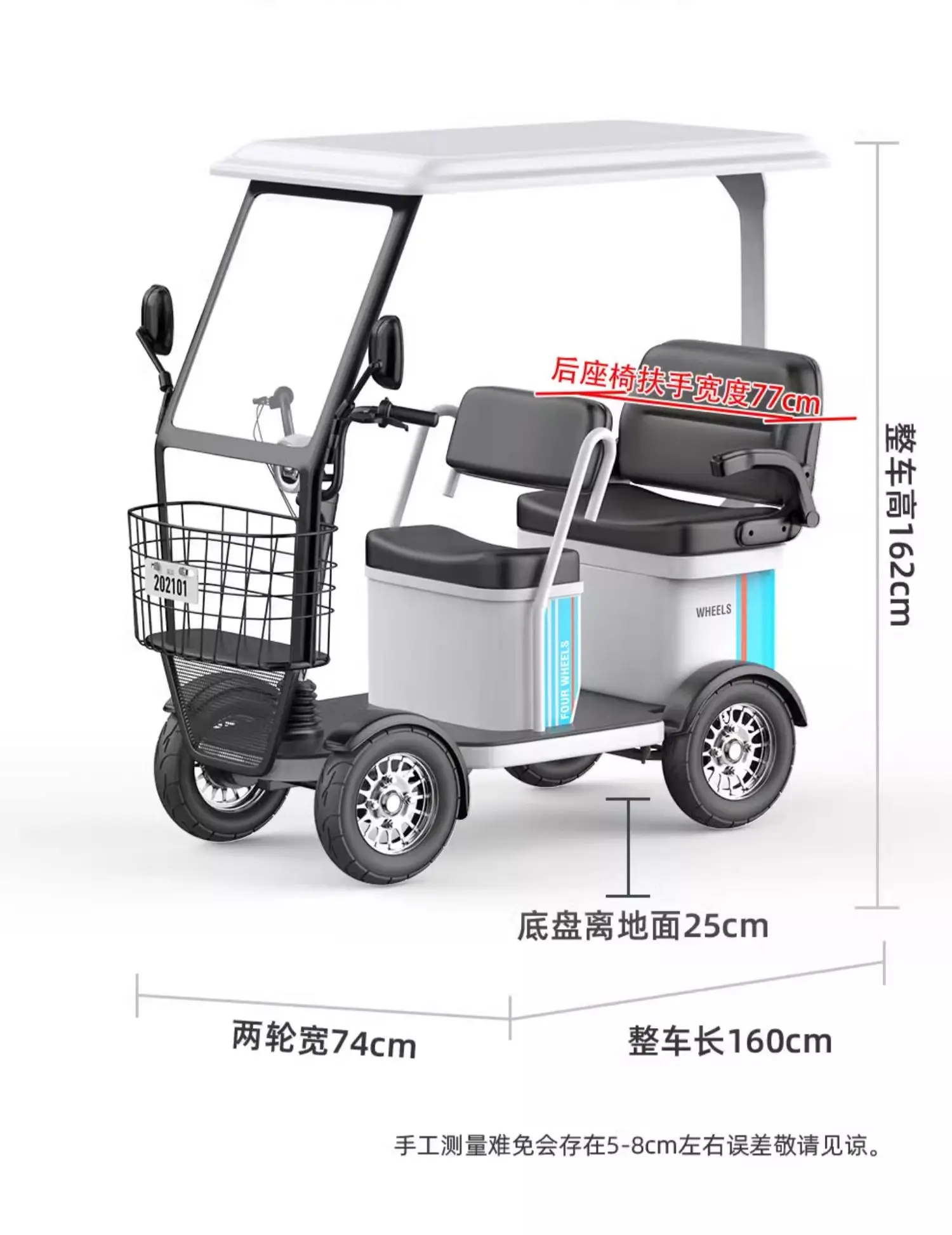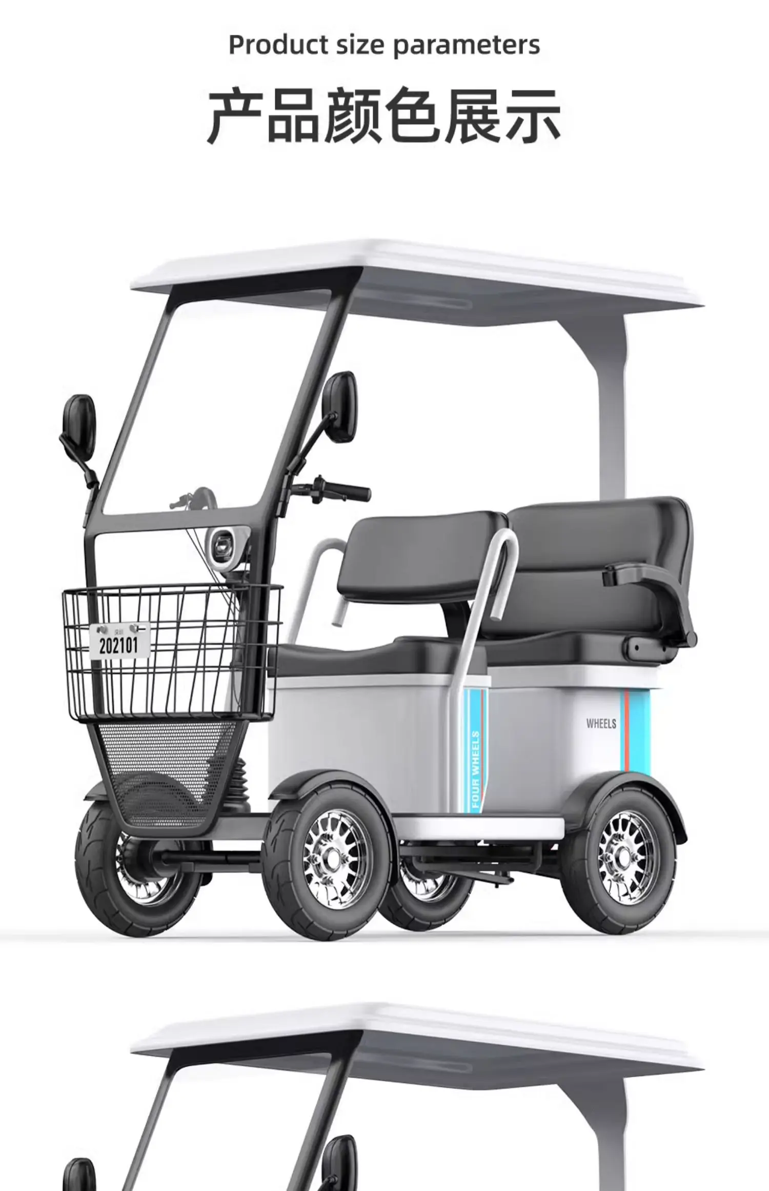 Small bus electric four wheeled sightseeing vehicle, adult disabled semi enclosed electric vehicle with shed, elderly commuting