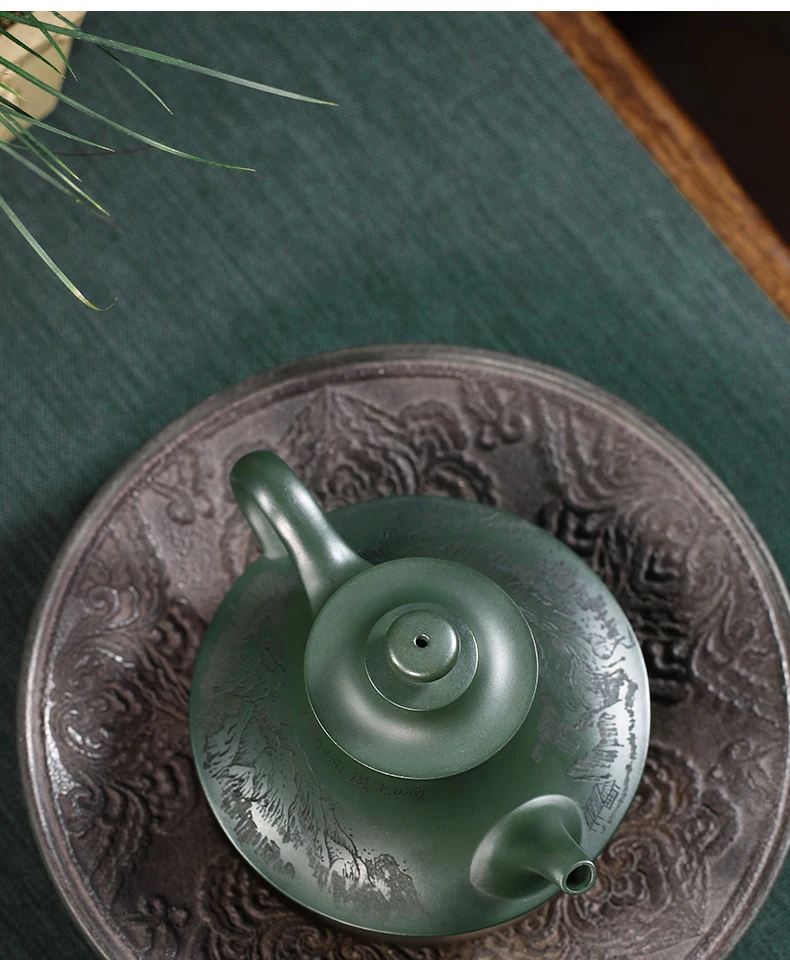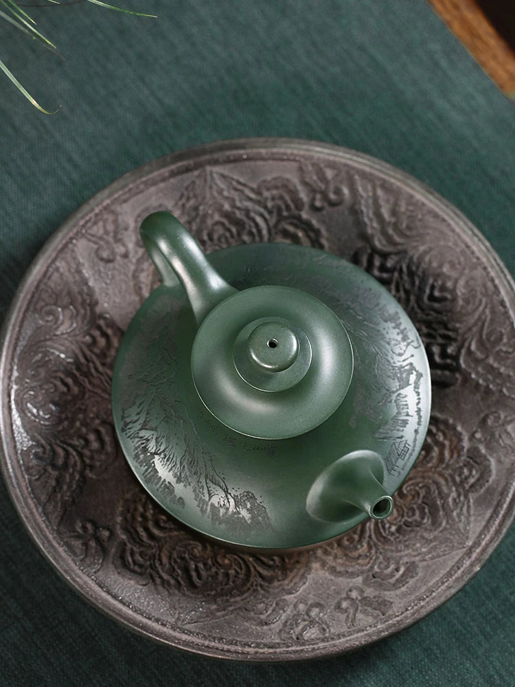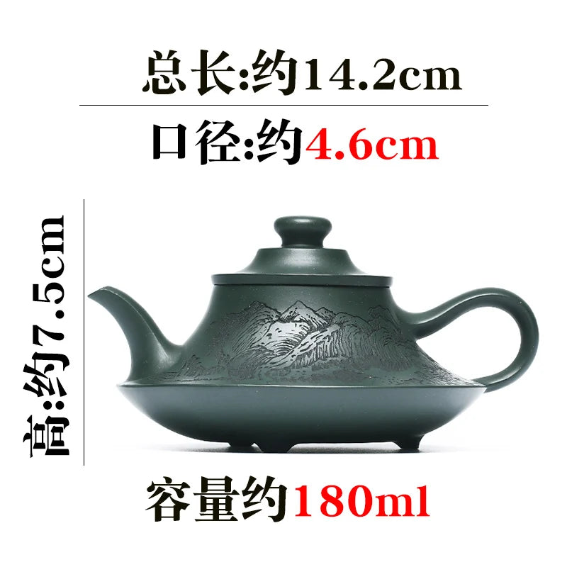 Small Capacity Yixing Purple Clay Pot, Pure Handcarved Kung Fu Tea Set, Original Mine, Dark Green Mud, Household Cloud