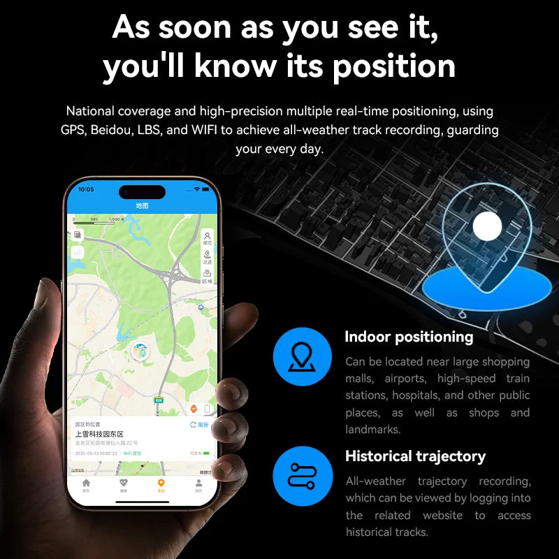 National coverage and high-precision multiple real-time positioning, using GPS, Beidou, LBS, and WlFl to achieve all-weather track recording, guarding your every day.