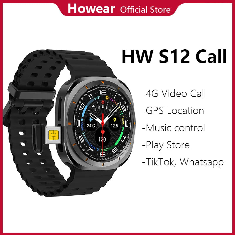MMOOKA Smart Watch Smartwatch 4G SIM Card 2025 Android Play Store 1.48 Inch AMOLED HW S12 Call TikTok Camera Video Call Ultra GPS WIFI