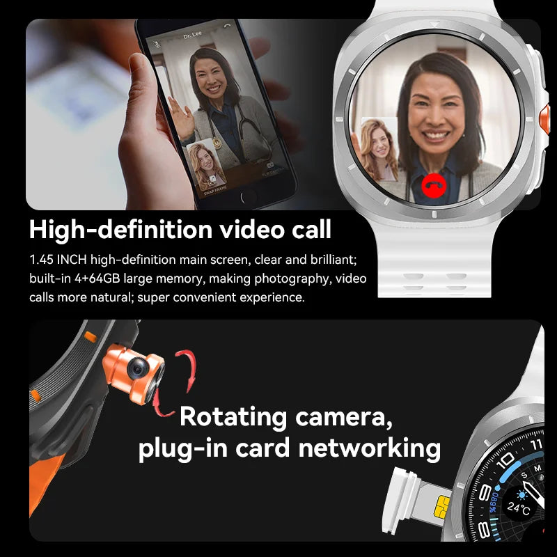 Rotating camera, plug-in card networking, Video call, High precision positioning, Ultra-clear vision, Popular apps, download freely, Wireless magnetic suction charging 700 mAh