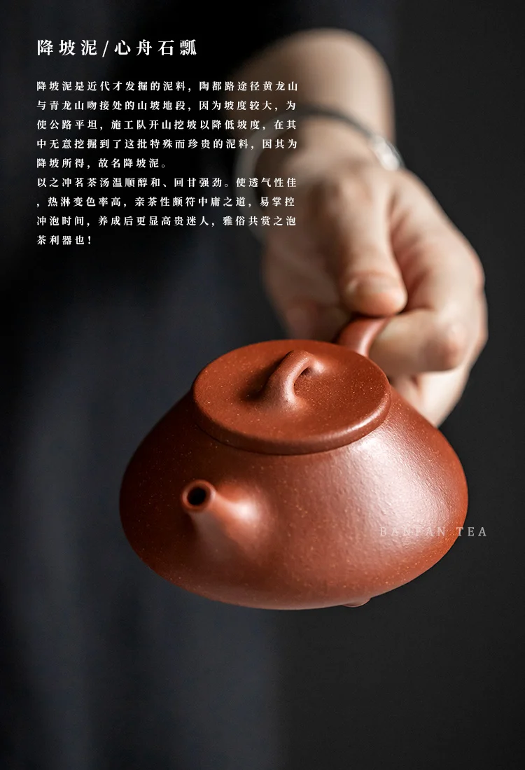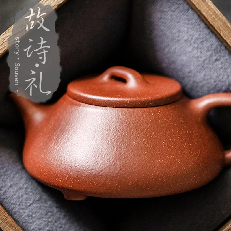 So Shi Li] Yixing mine pure handmade purple sand pot ml Chinese retro wind downhill mud boat stone ladle purple sand pot