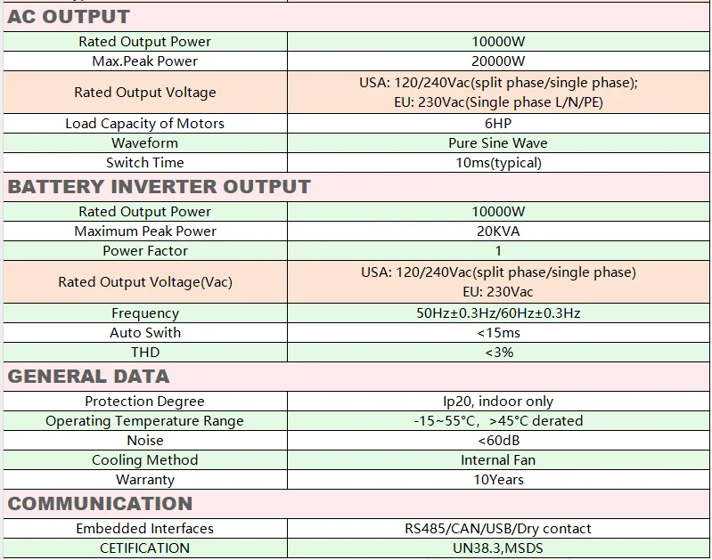 2.Support max 6pcs all in one 10KWH/15KWH/20KWH battery pack parallel(61440W Output).