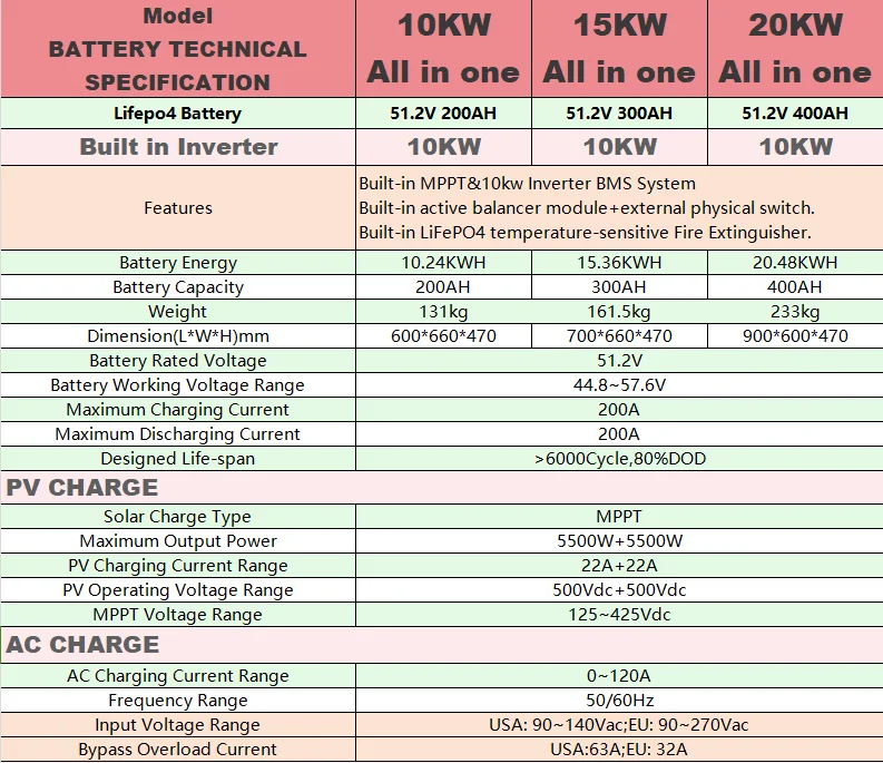 3.OR Support max 1pcs all in one 10KWH/15KWH/20KWH battery pack and 14PCS 51.2V 10KWH/15KWH/20KWH lifepo4 battery pack parallel.