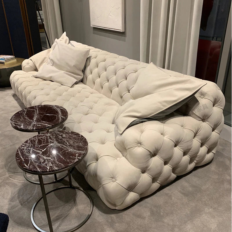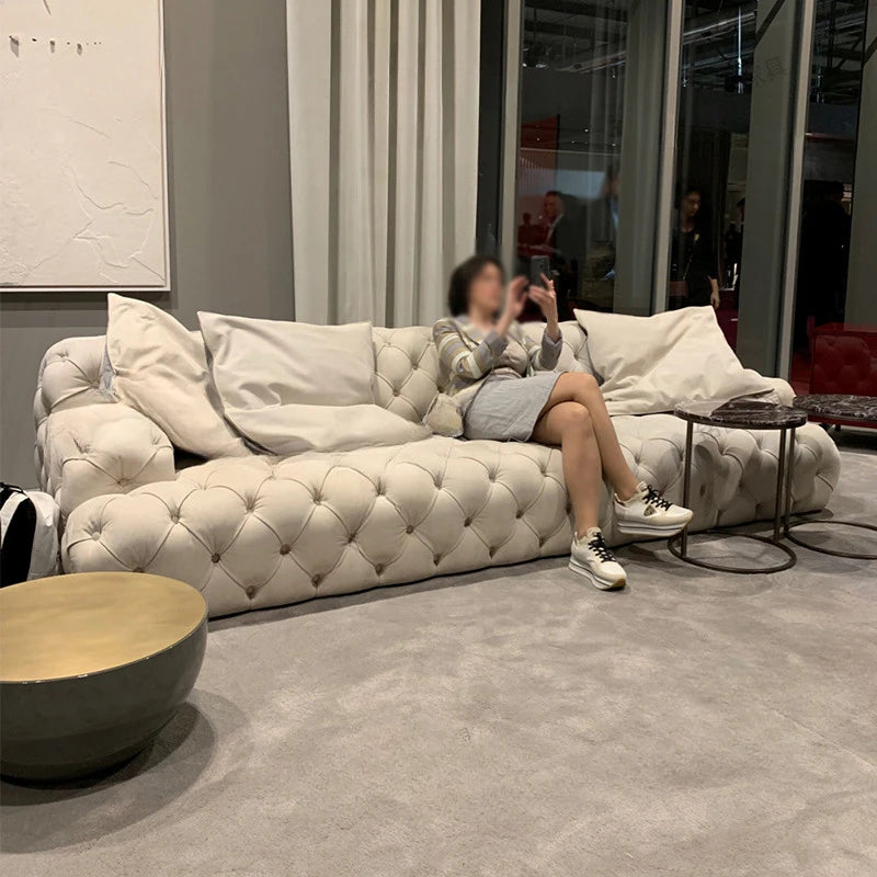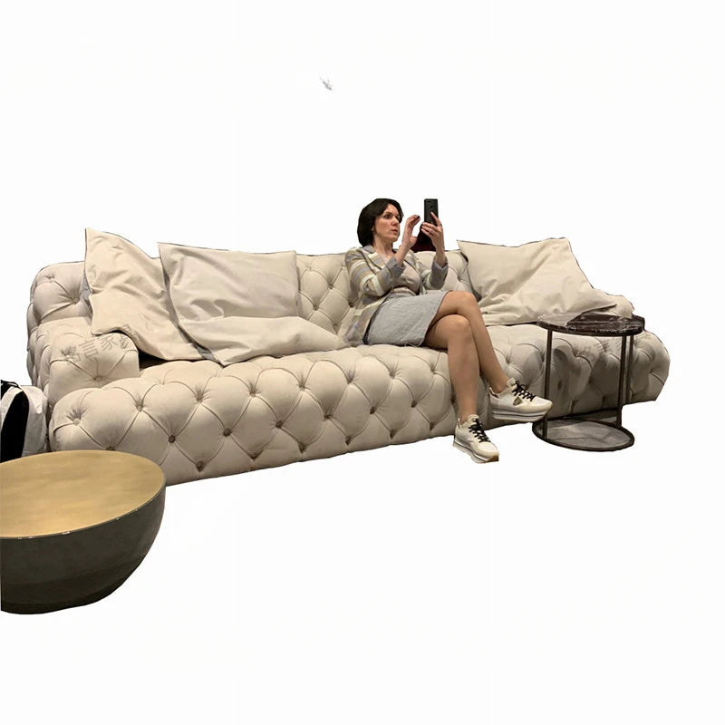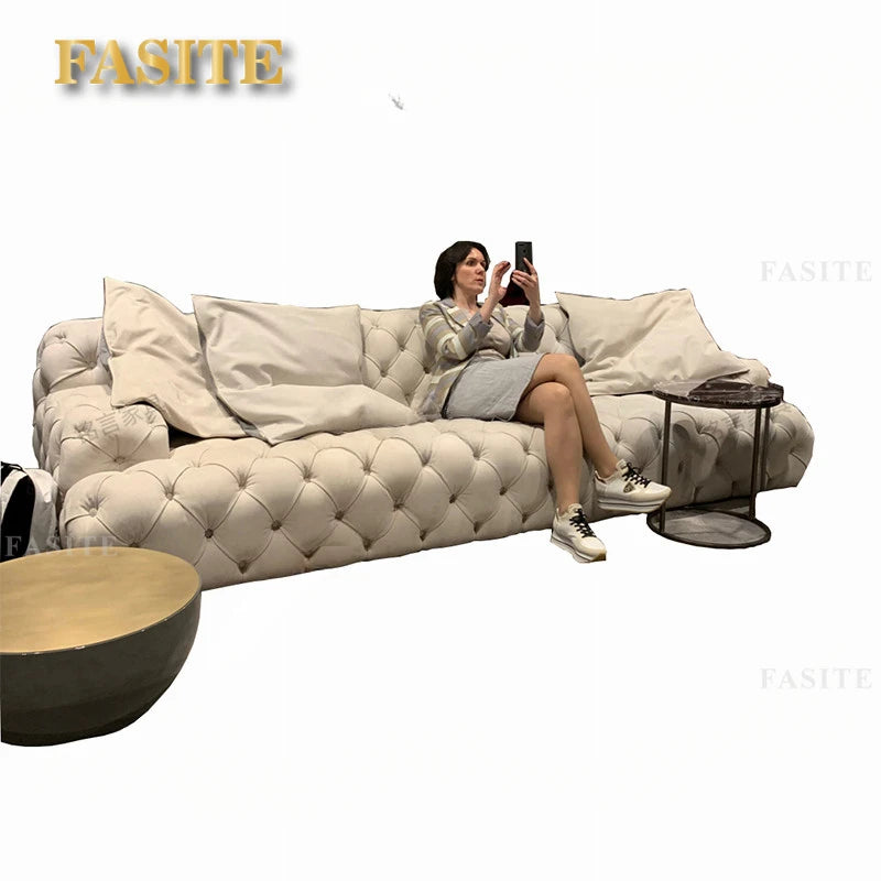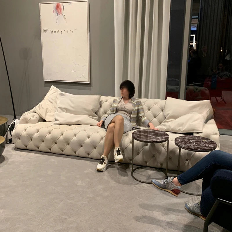 Sofa Light Luxury Pull Button Living Room Sofa American Fabric Sofa Moon Surface Sofa Villa