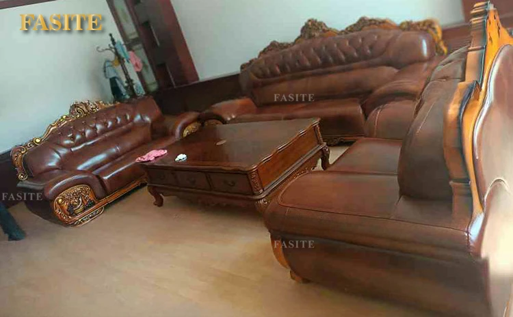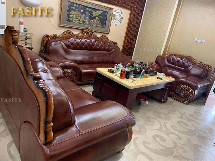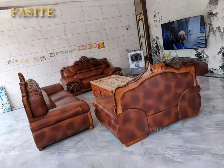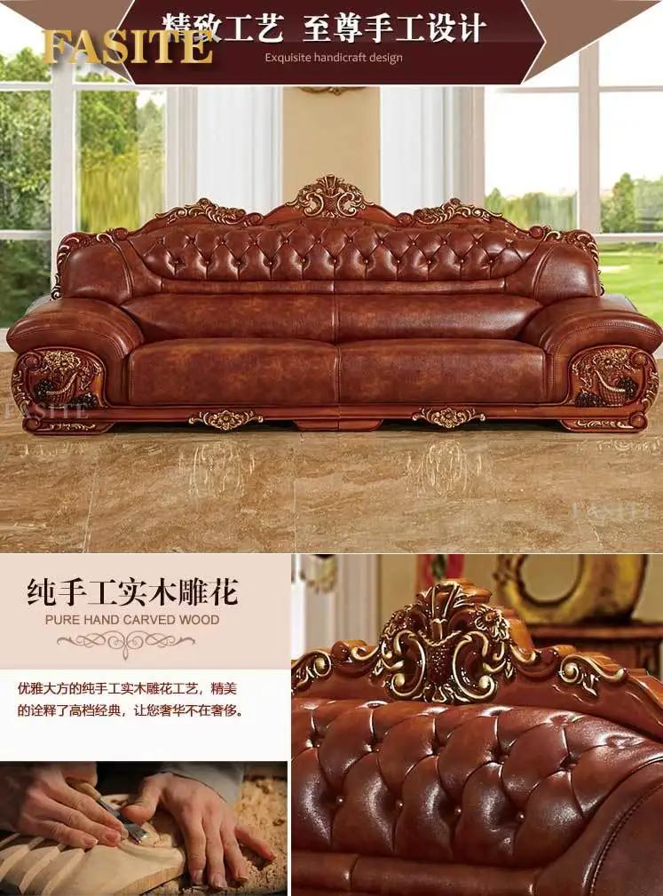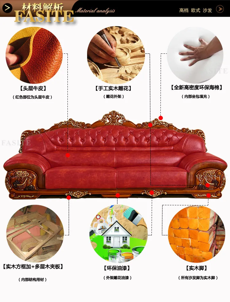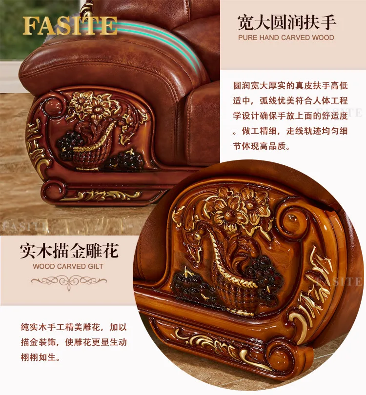 Sofa top layer cowhide living room combination three person solid wood thick leather large unit