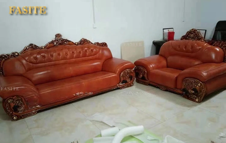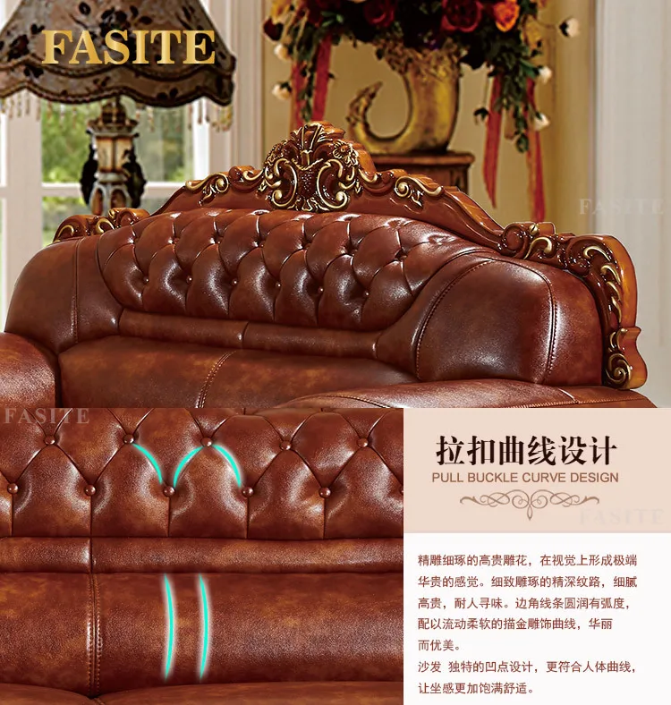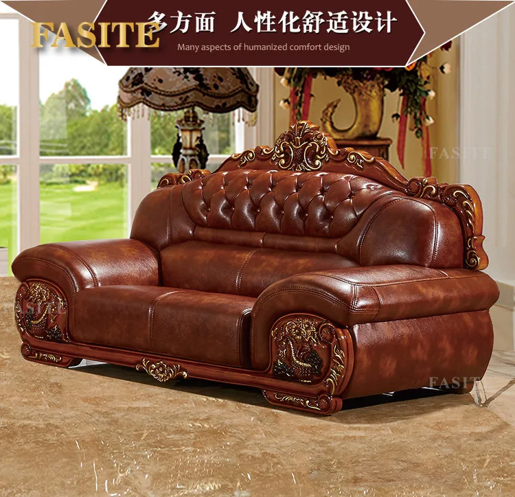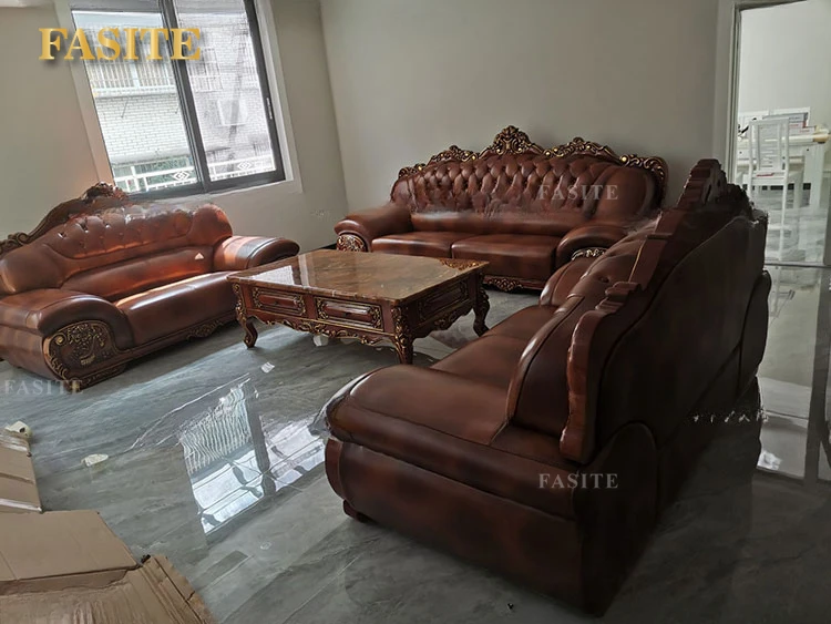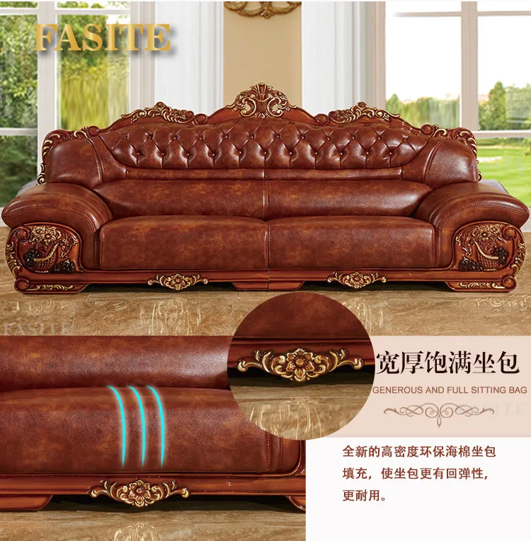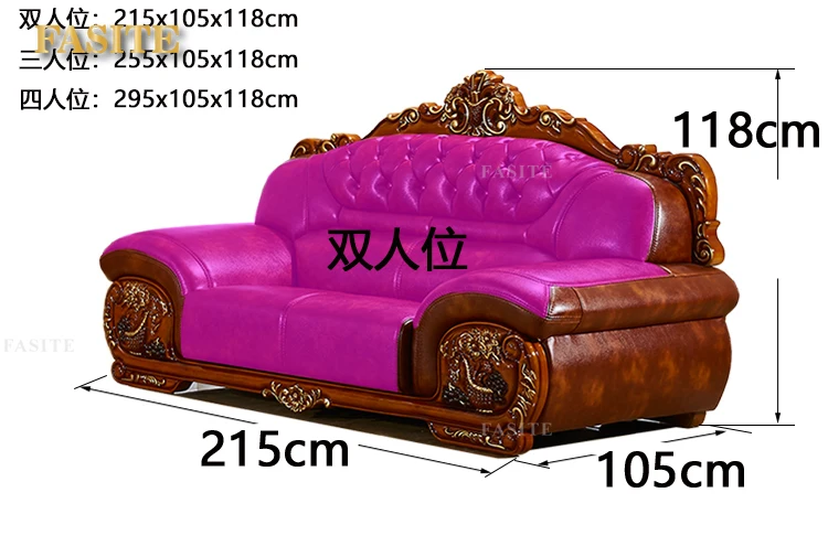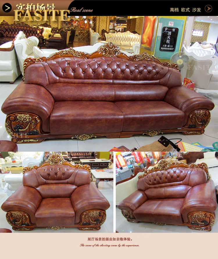 Sofa top layer cowhide living room combination three person solid wood thick leather large unit