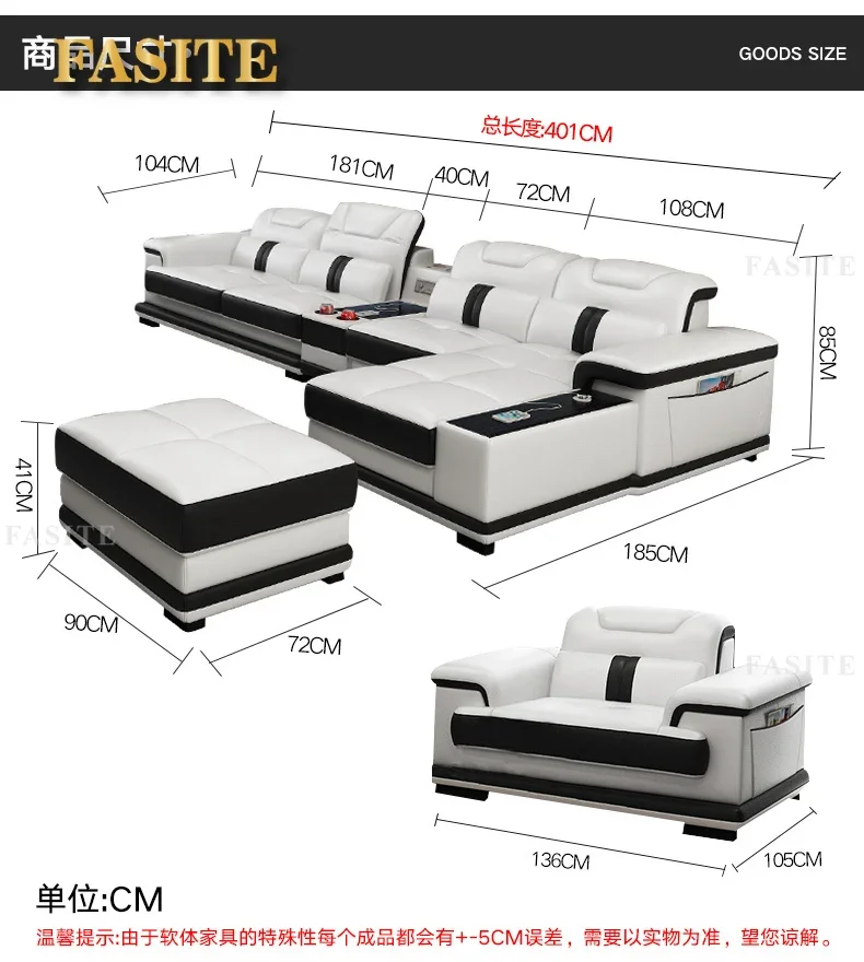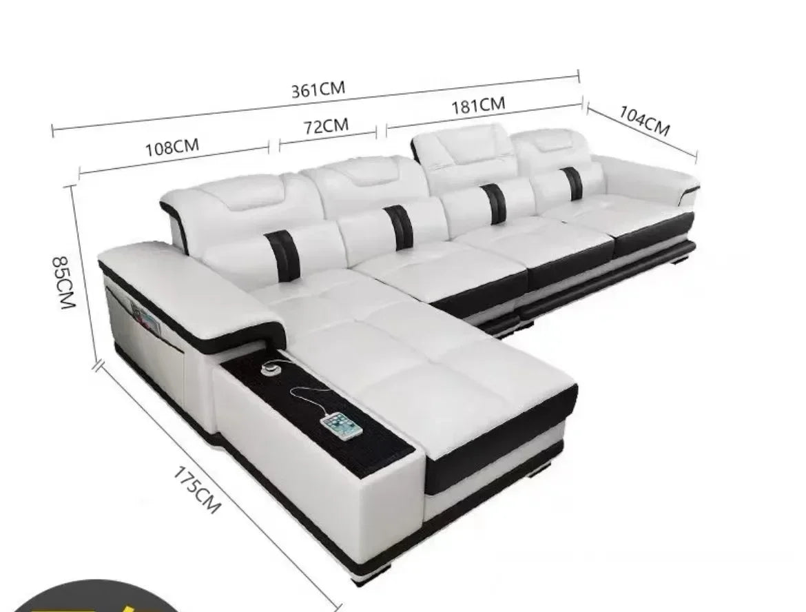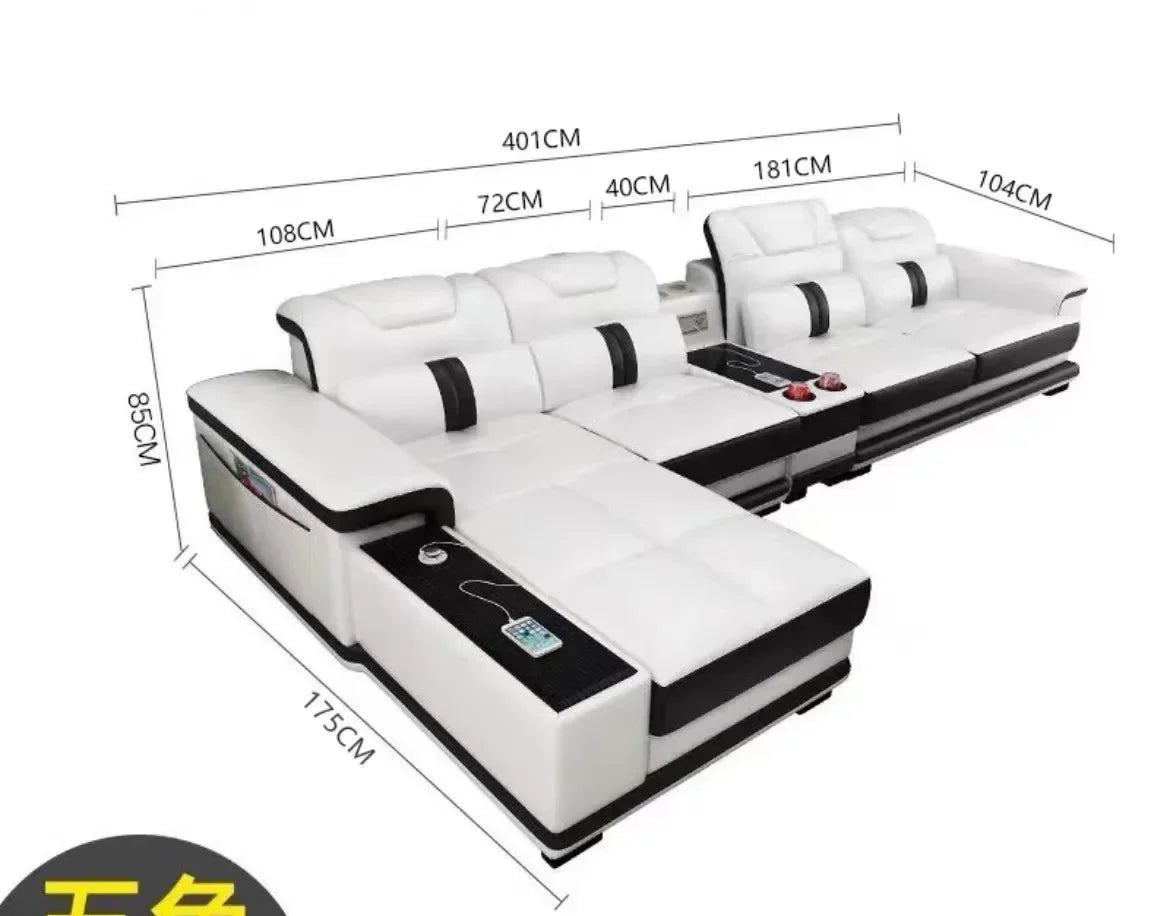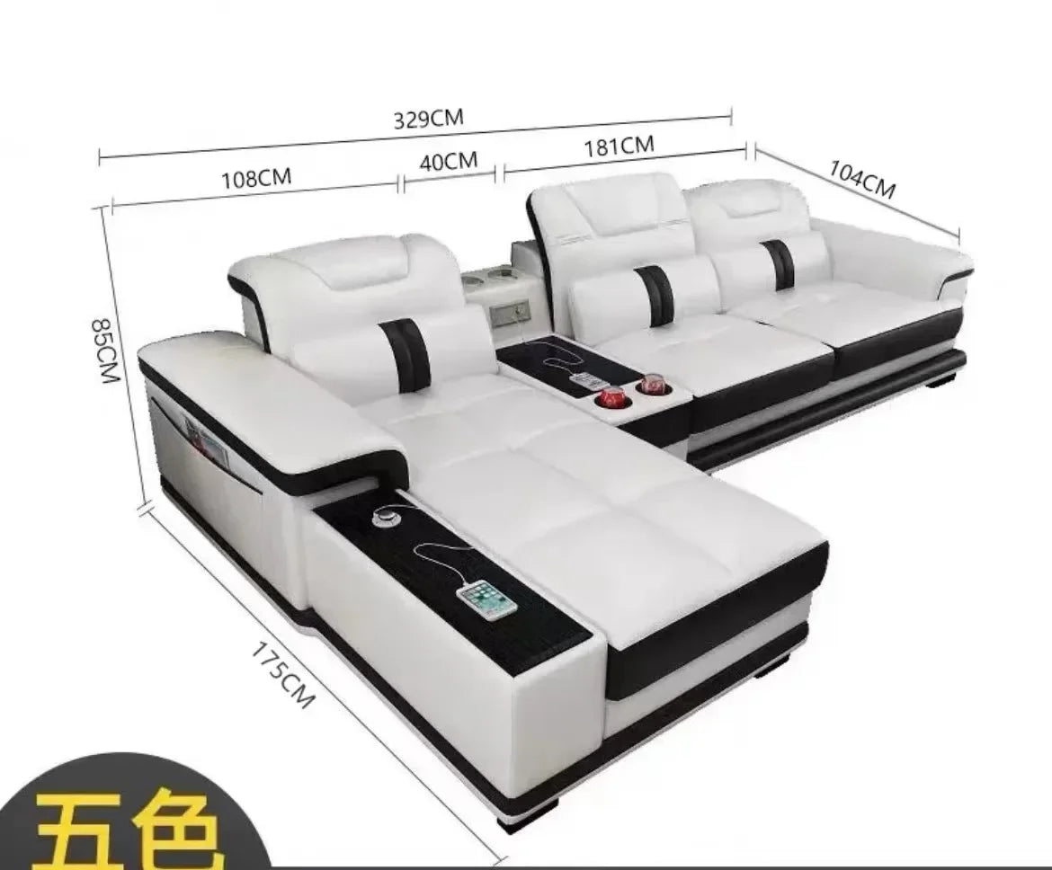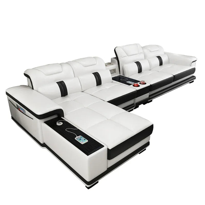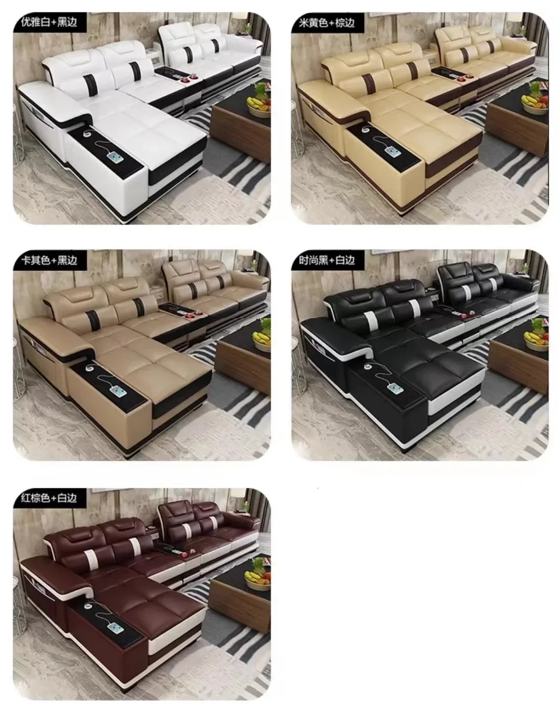 Soggiorno divano set divano ad angolo altoparlante vera vera pelle di mucca divani componibili nordic L shape bluetooth