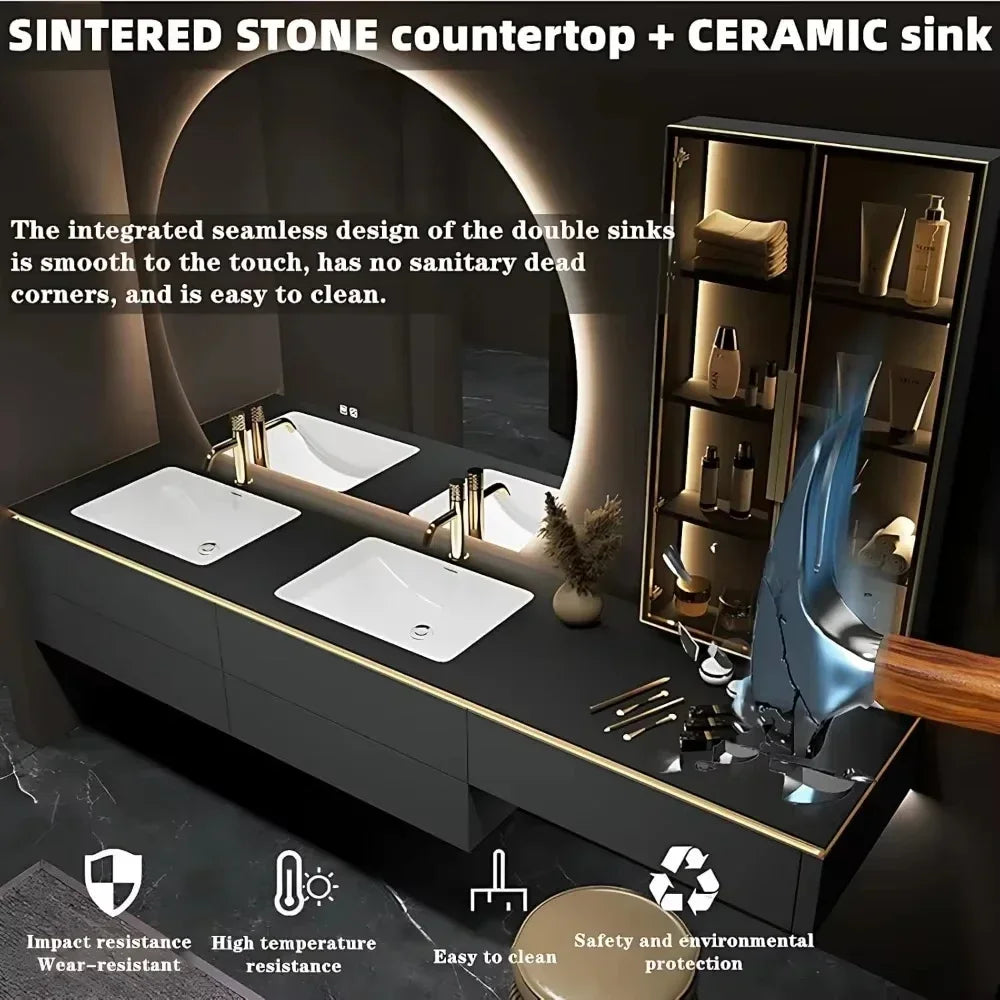 MMOOKA Solid Wood Boards Modern Smart Home Improvement Furniture Bathroom Fixture Bathroom Cabinets Bathroom Vanities Cabinet with Sink