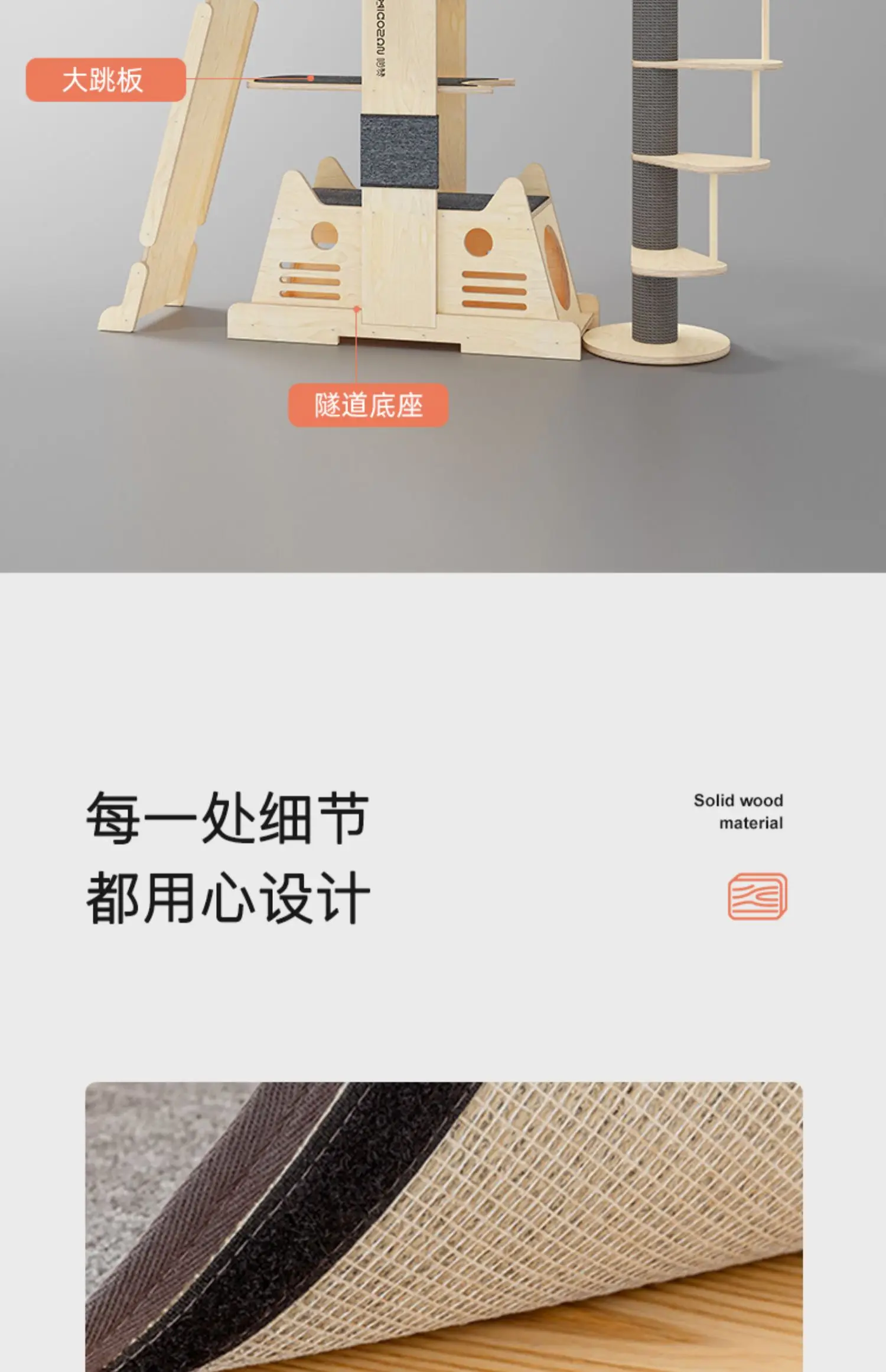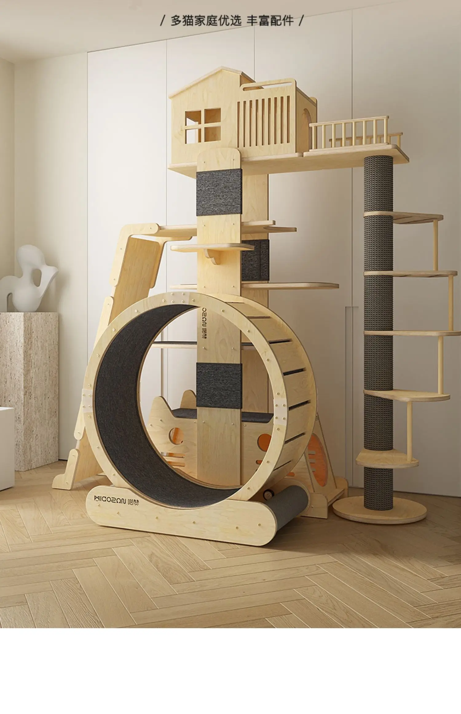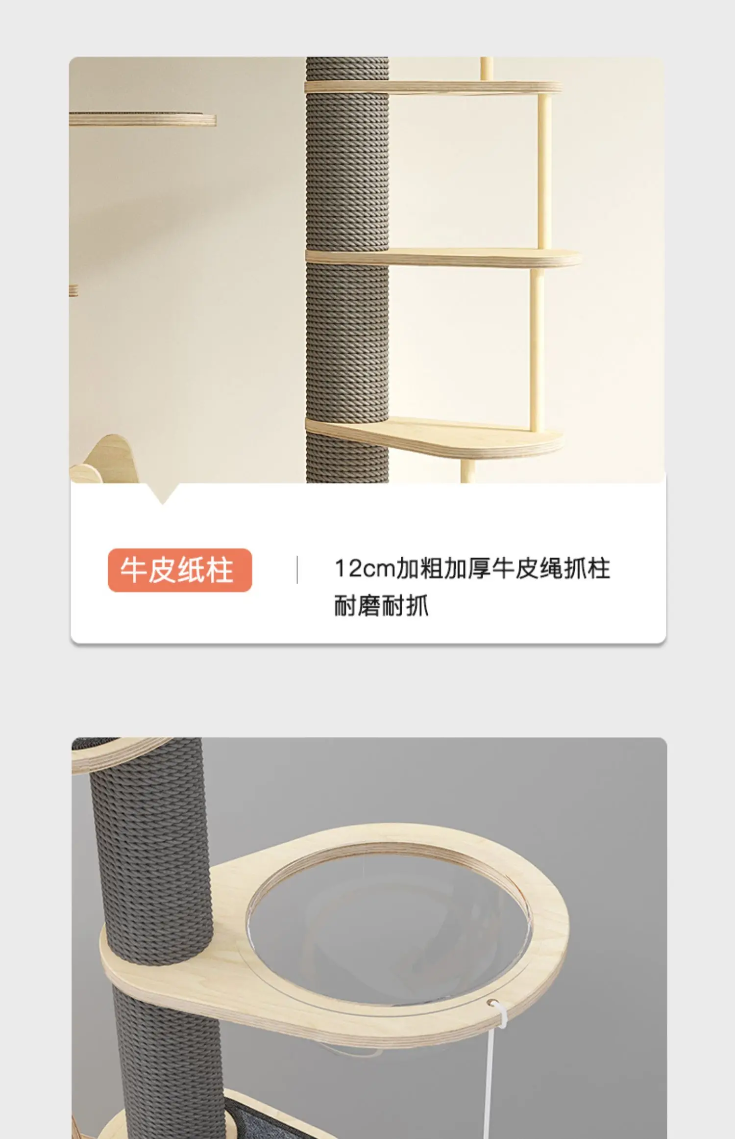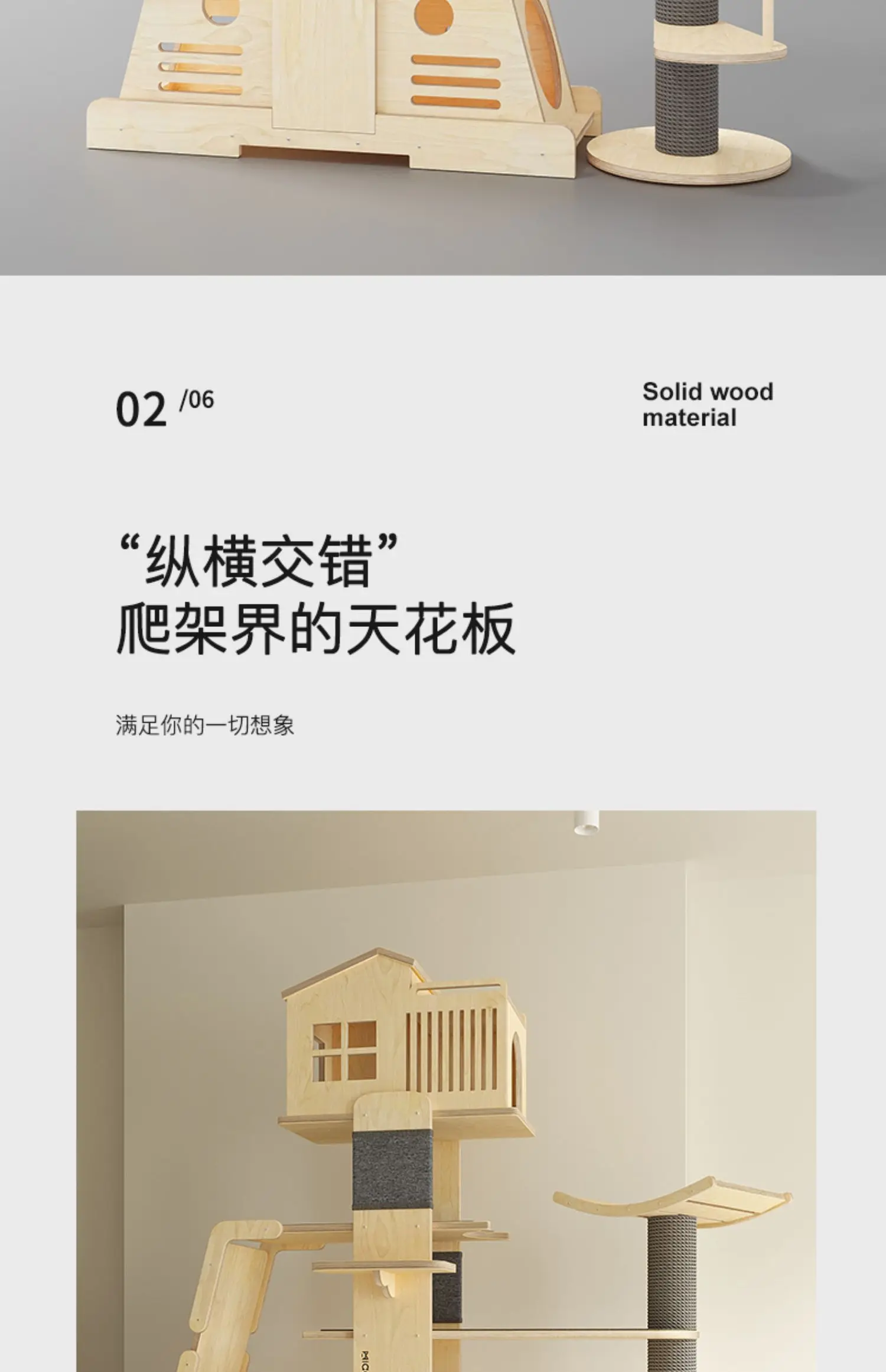 Solid wood cat climbing frame, large cat tree, small cat nest villa, luxury grab board, sky-pillar diving platform