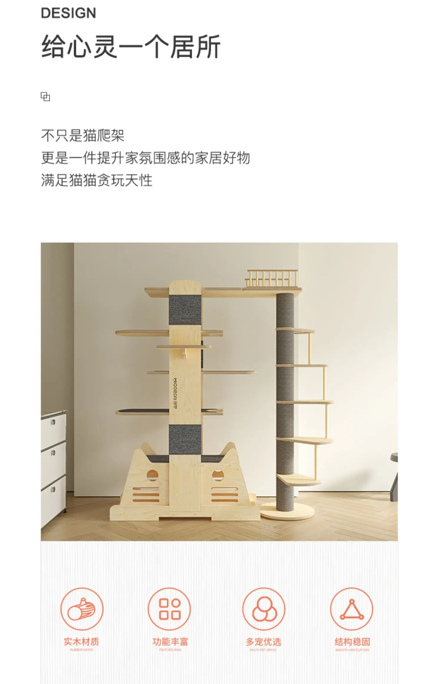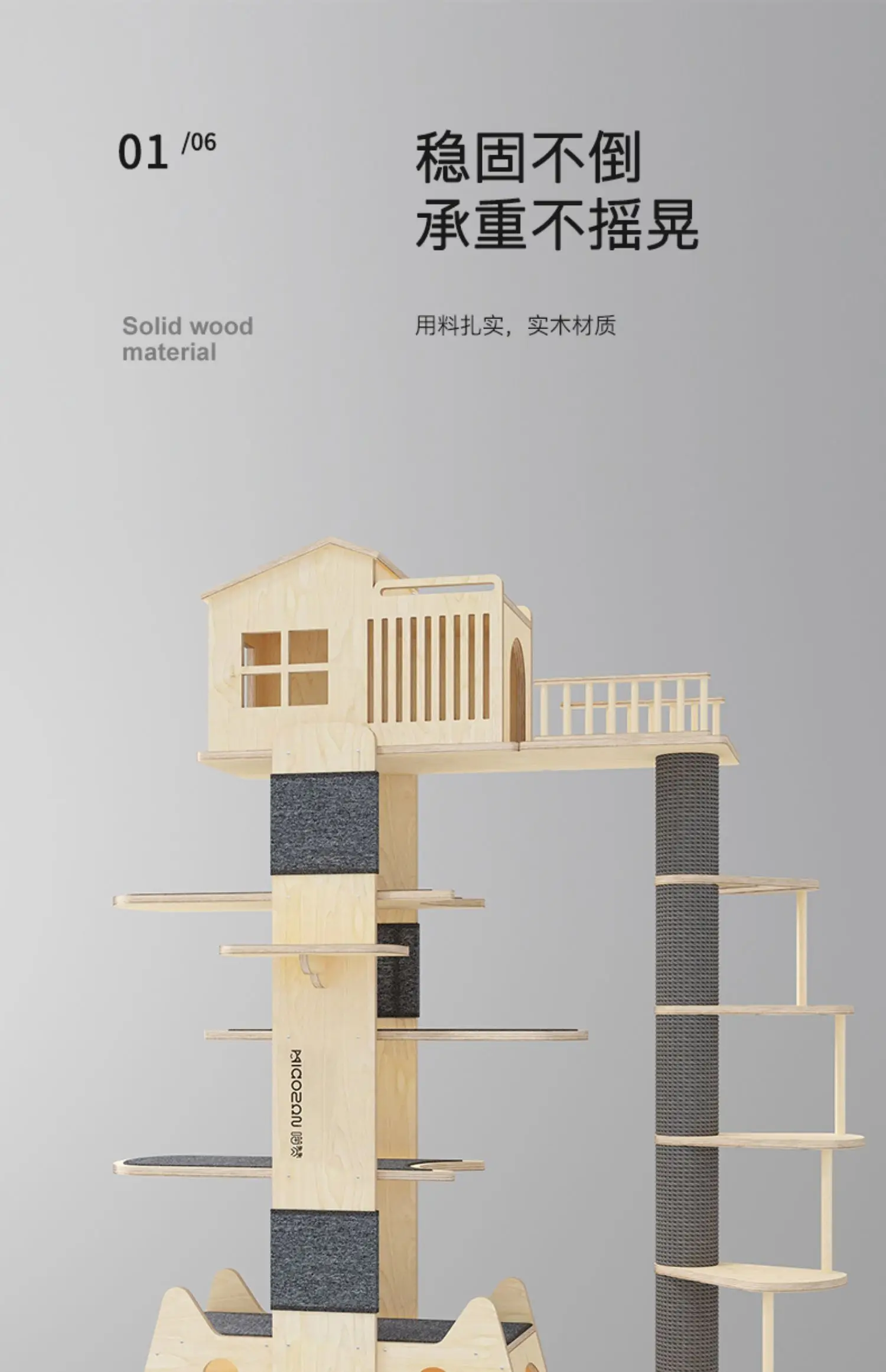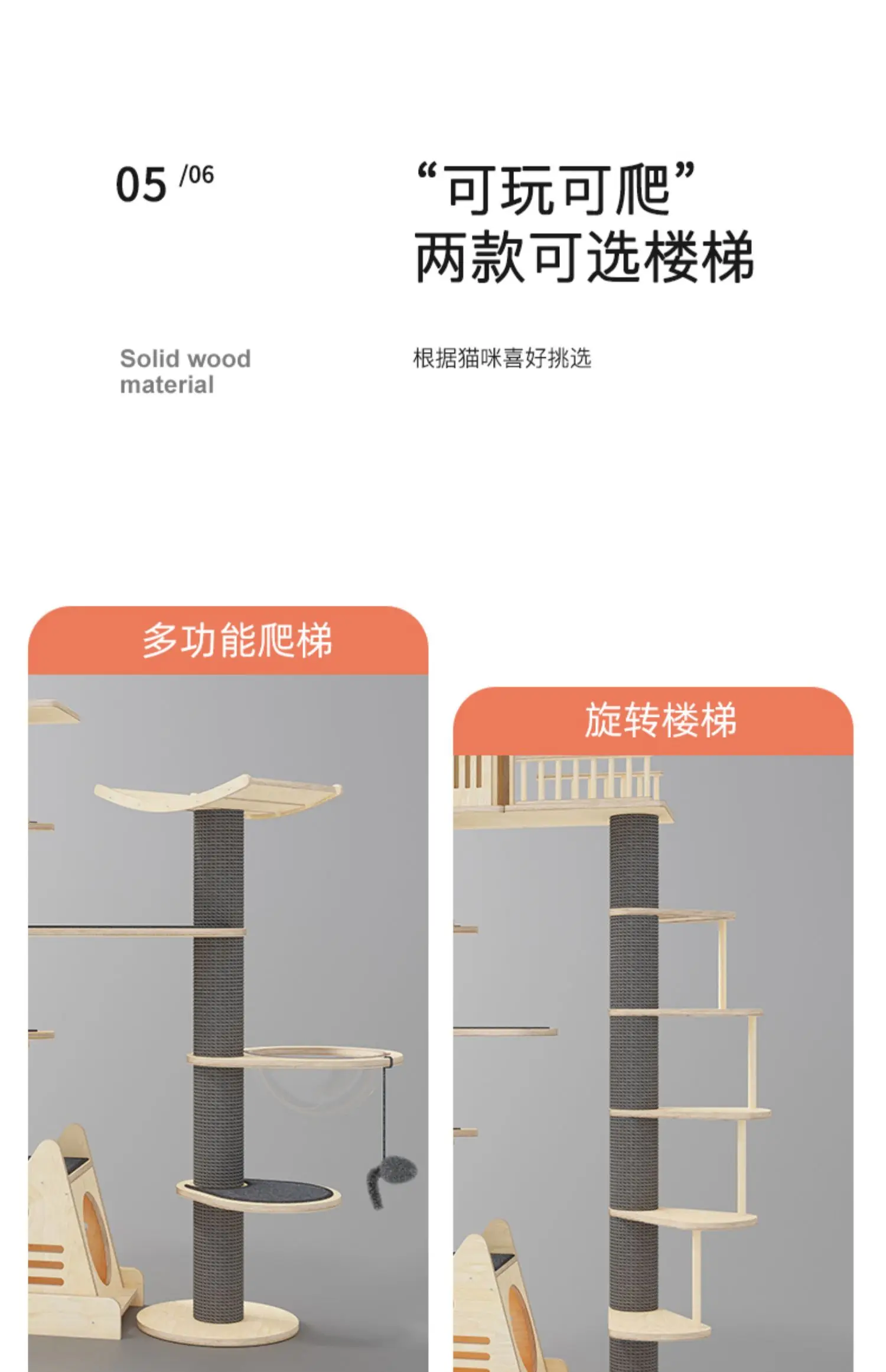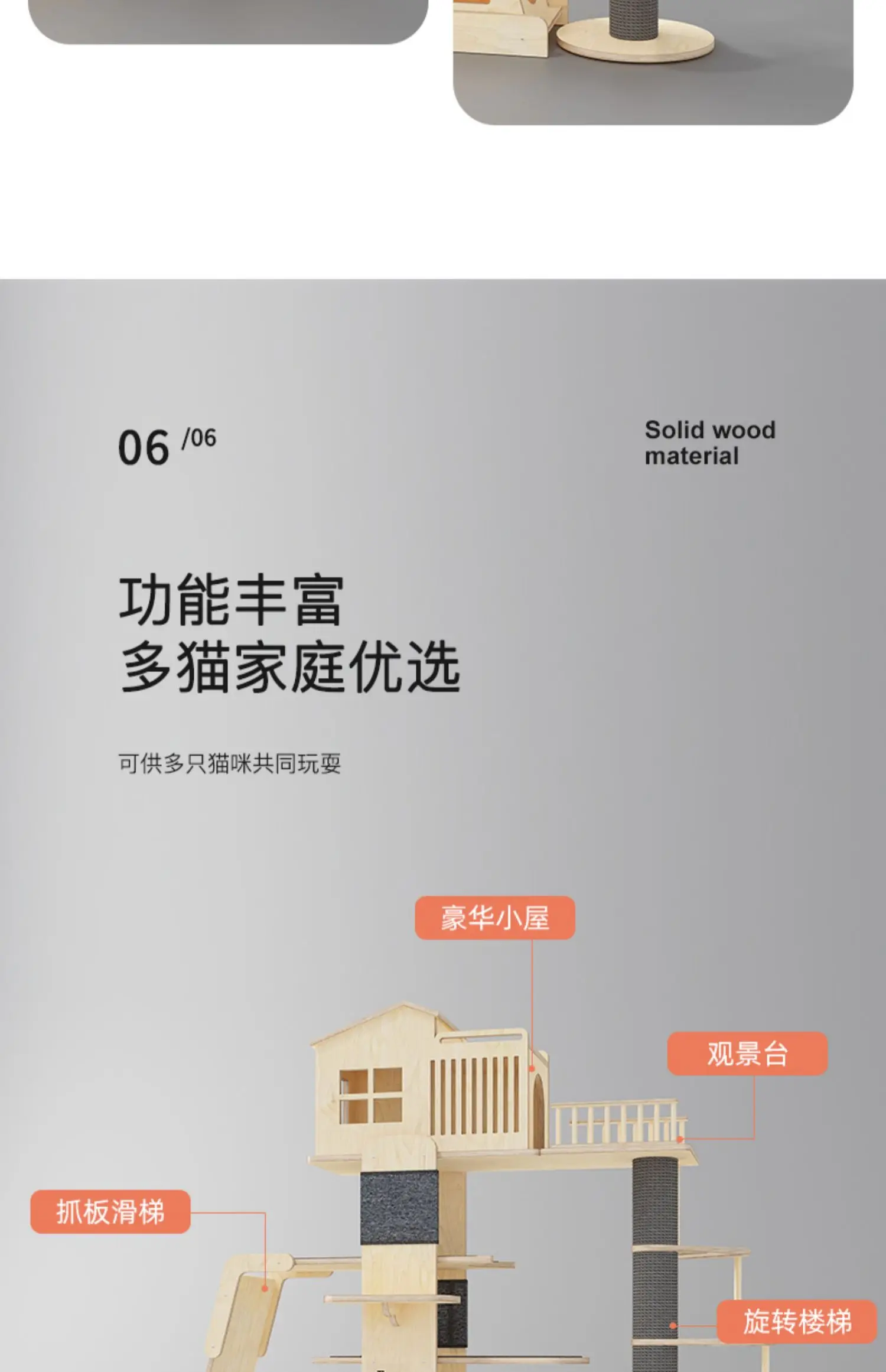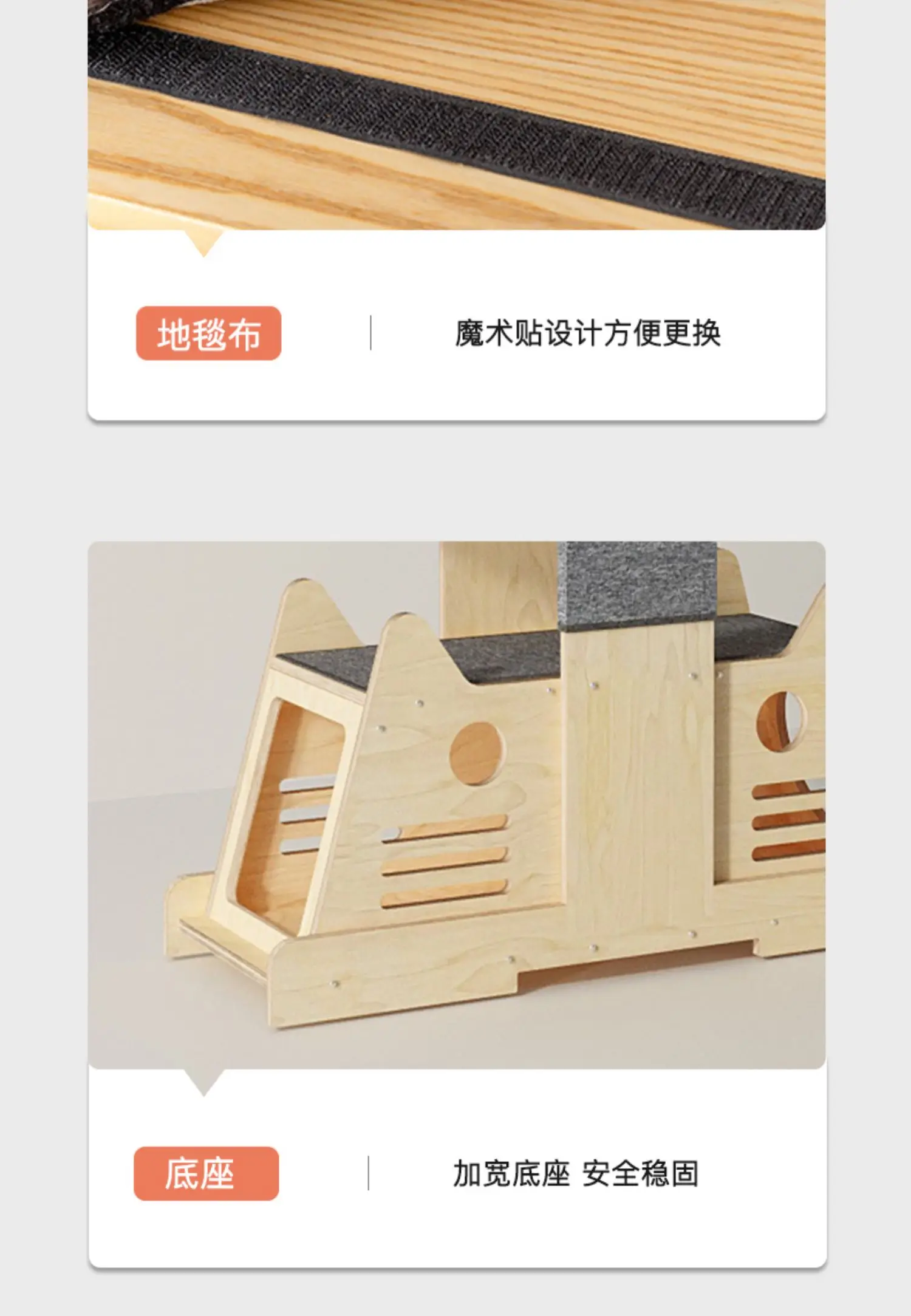 Solid wood cat climbing frame, large cat tree, small cat nest villa, luxury grab board, sky-pillar diving platform