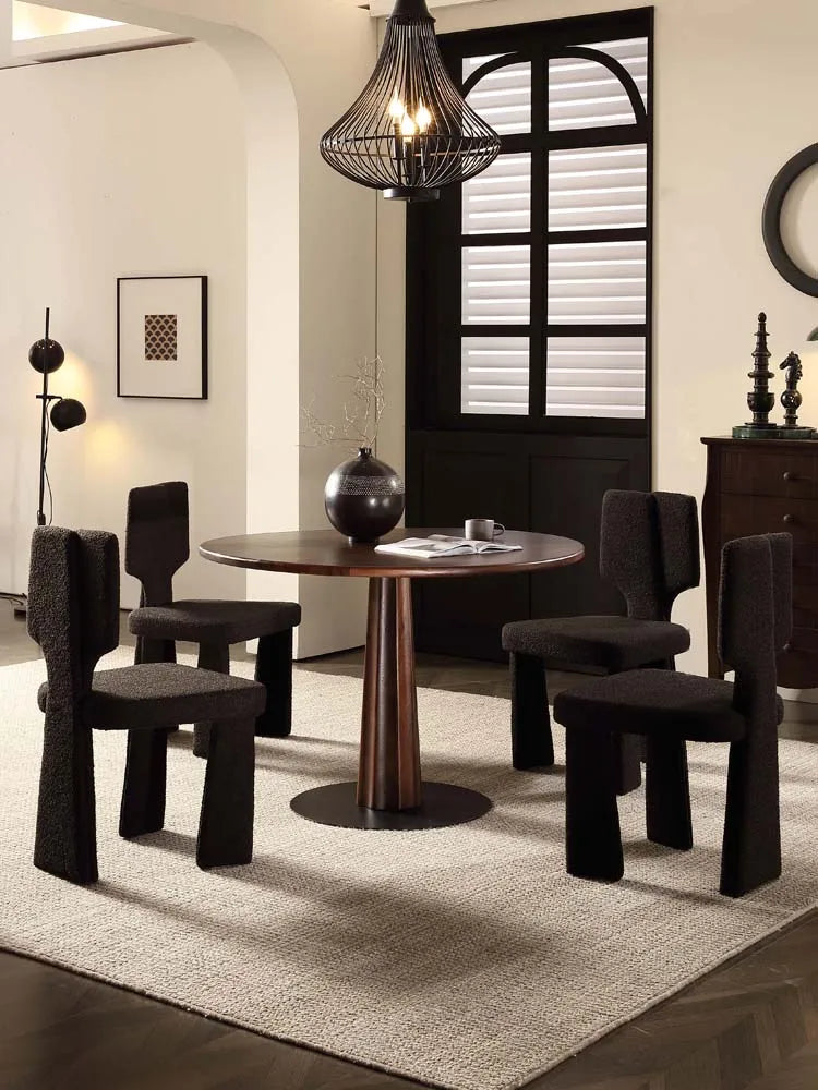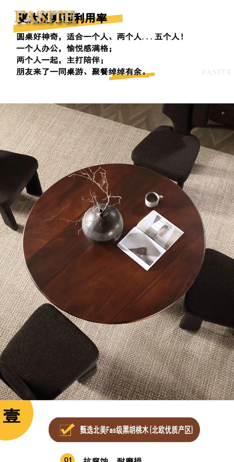 Solid wood circular dining table, Nordic small household, simple and casual table, retro style