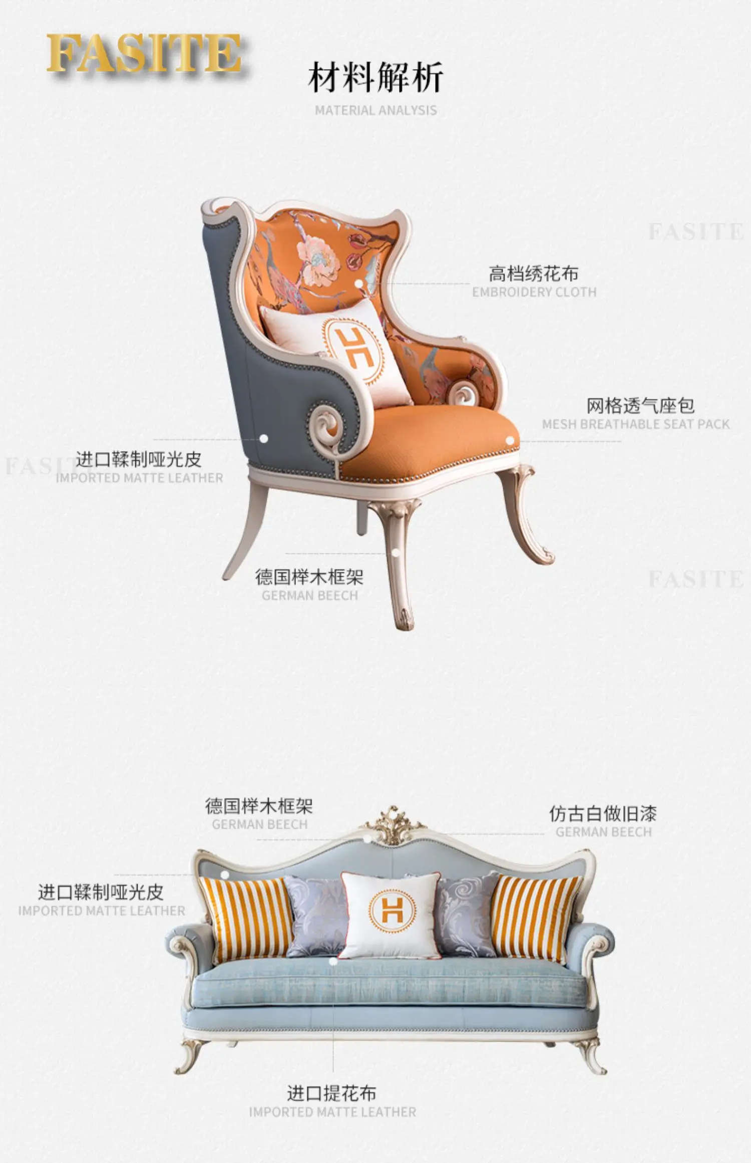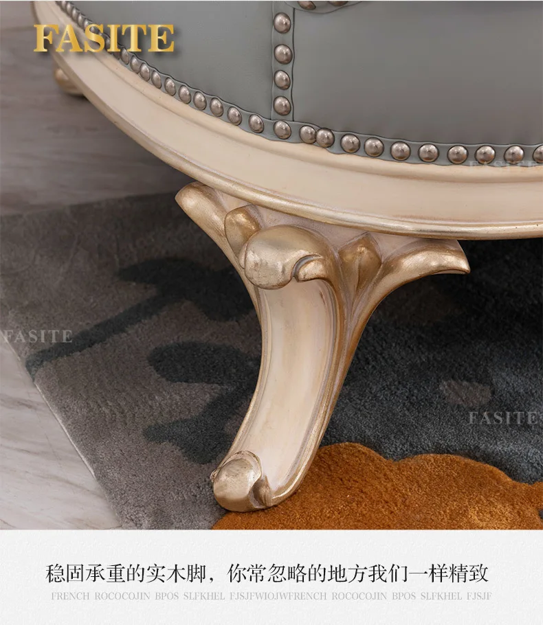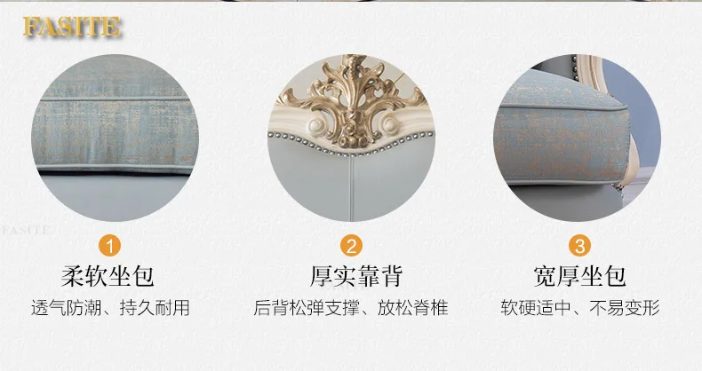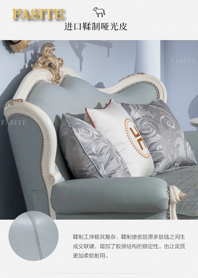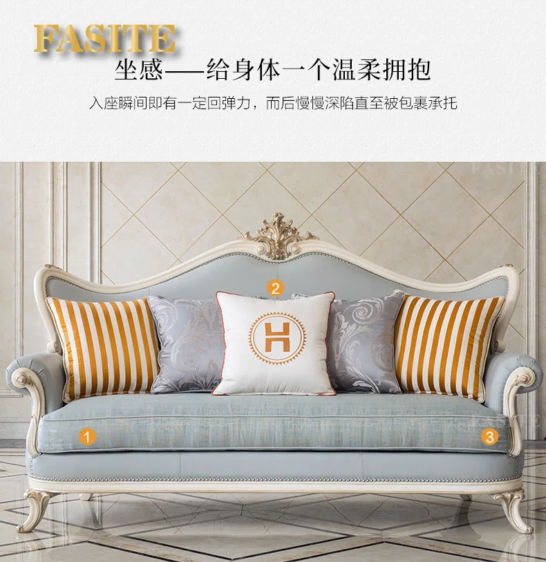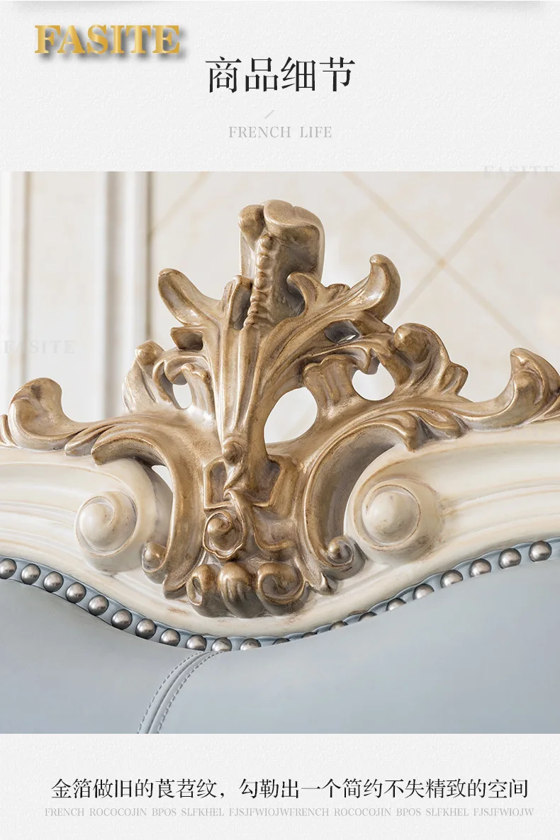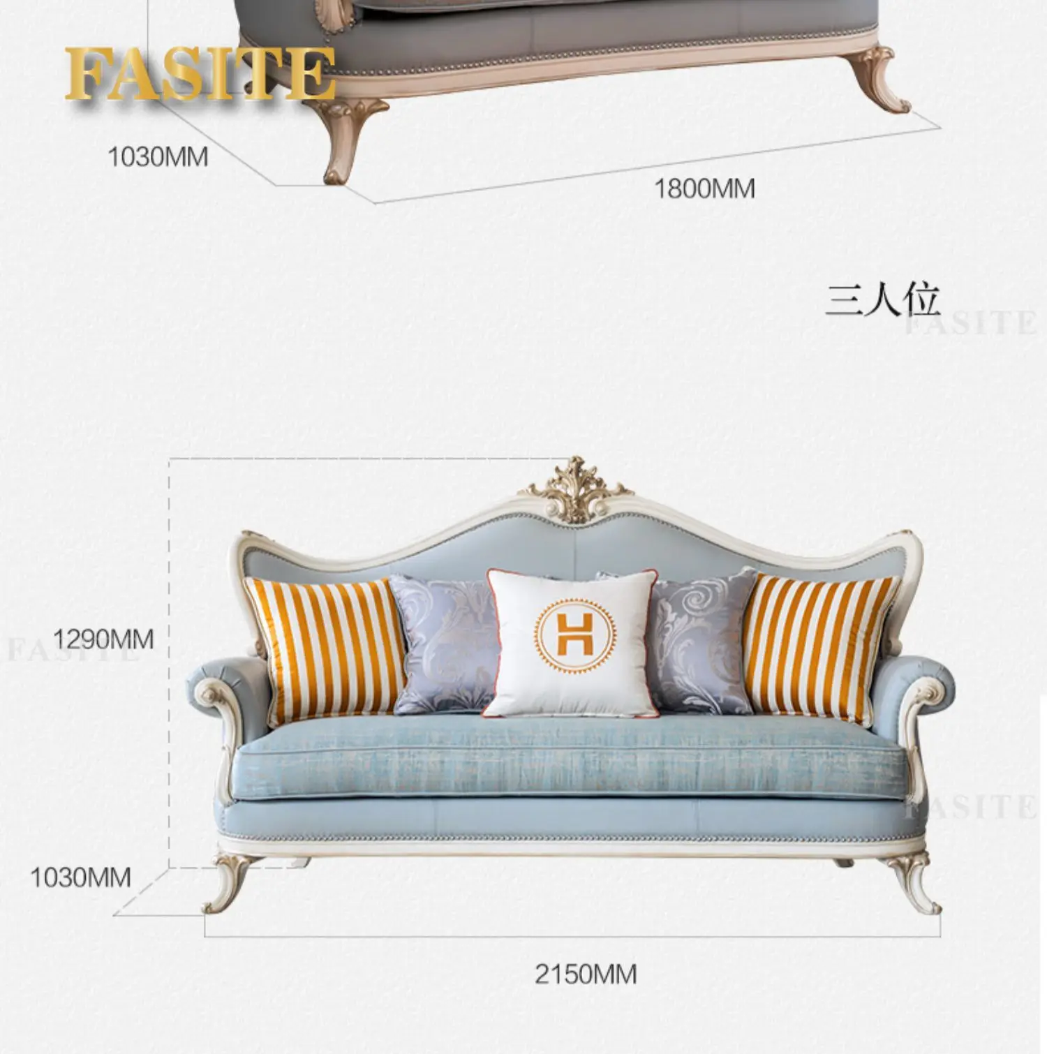 Solid wood, genuine leather, three person sofa, European style matte gold foil, used furniture