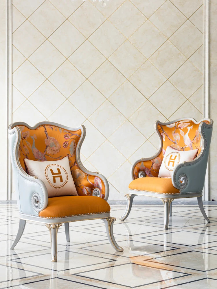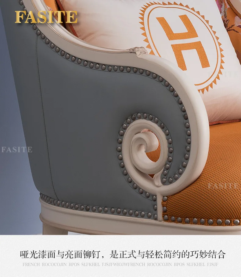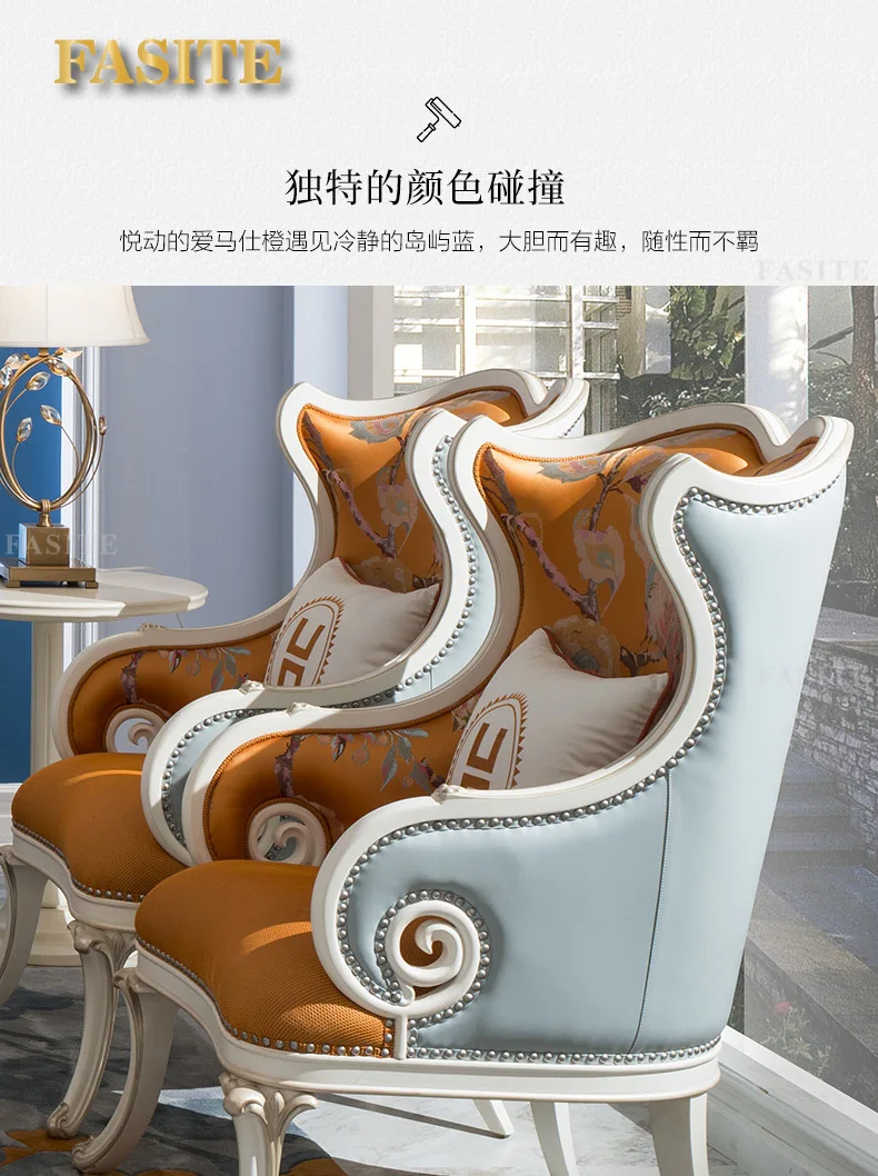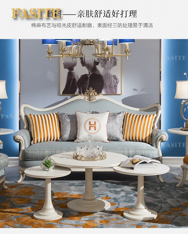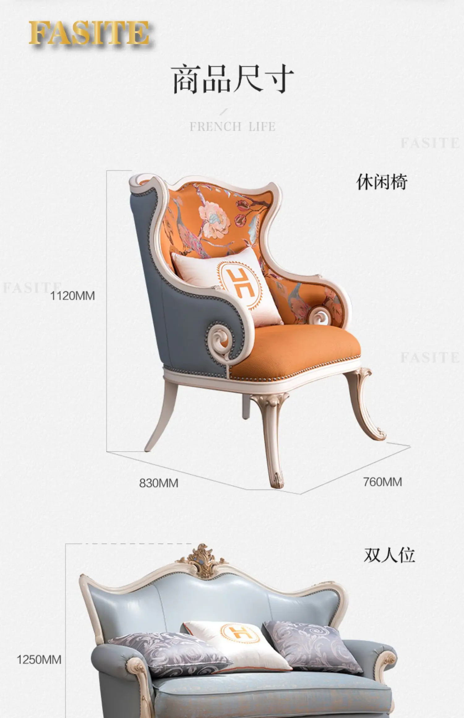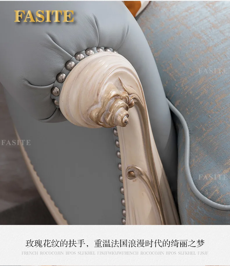 Solid wood, genuine leather, three person sofa, European style matte gold foil, used furniture