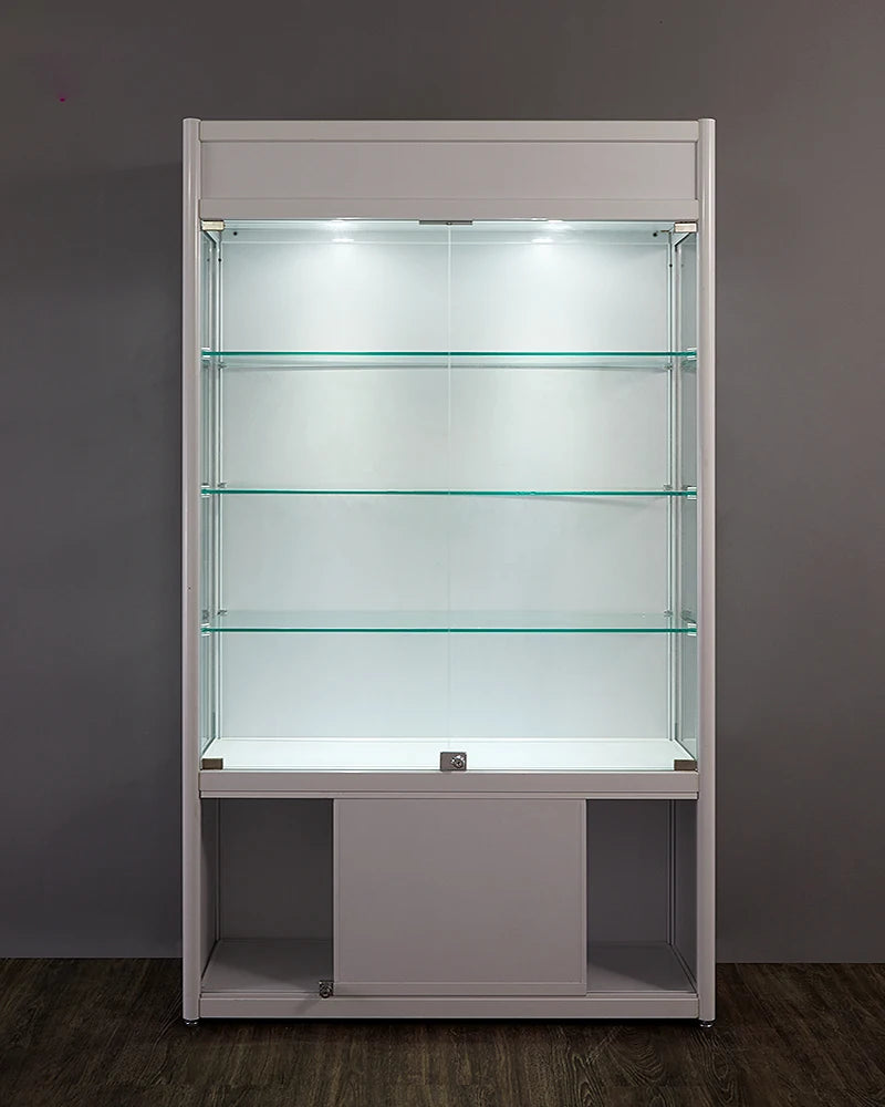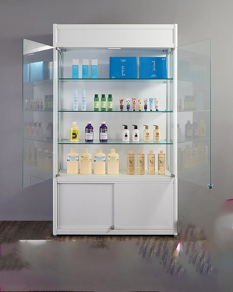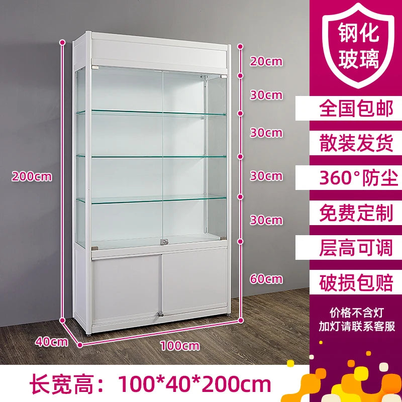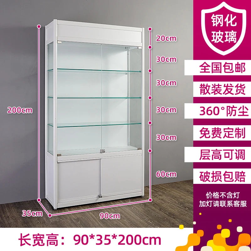 Solid wood light box with double open glass door and lock cosmetic display shelf beauty baby bag display hand-held cabinet