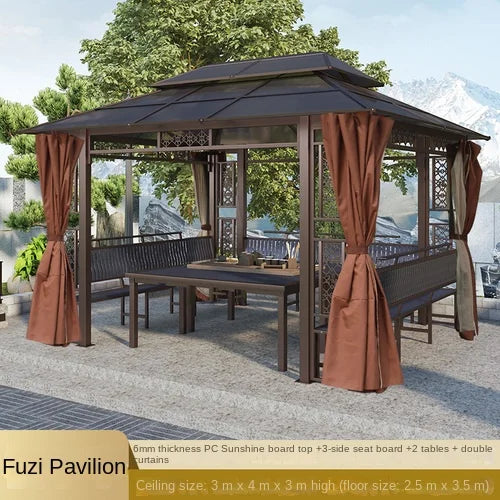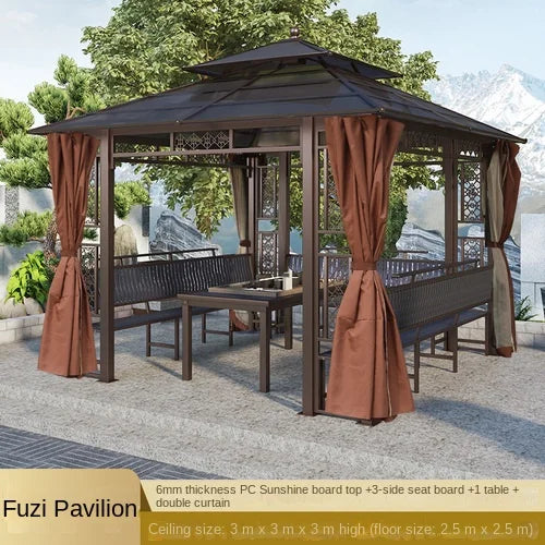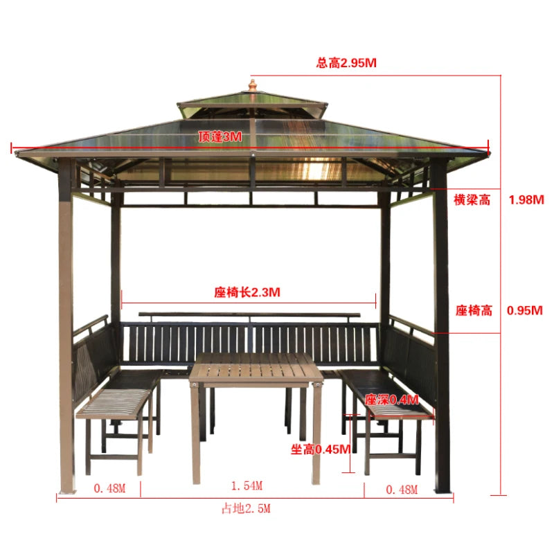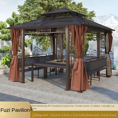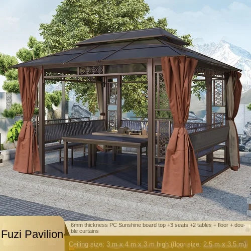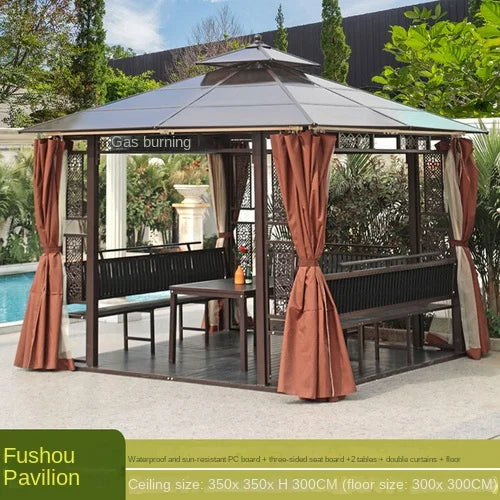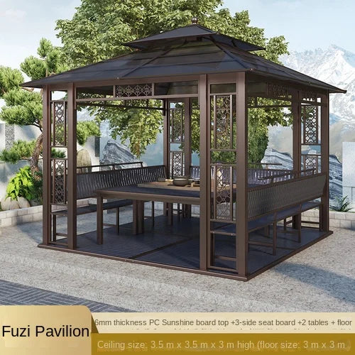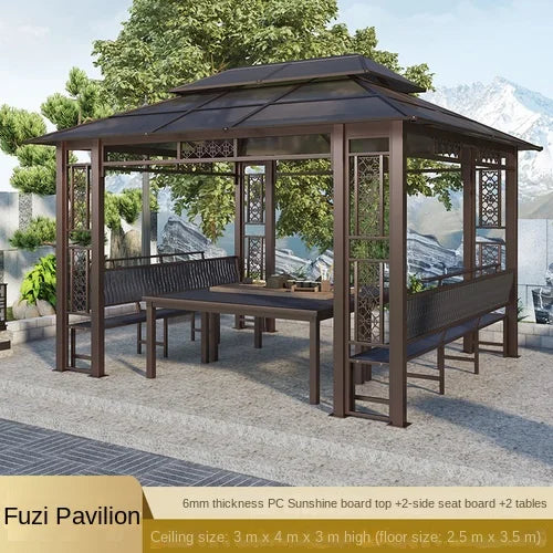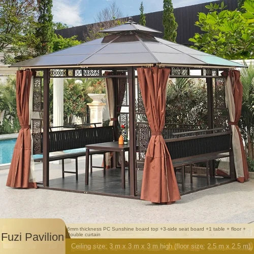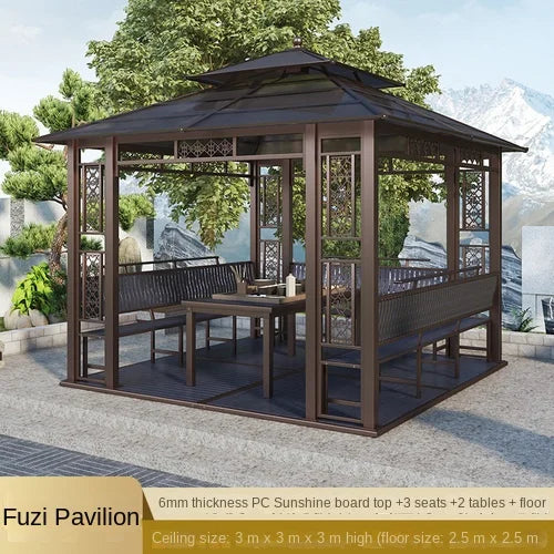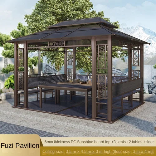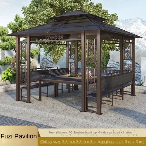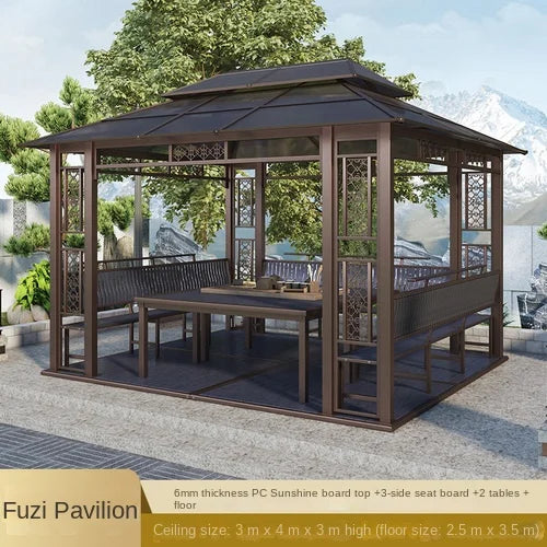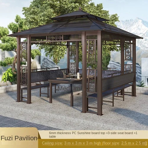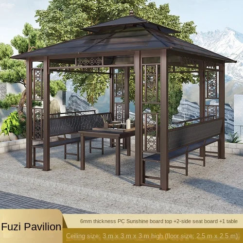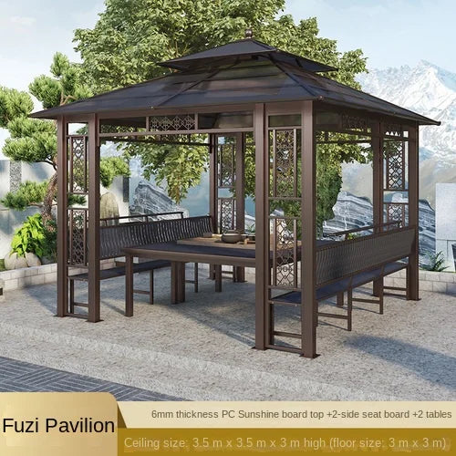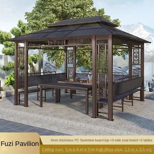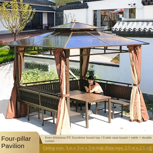 Solid wood pavilion, pavilion, table and chairs, antiseptic wood grape rack, villa, awning, tea pavilion, garden