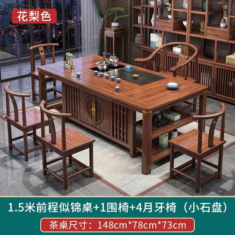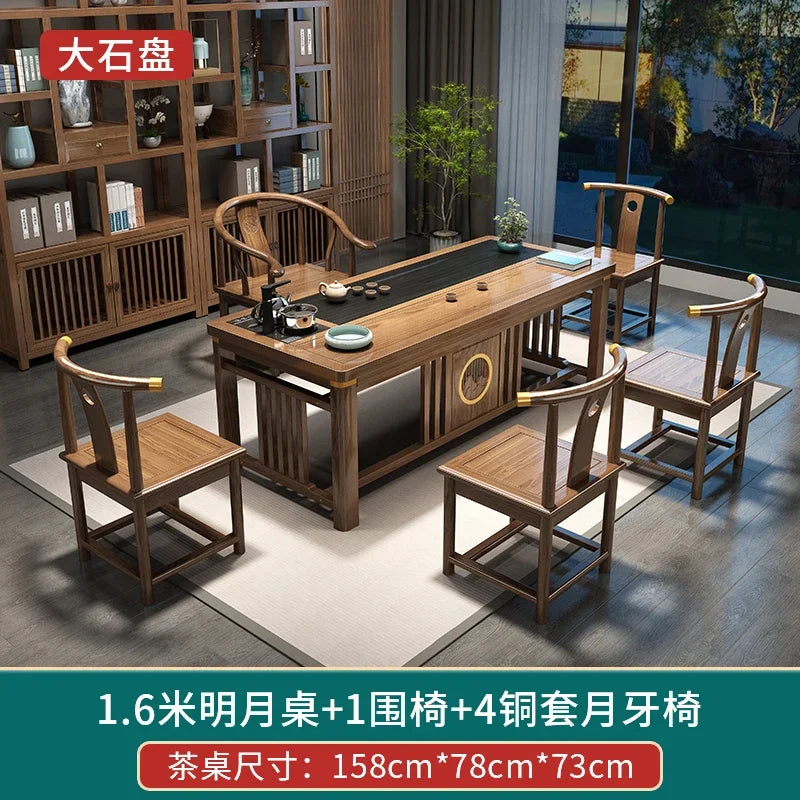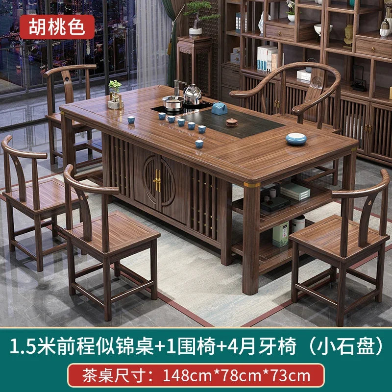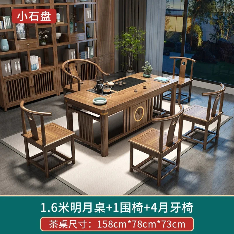 MMOOKA Solid Wood Table-Chair Set New Chinese Household One Table Five Chairs Kung Fu Tea Brewing Sets