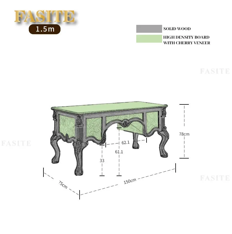 Solid wood vintage office computer desk assemble for office furniture 135cm