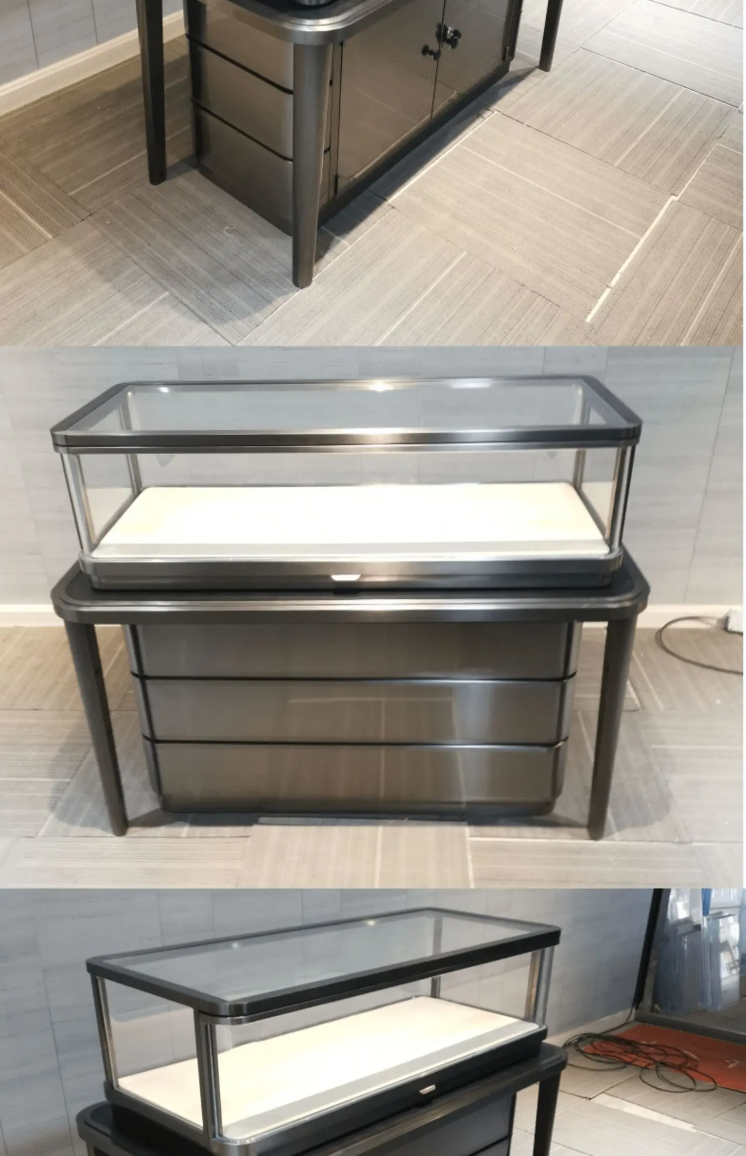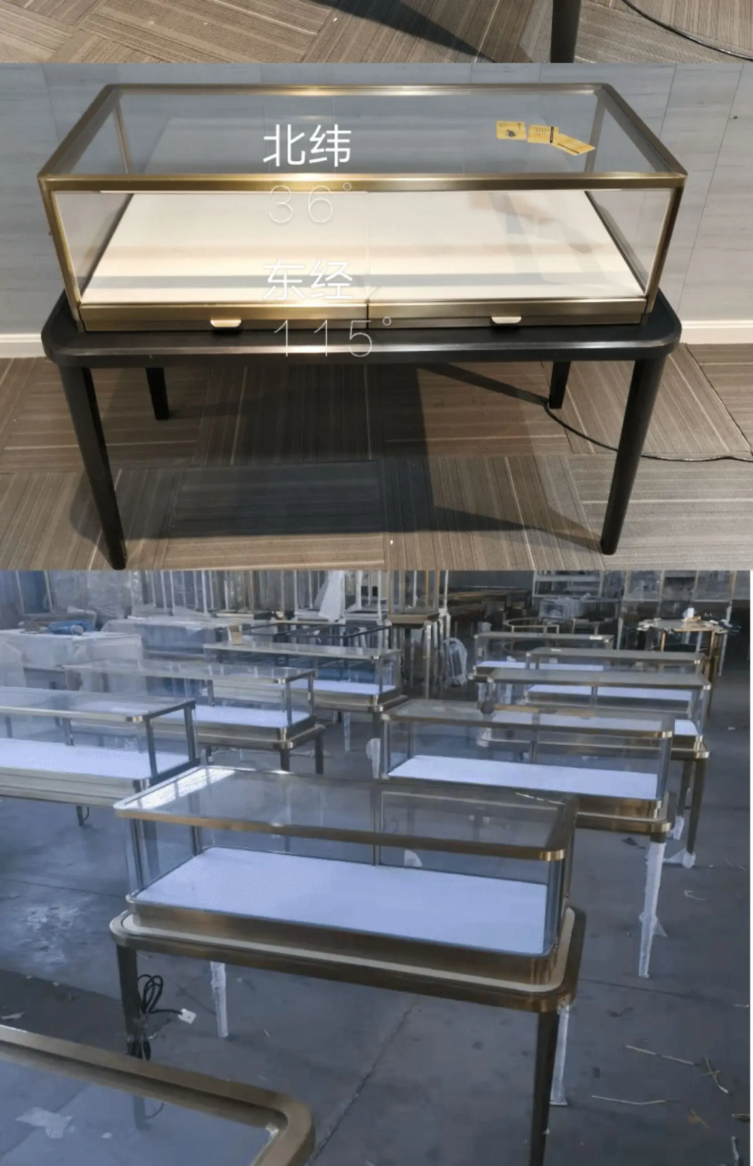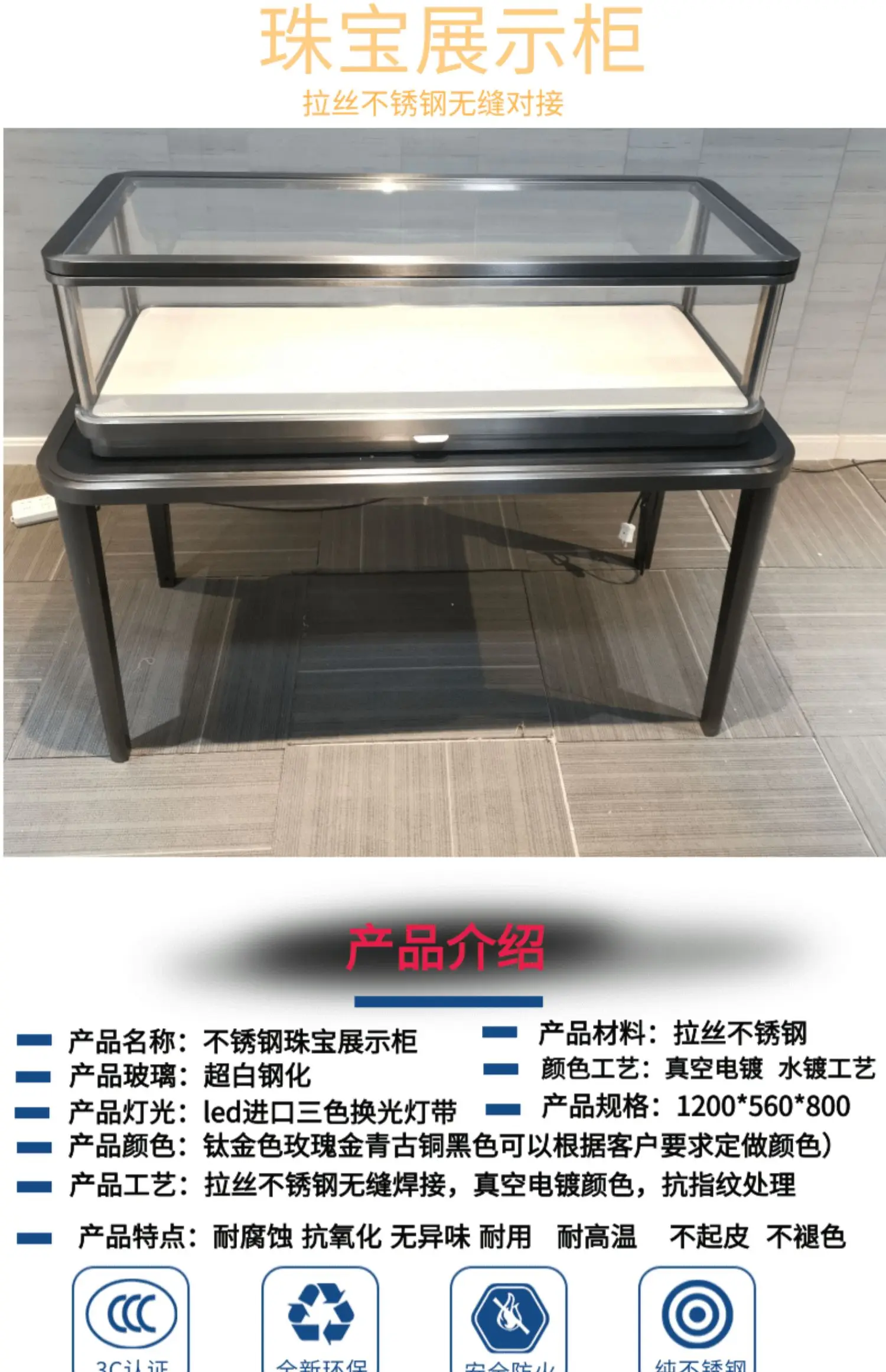Stainless steel high-end jewelry, jade display cabinet, jewelry video display cabinet, new glass counter