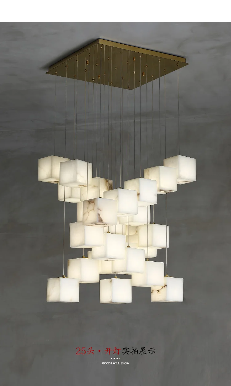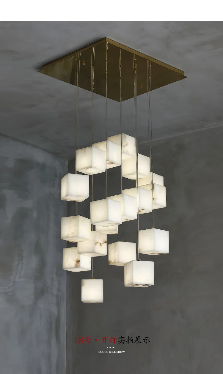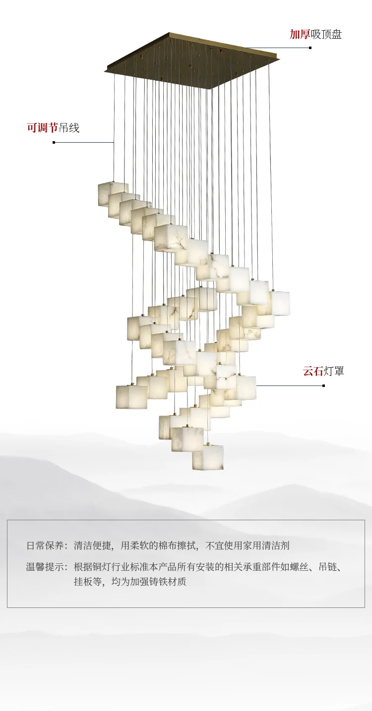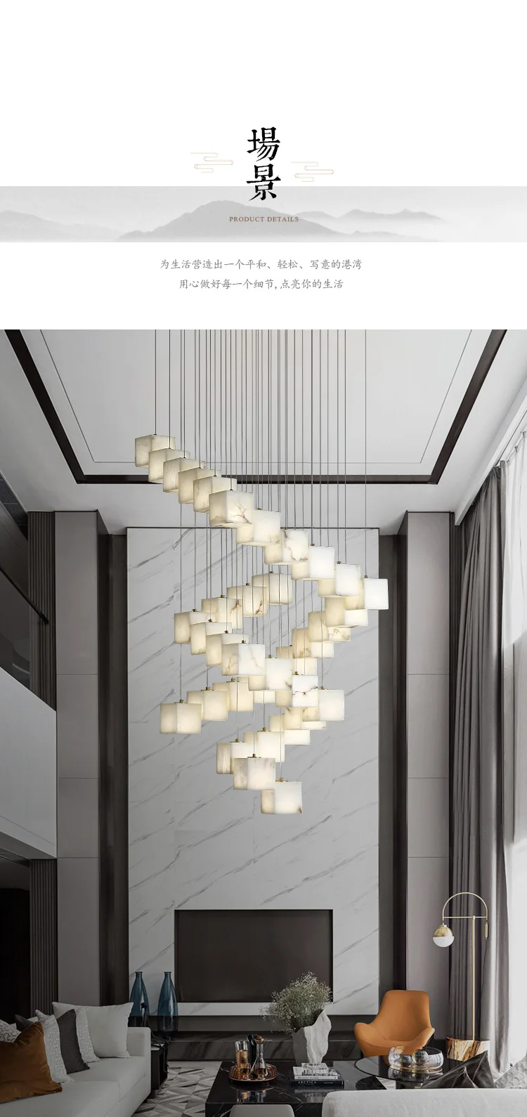 Stair long chandelier villa revolving living room large chandelier sales hall marble all-copper lamps