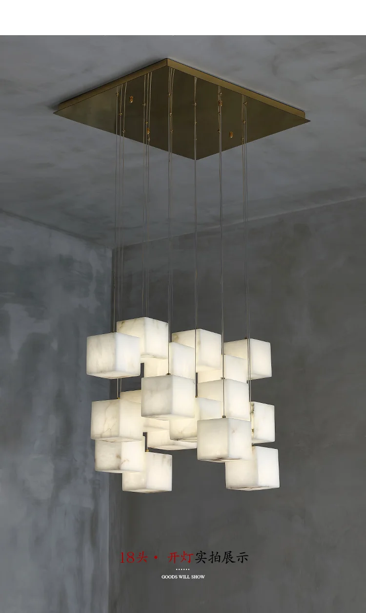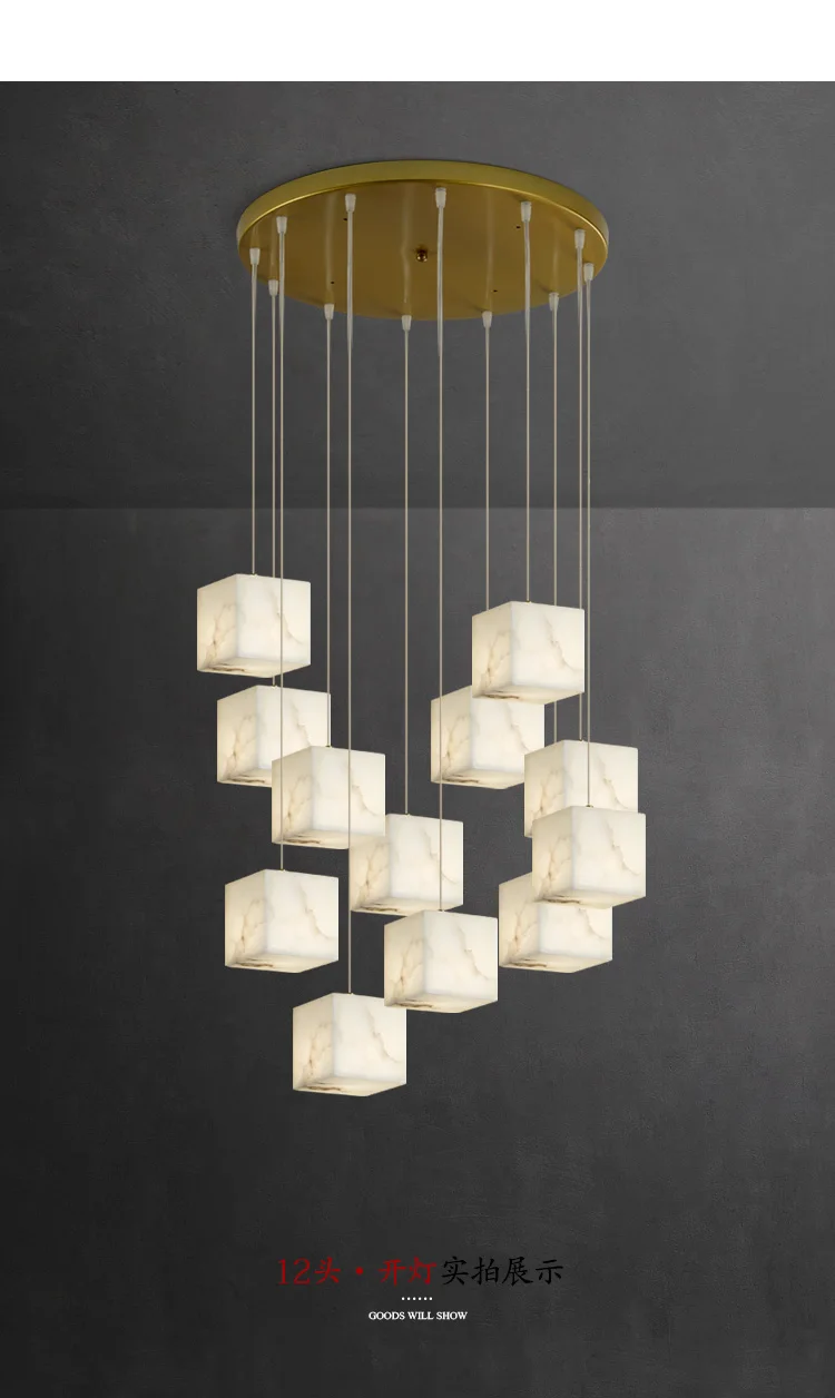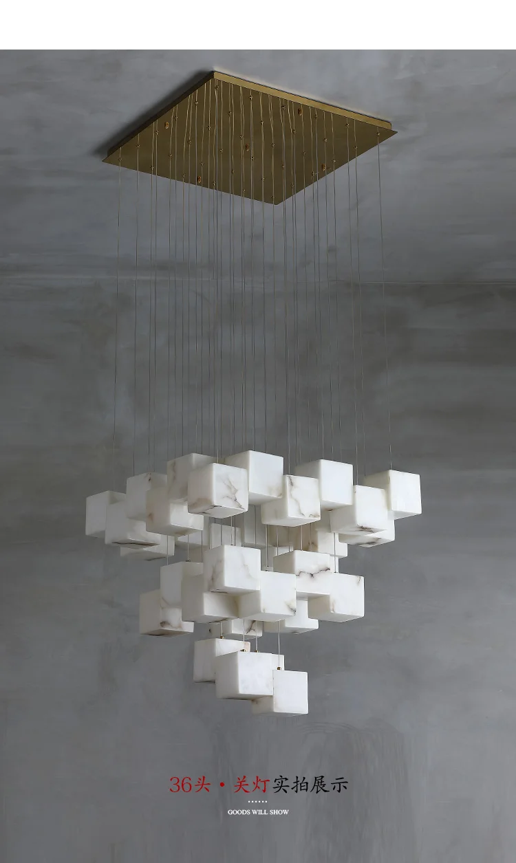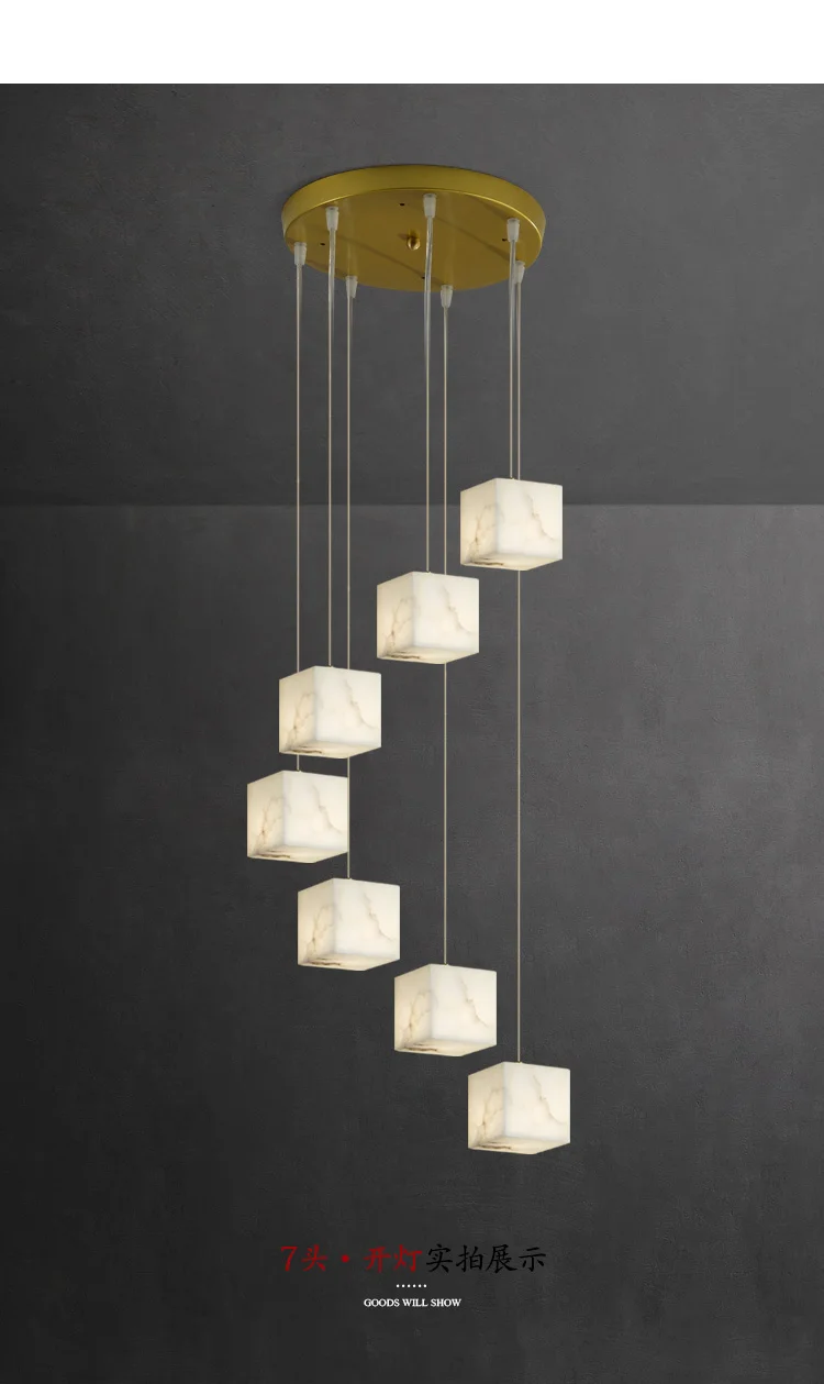 Stair long chandelier villa revolving living room large chandelier sales hall marble all-copper lamps