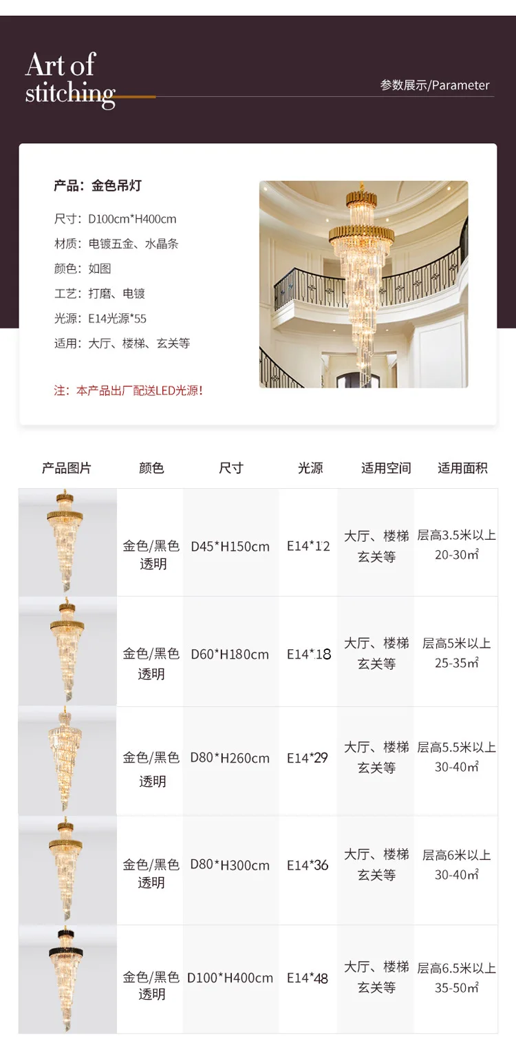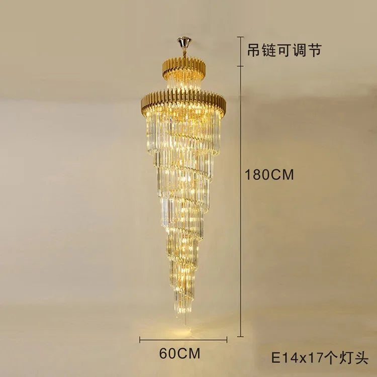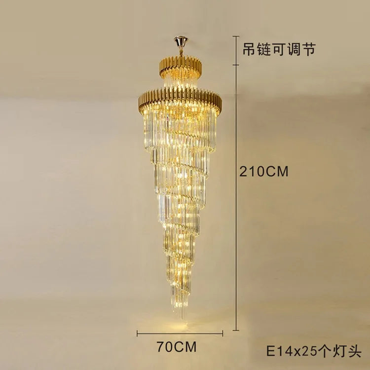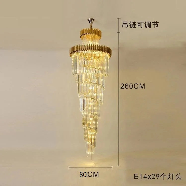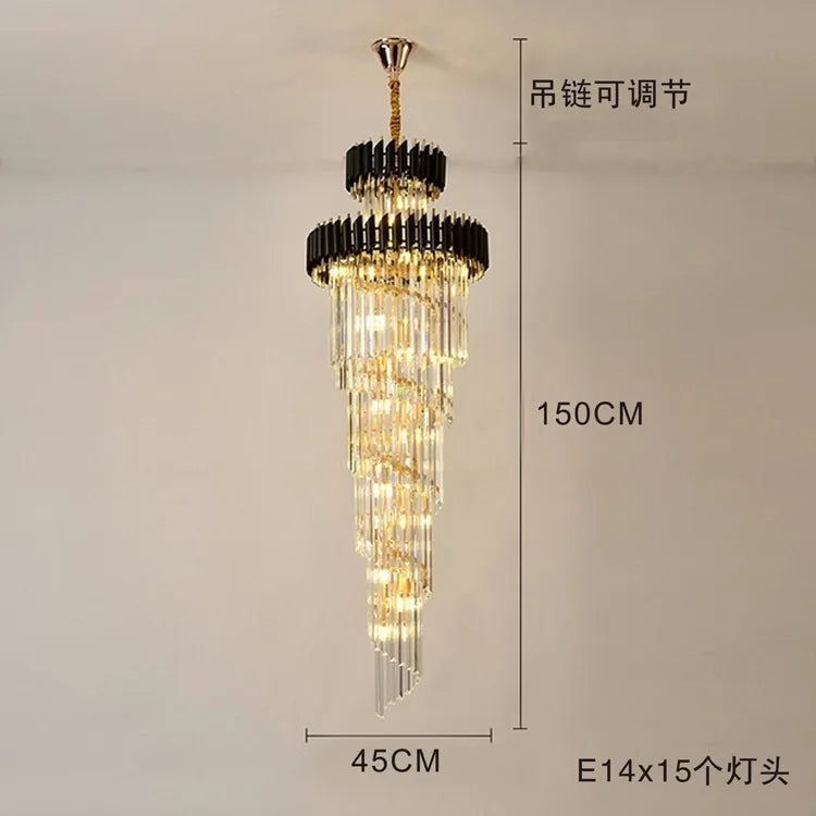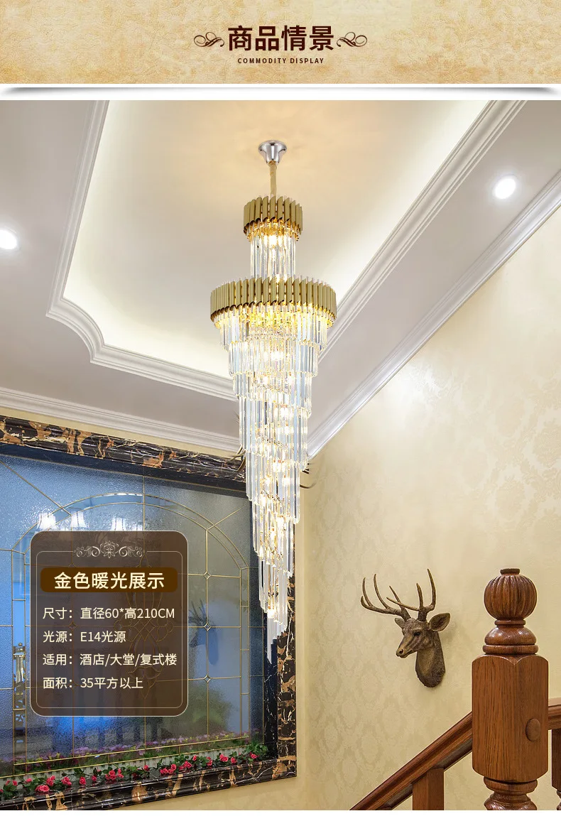Staircase chandelier crystal hotel lobby chandelier living room chandelier rotating villa hall light luxury long Chandelier