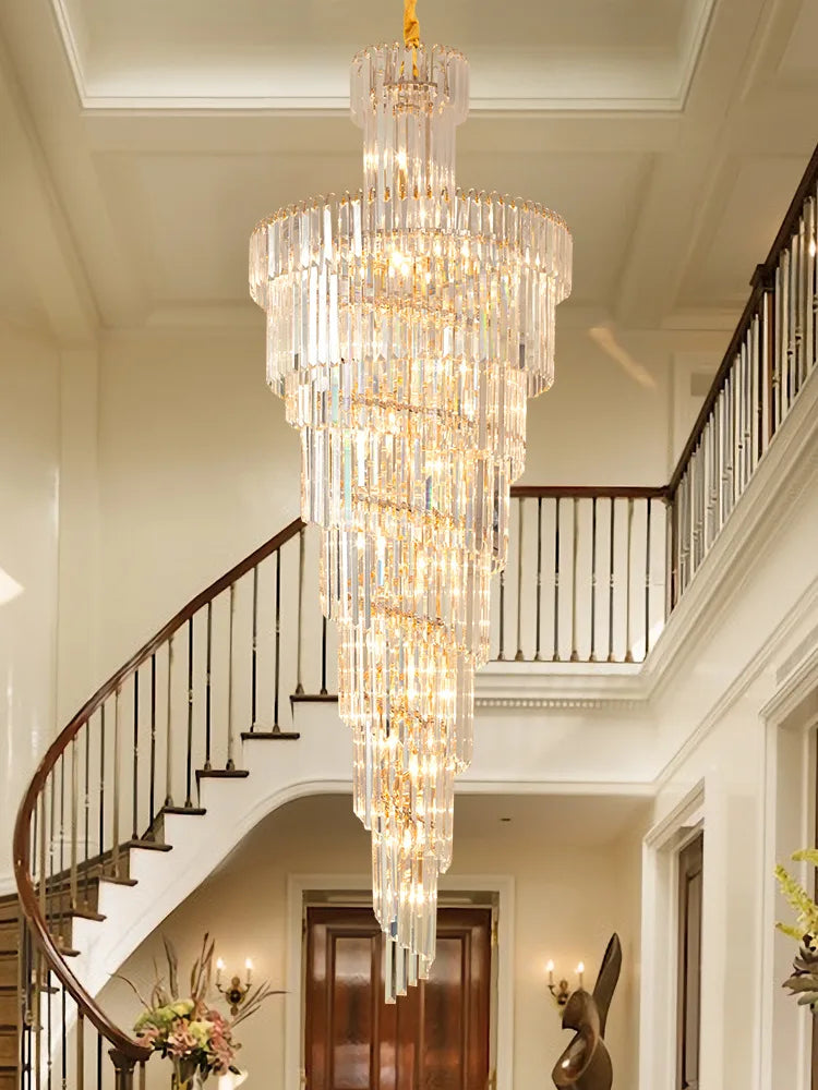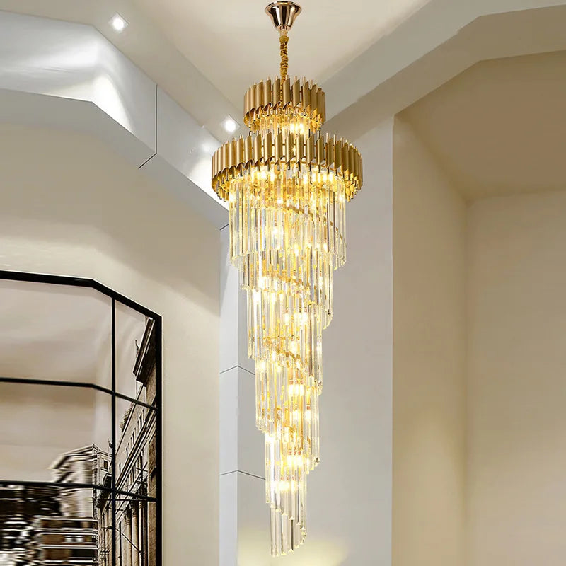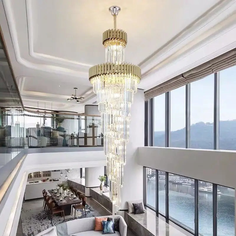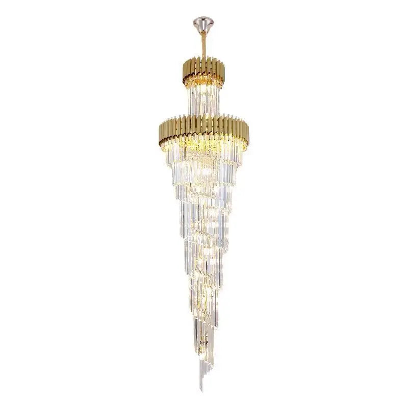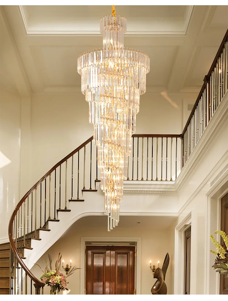 Staircase chandelier crystal hotel lobby chandelier living room chandelier rotating villa hall light luxury long Chandelier