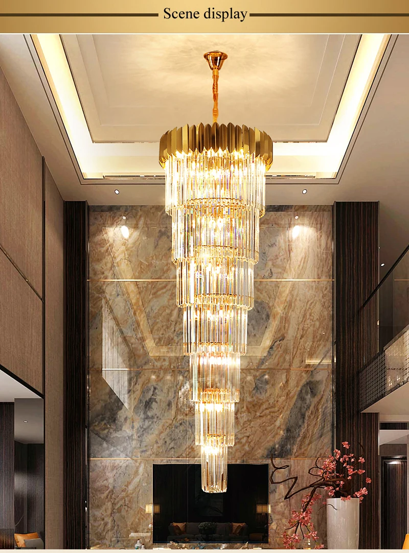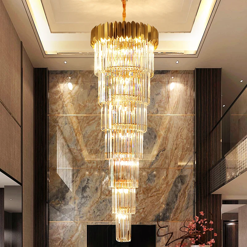 Stairs Long Chandelier Villa Hotel Hall Rotating Large Chandelier Ceiling Modern Duplex Floor Living Room Crystal Hanging Light