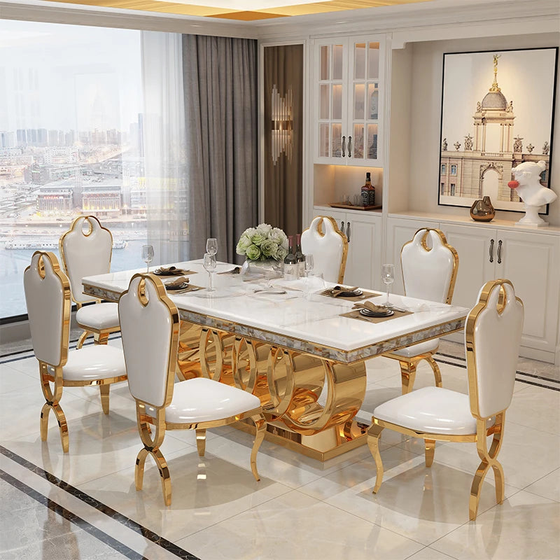 Stone Plate Dining Tables and Chairs Set Simple Rectangular Dining Table Home Mild Luxury Marble Dining Table