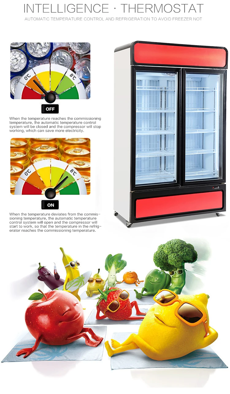 supermarket drink chiller display showcase fridge glass door side-by-side refrigerators
