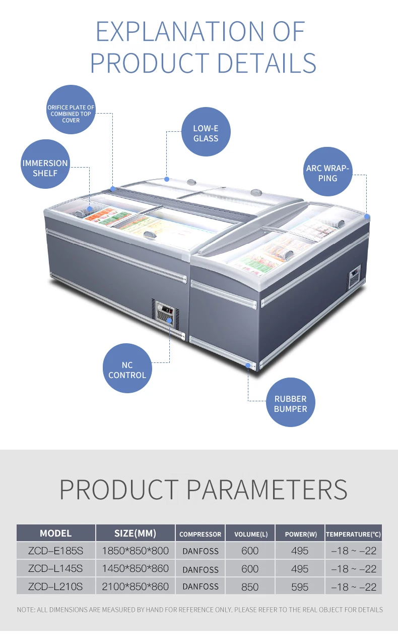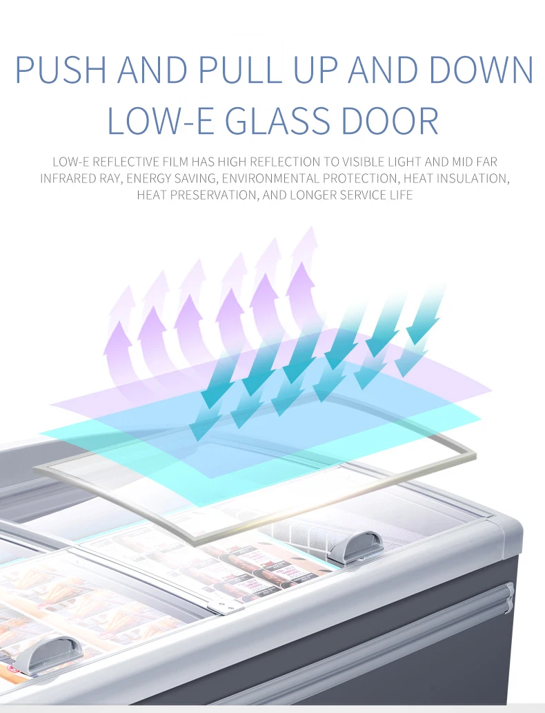 supermarket glass door ice cream meat fridge commercial horizontal refrigerator showcase display chest freezers