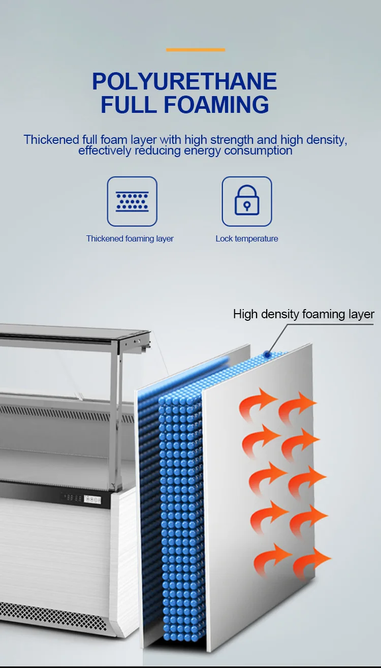 Supermarket Service Counter Refrigerated Showcase Meat Refrigerator Glass Door Deli Display Chiller