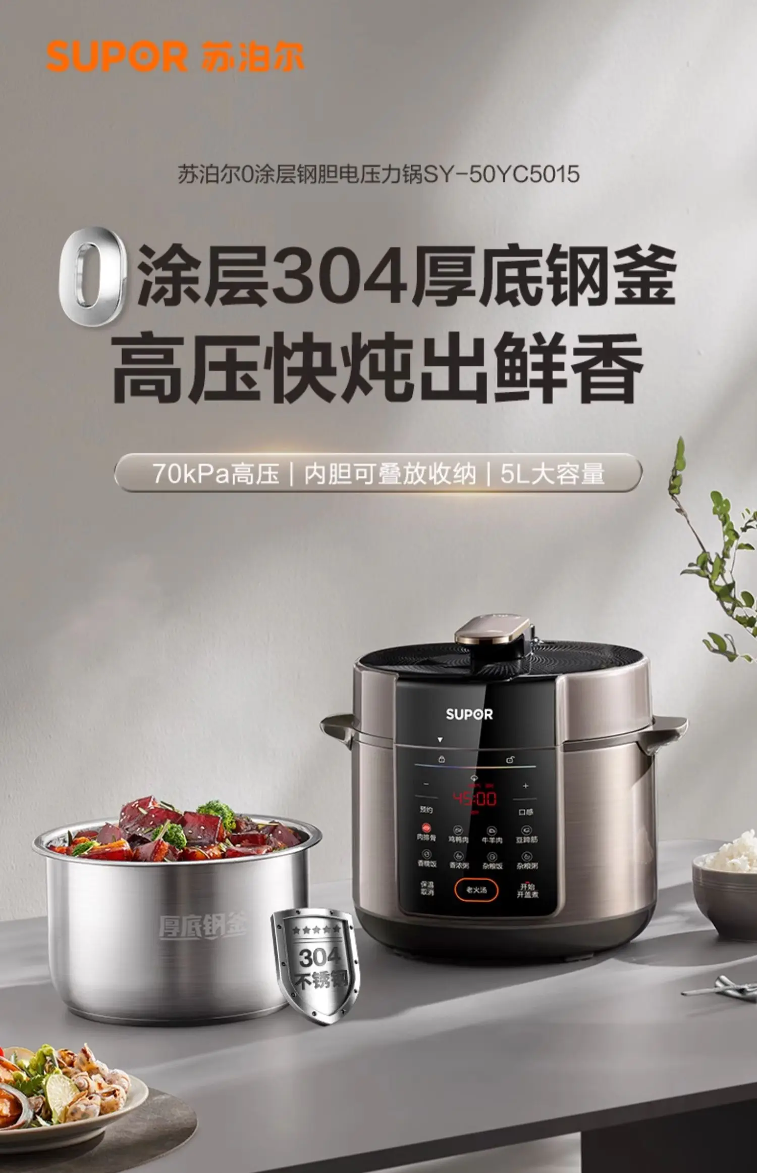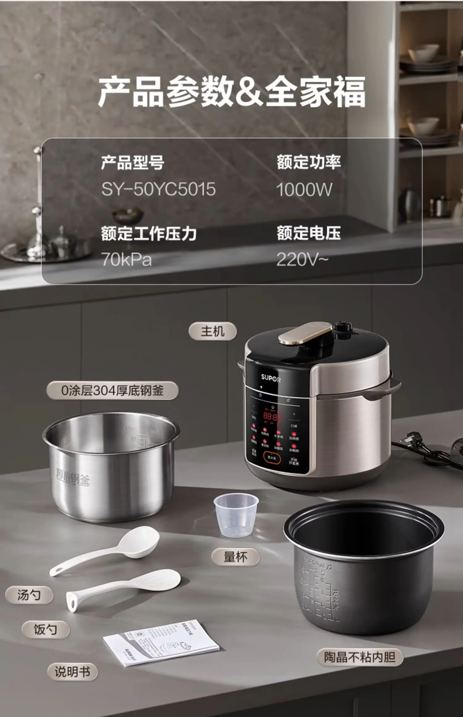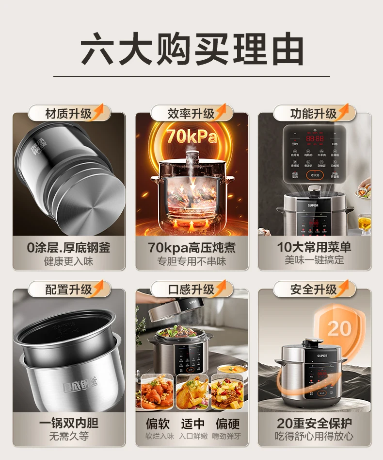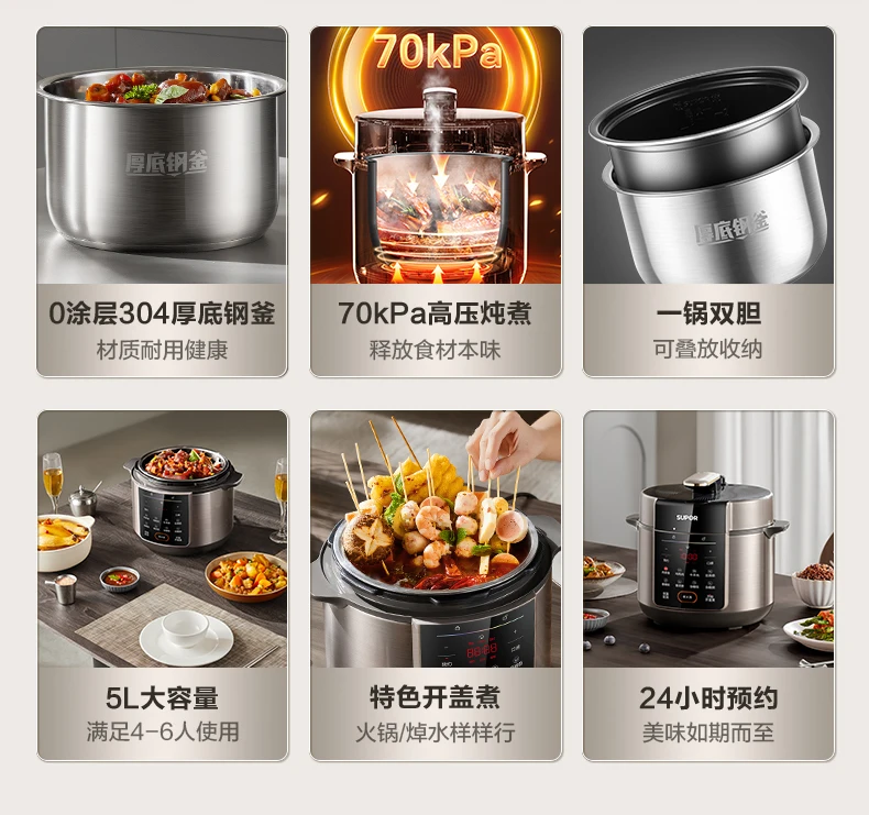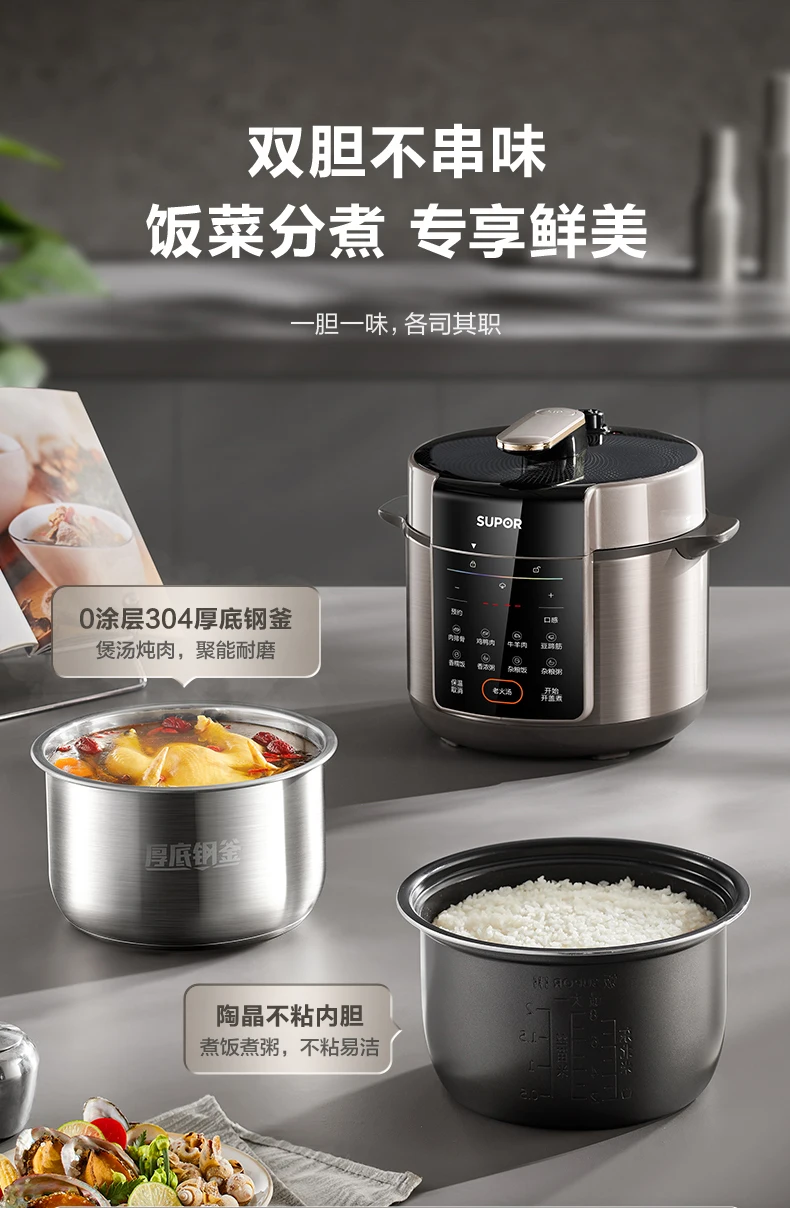 Supor electric pressure cooker 0 coated double bile multi-functional high pressure rice cooker 5L large capacity rice cooker