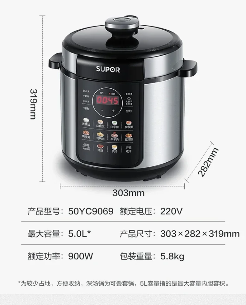SUPOR Electric Pressure Cooker 5L Two Tanks High Quality Electric Rice Cooker Graphic Display Multifunction Menu Electric Cooker