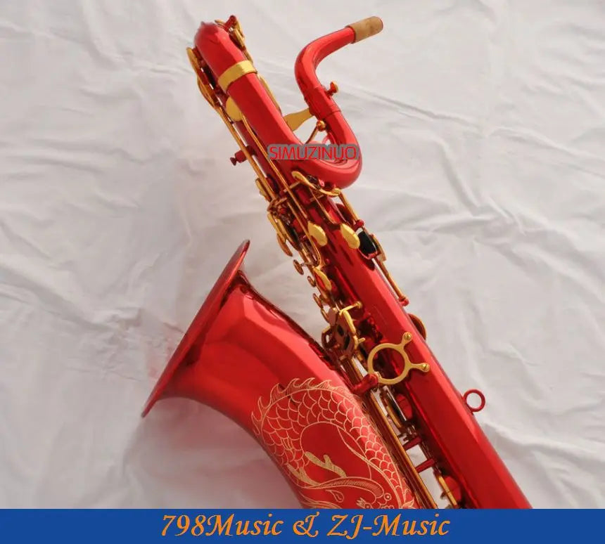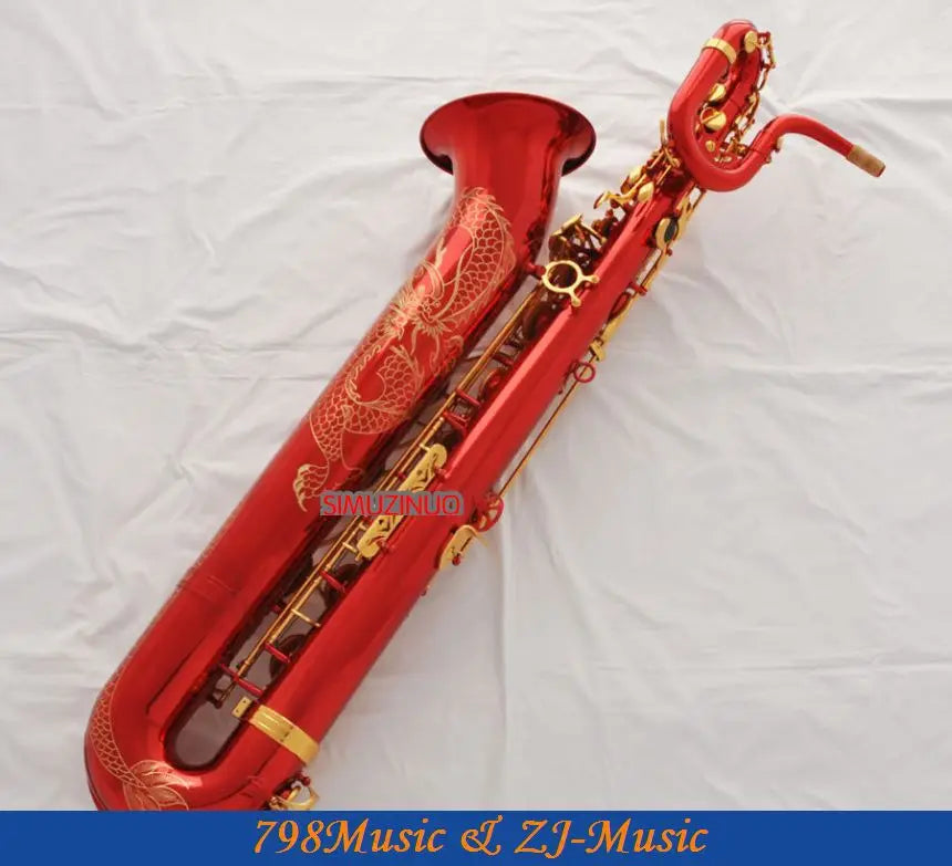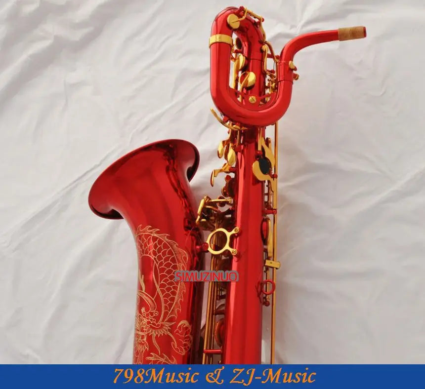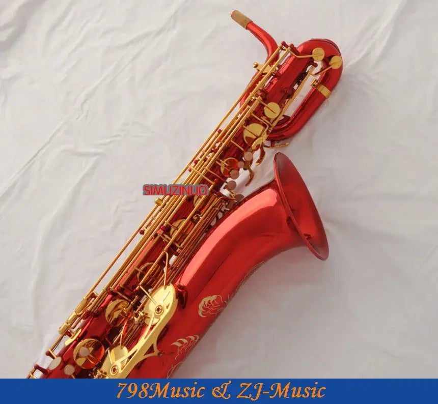 Support Professional Red Lacquer and Lacquer Gold Baritone Saxophone Sax High F# W/Leather Case