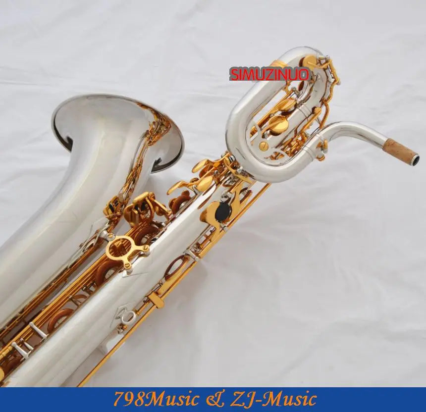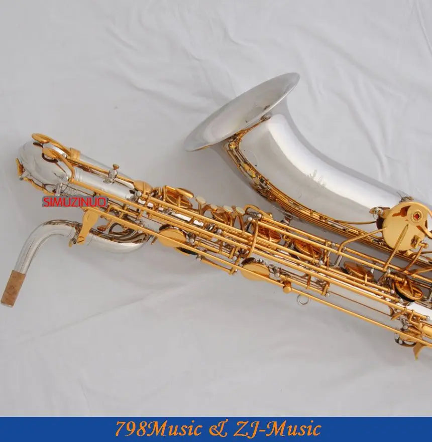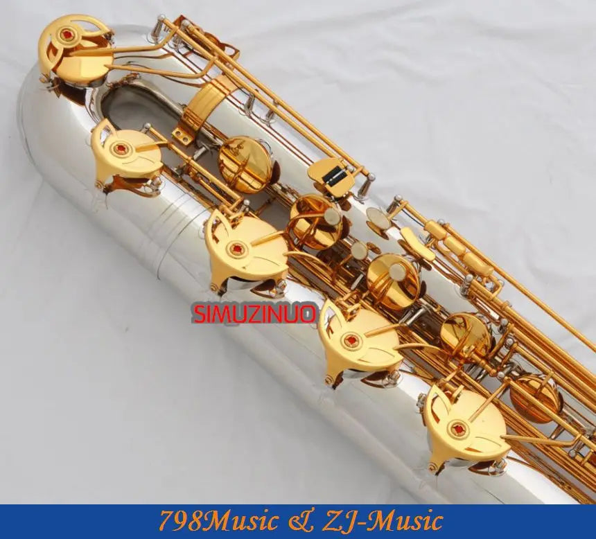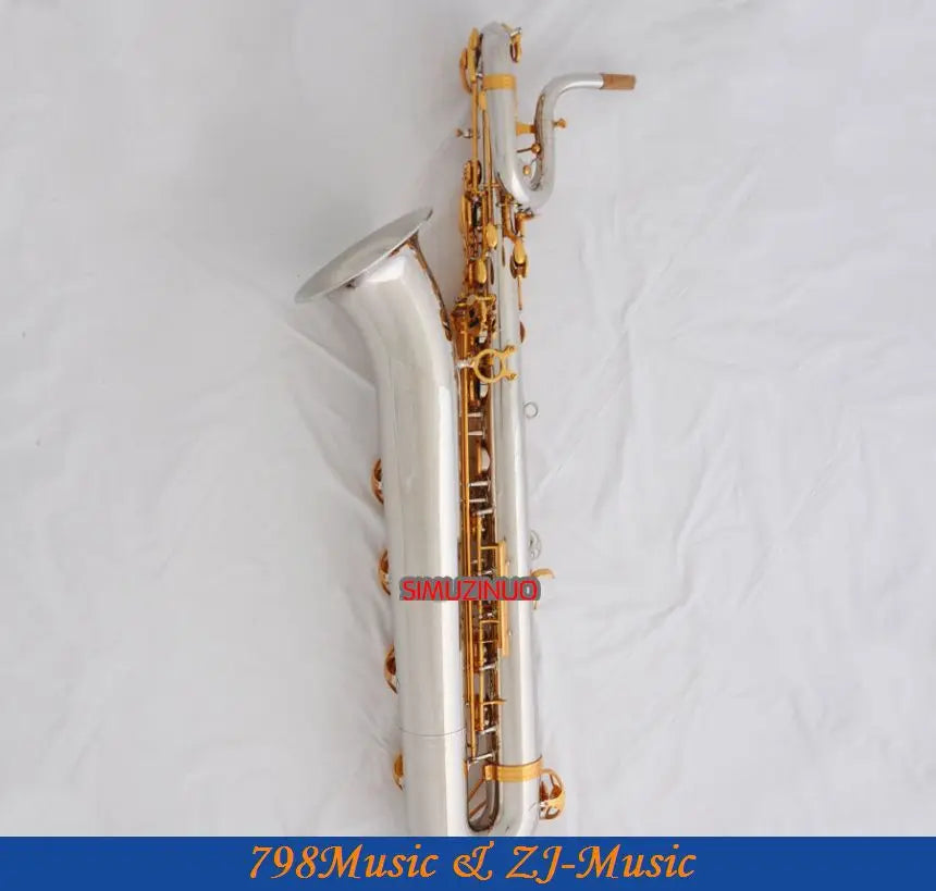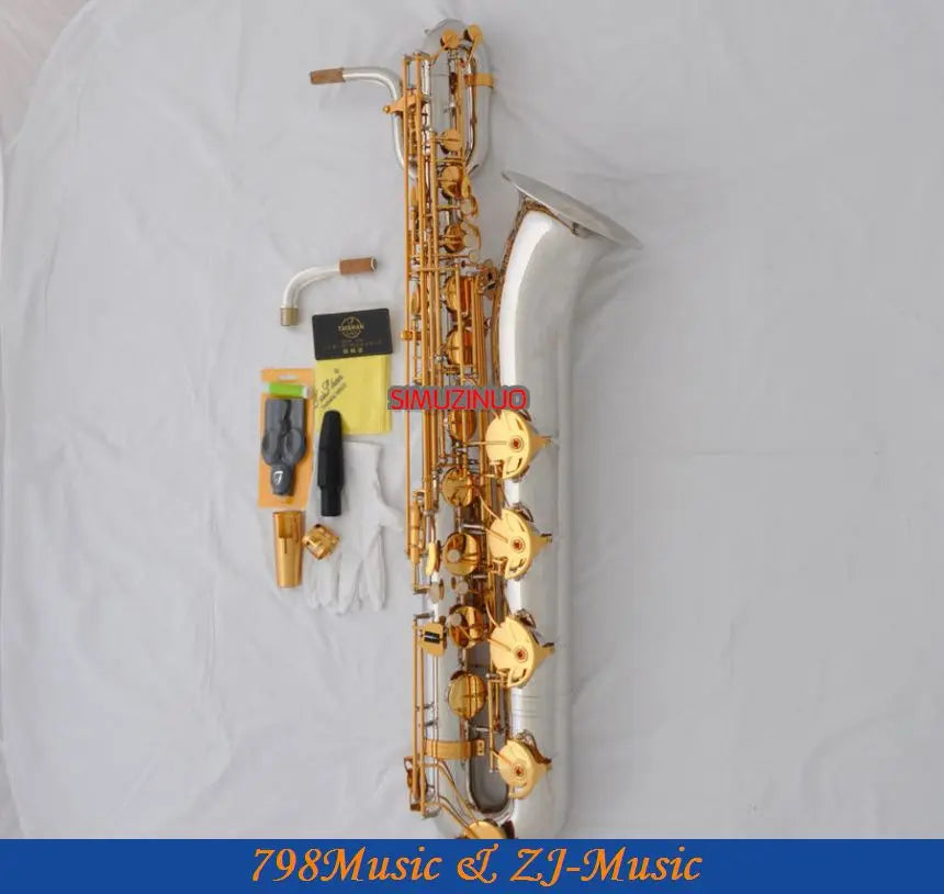 Support Professional Silver and Gold Plated Baritone Saxophone Sax High F# Leather Case