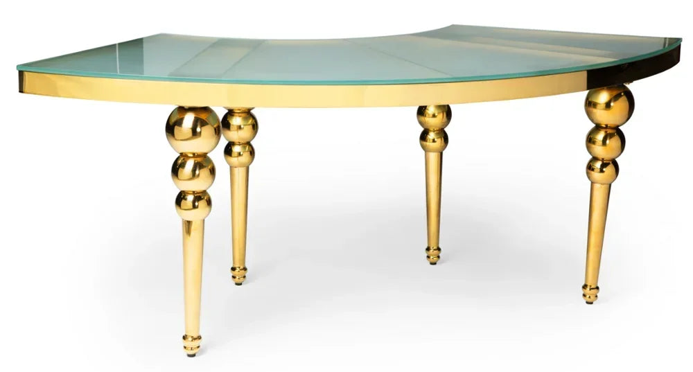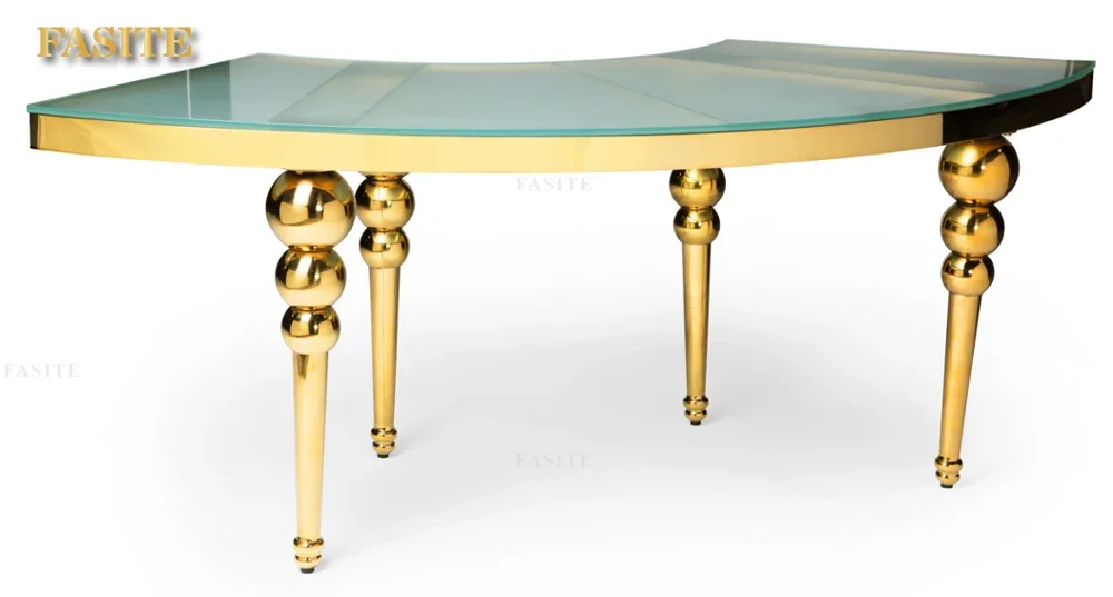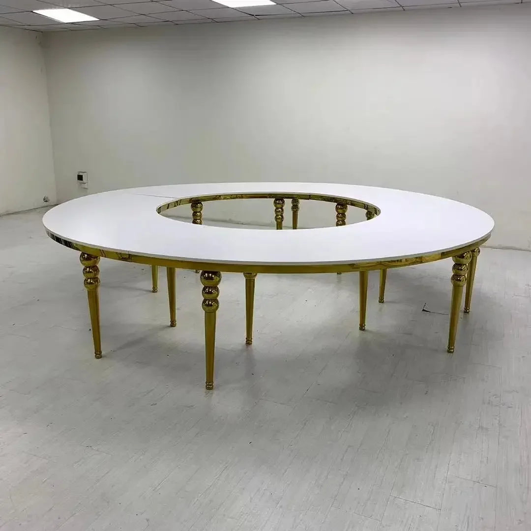 Tavolo da matrimonio a mezza luna in vetro temperato in acciaio inossidabile con cerchi rotondi per feste di luna per il noleggi