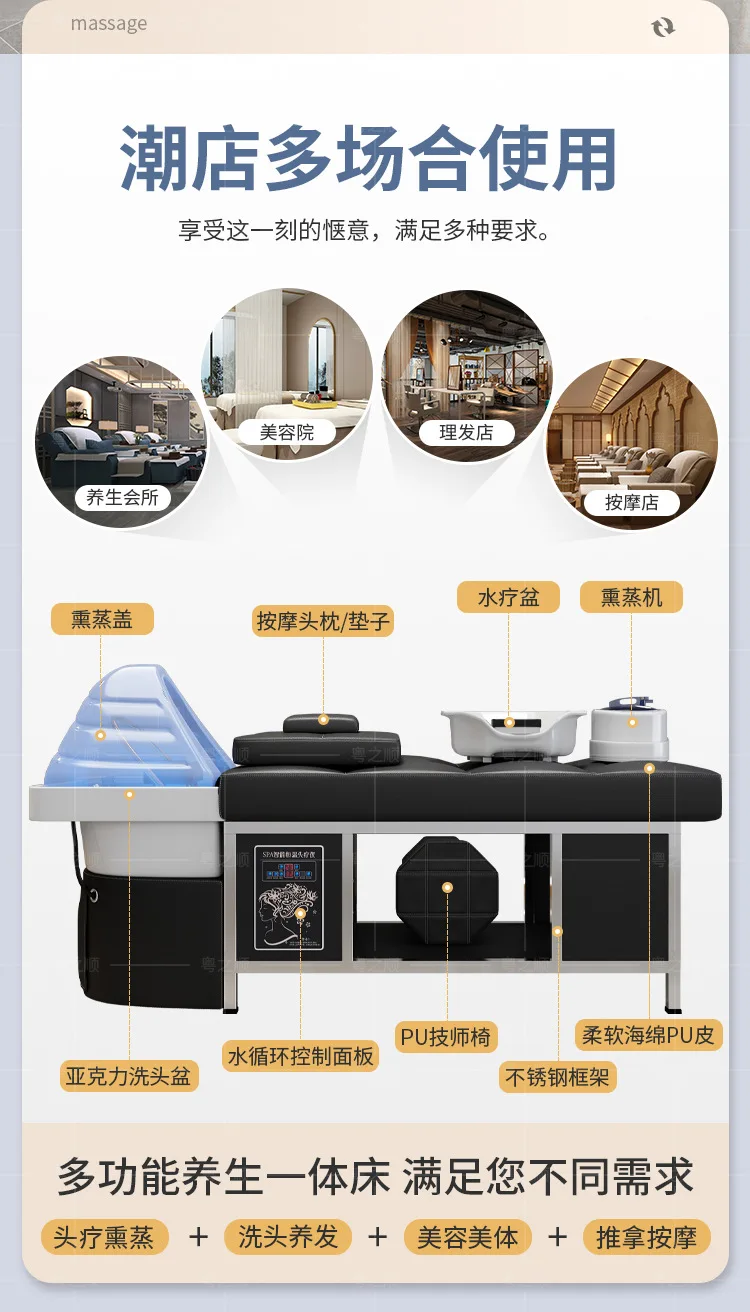Thai style hair therapy, shampoo bed, constant temperature water circulation, fumigation, massage, high-end hair salon,