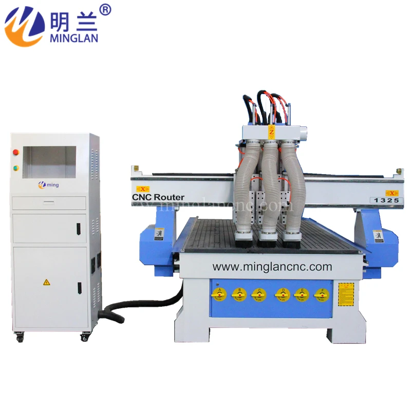 Three Heads Auto Tool Pneumatic ATC Machine 1325 Woodworking Multi Spindles Cnc Router