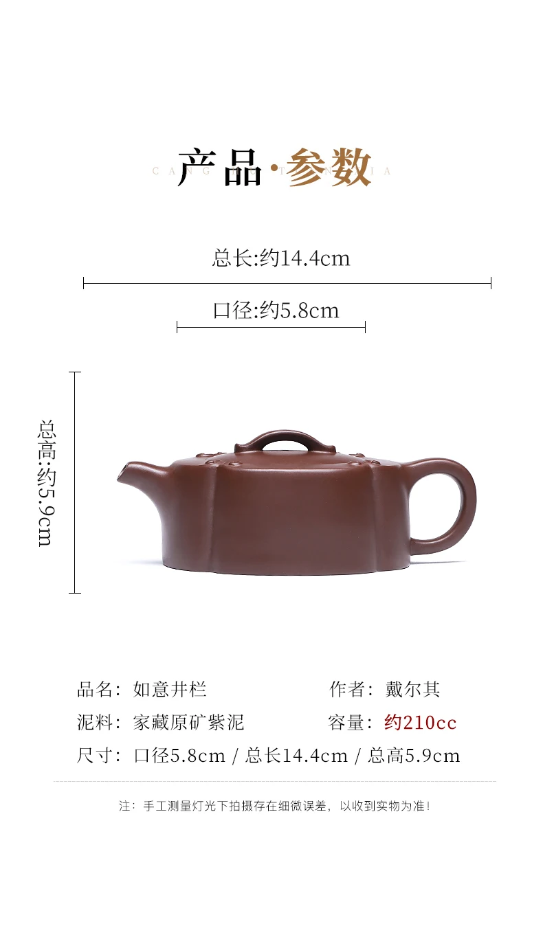 Tibetan Pot World Yixing Purple Clay Pure Handmade Household Tea Raw Mine Kung Fu Set Ruyi Well Fen