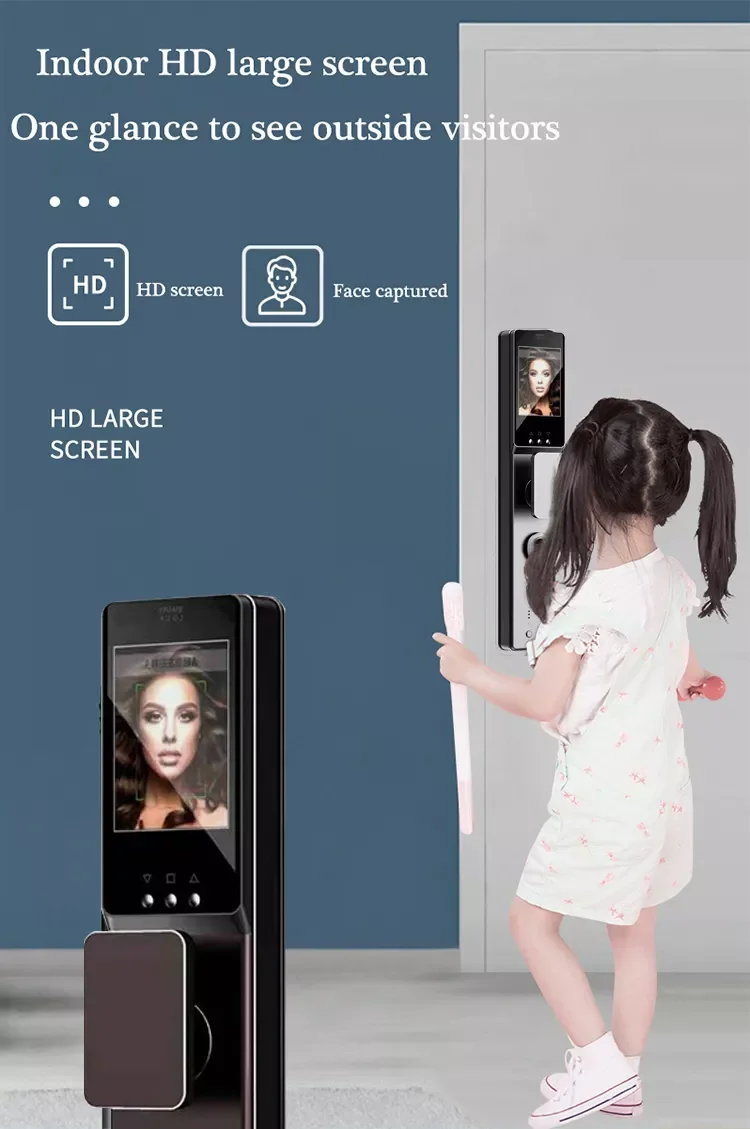 Top Grade Security 3D Face Recognition Full Automatic Fingerprint Intelligent Lock Digital Smart Door