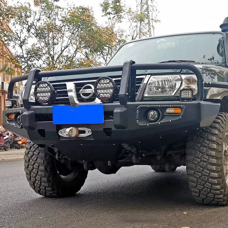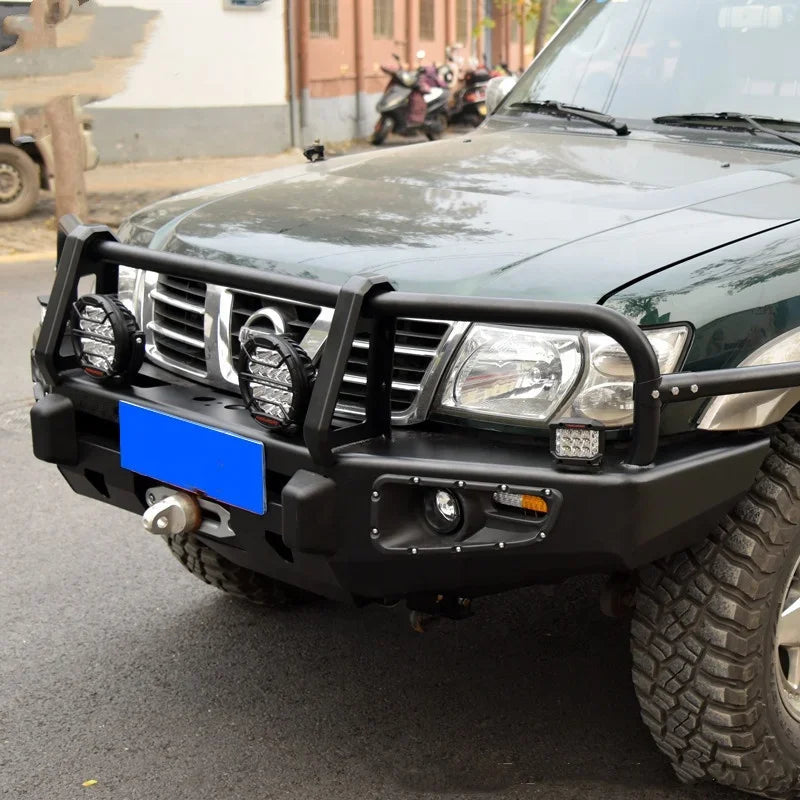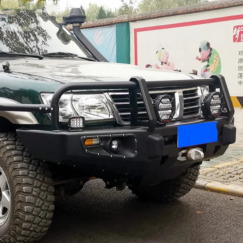 TOPLEADER AUTO PARTS Body Kits Industrial Carbon Steel Auto Car Front Bumper N-issan Patrol Y61 Front Bumper Guard Light