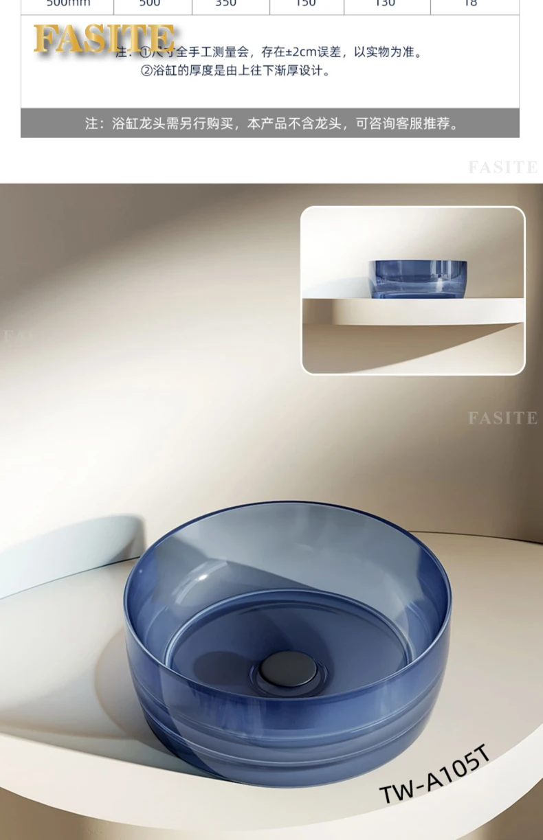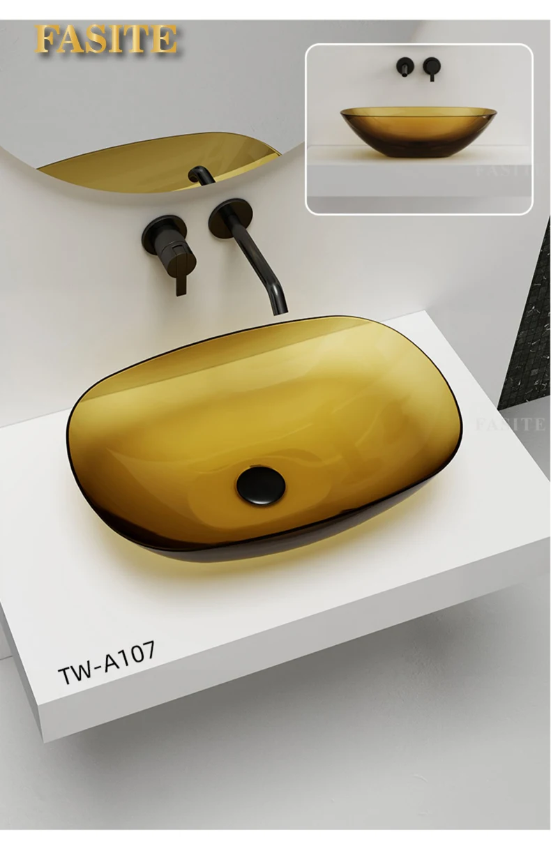 Transparent color resin washbasin home small bathroom art crystal washbasin.